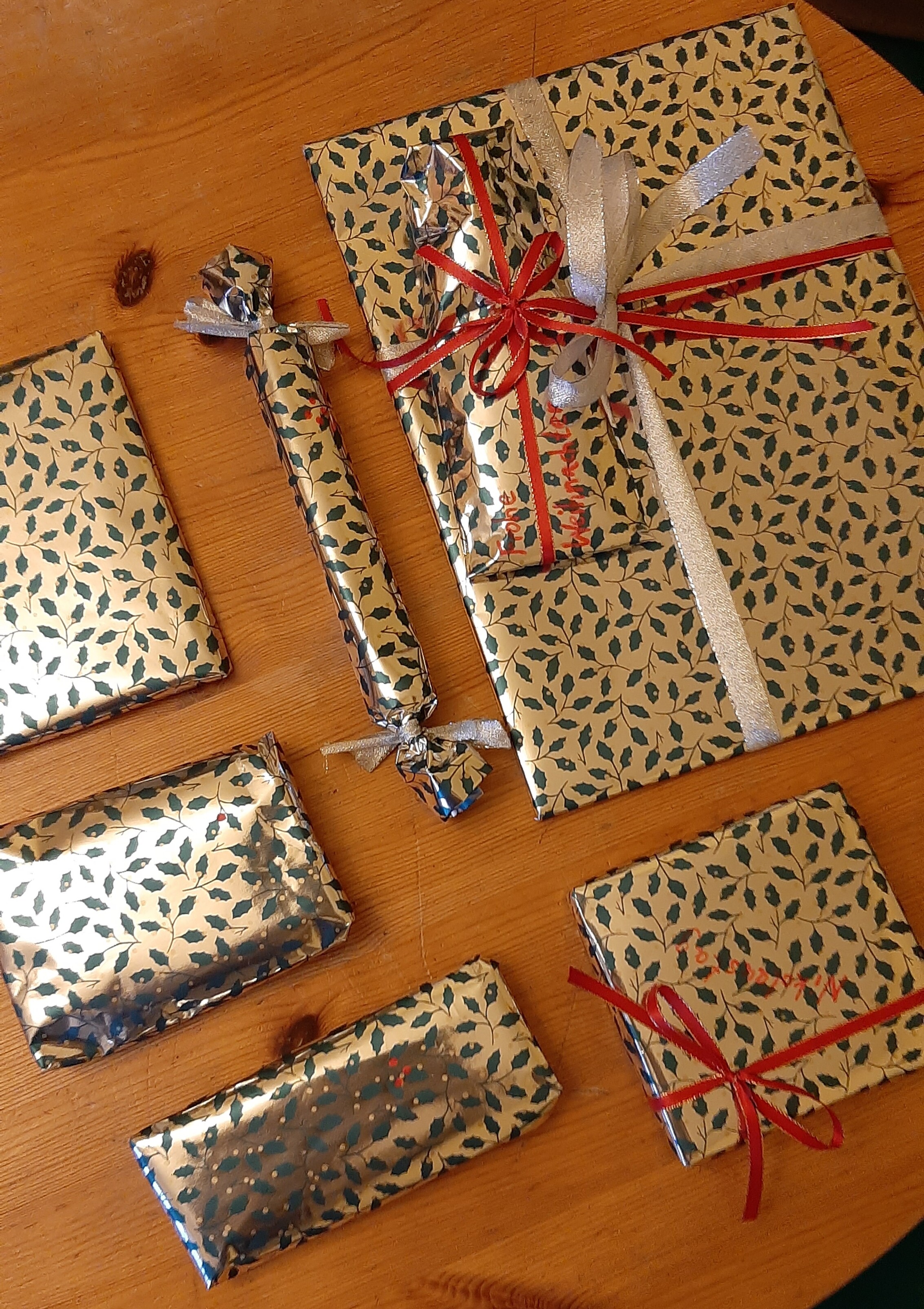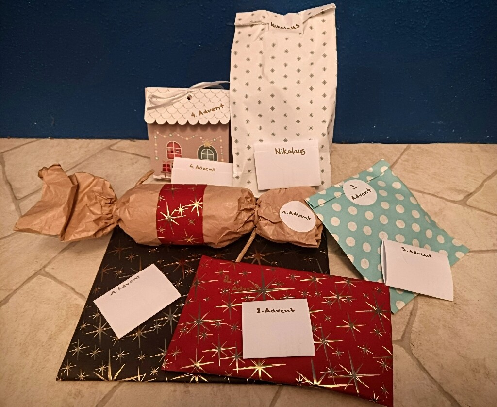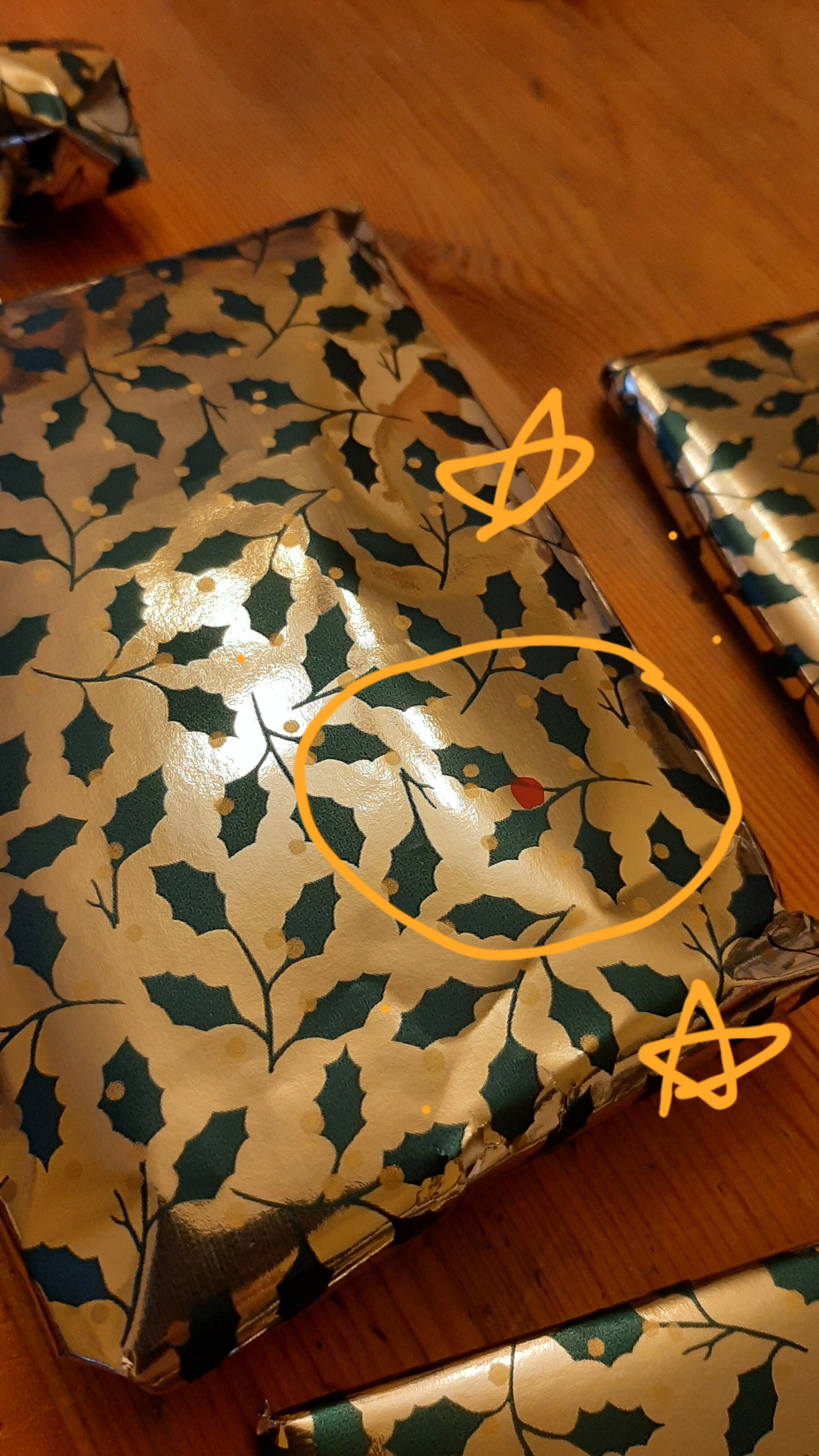 Wegen der fehlenden Zahlen war ich erst etwas verwundert, bis mir aufgefallen ist, dass die Päckchen unterschiedliche rote Punkte haben.