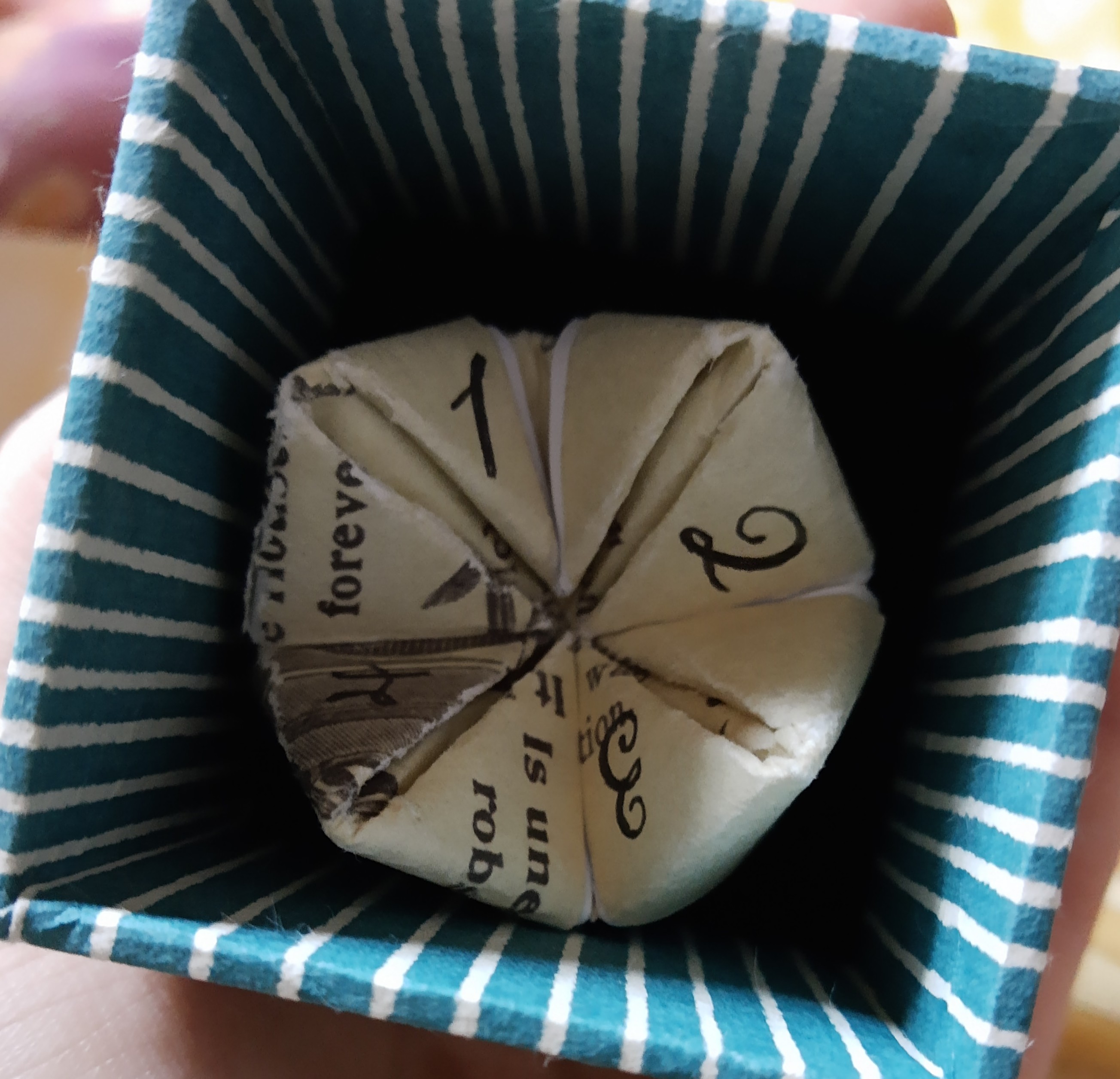 Darin befand sich ein Zettel (der zuerst zu so einem Himmel und Hölle Spiel gefalten war, mega cool und so winzig ⊙.☉) in dem stand das ich mich erstmal nicht wundern brauche, dass keine Zahlen auf den Päckchen stehen (da das im 27. November türchen geklärt wird) und ich auch alles schön verpackt lassen soll.