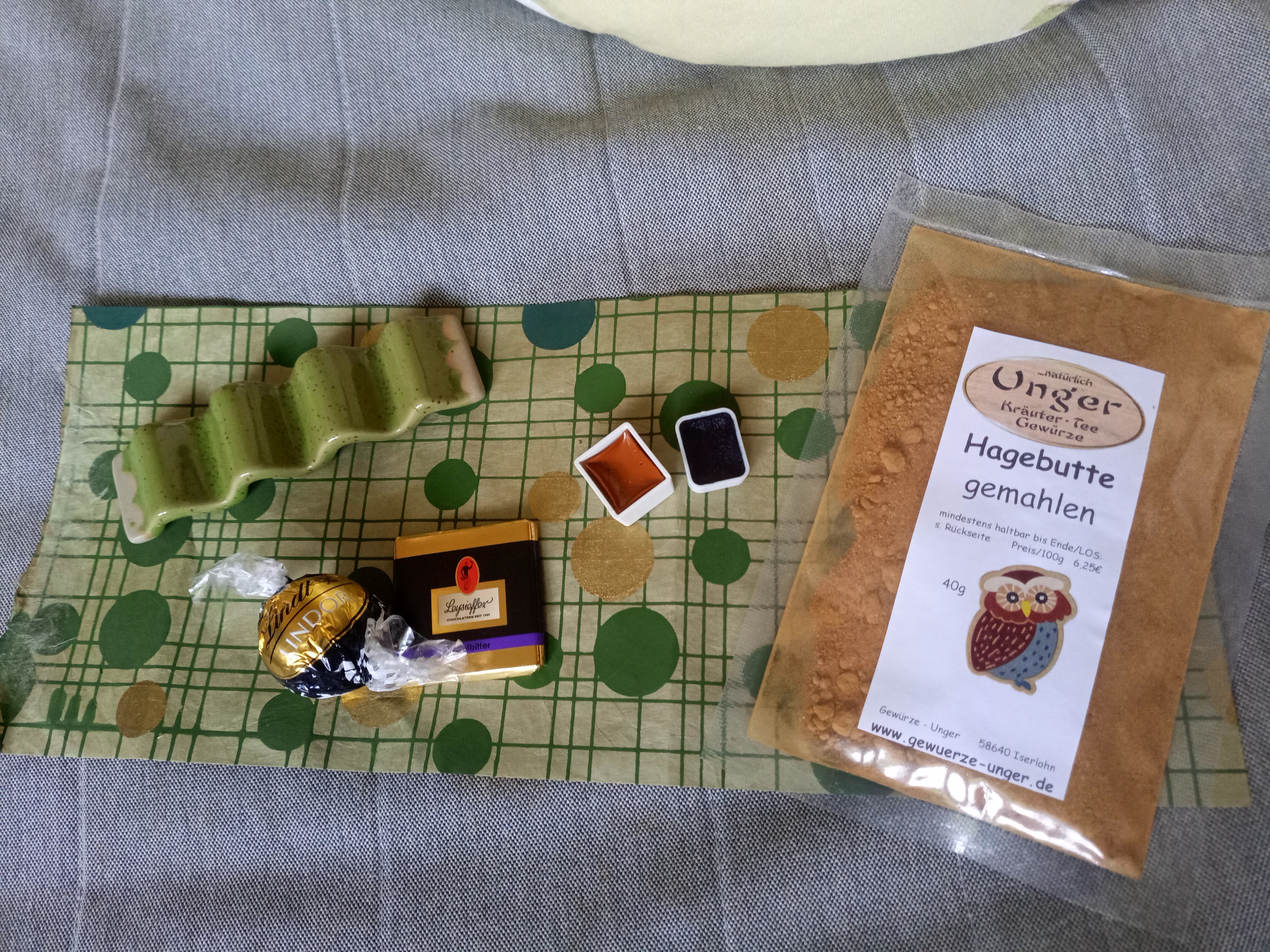 Außerdem darf ich mich riesig über zwei Näpfchen selbstgemachte Aquarellfarbe von Major freuen in den Farben ‘Osmo’??? und ‘Havane’? Ich kann die Schrift nicht so gut lesen. :D Bin ich super gespannt drauf und werde ich, sobald ich die Zeit habe direkt austesten. <3