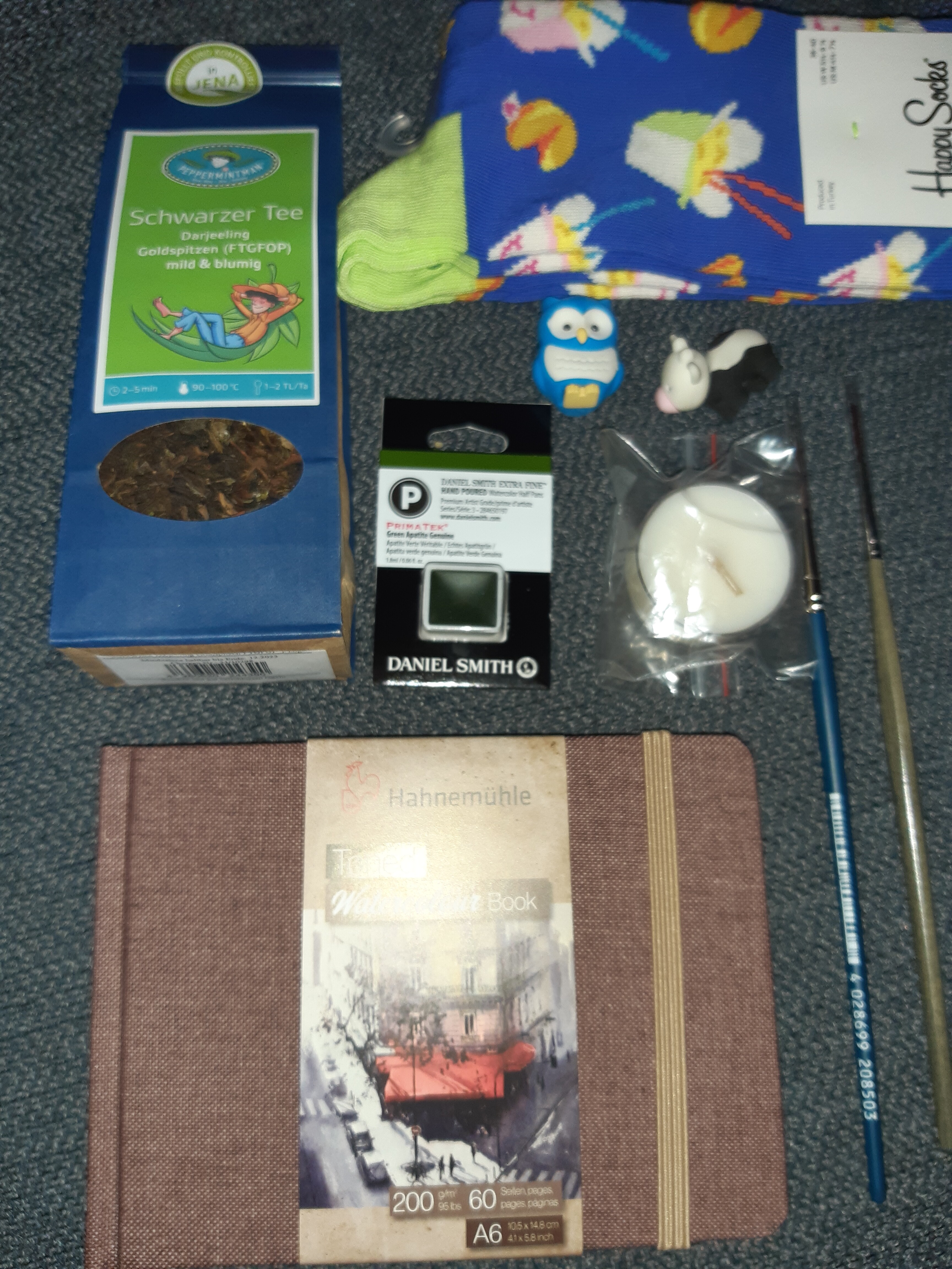 für dieses riesige erste Päckchen. Ich freue mich auf jeden Fall sehr über die ganzen Sachen - besonders natürlich über das neue Aquarellmaterial :D