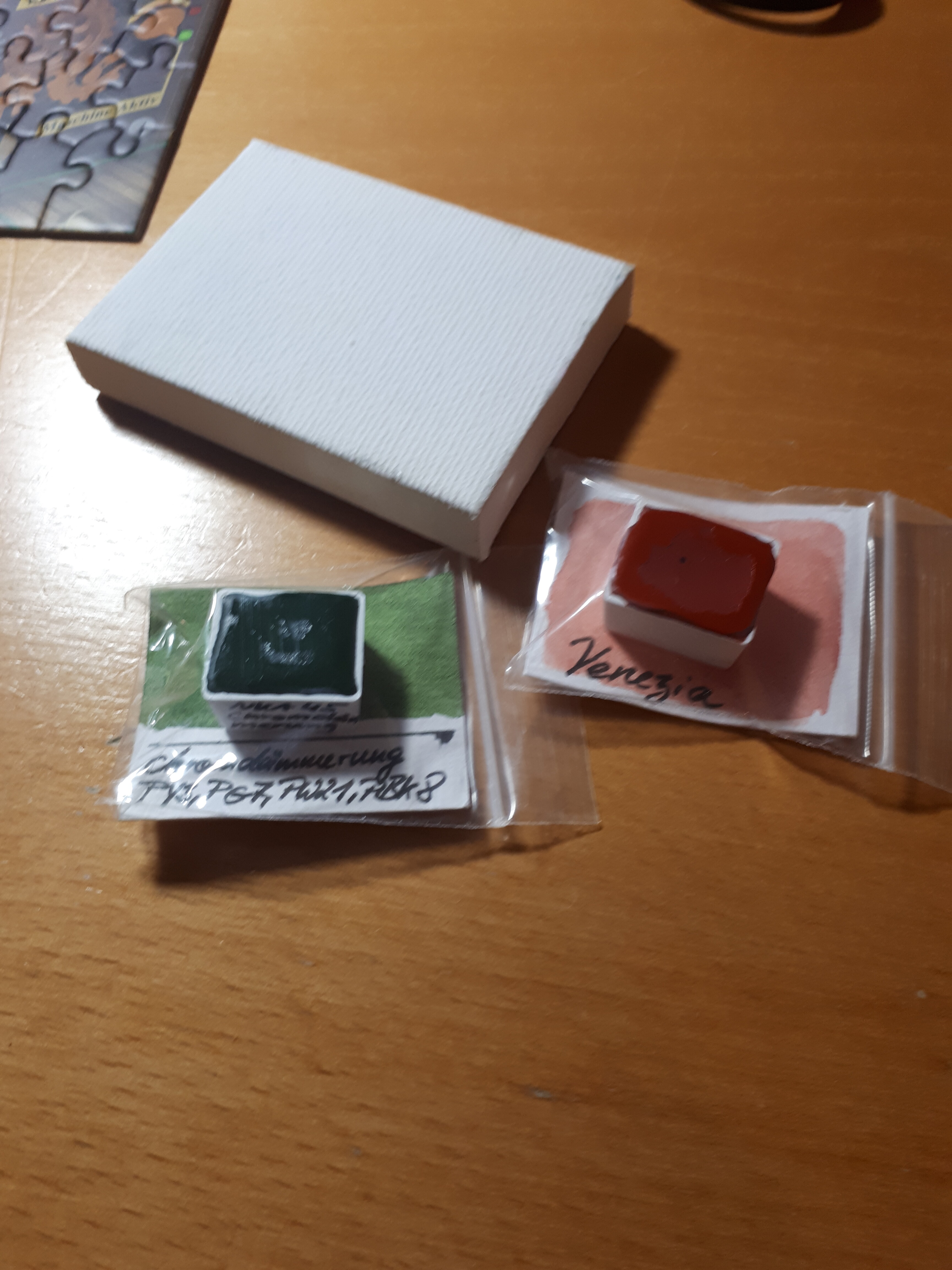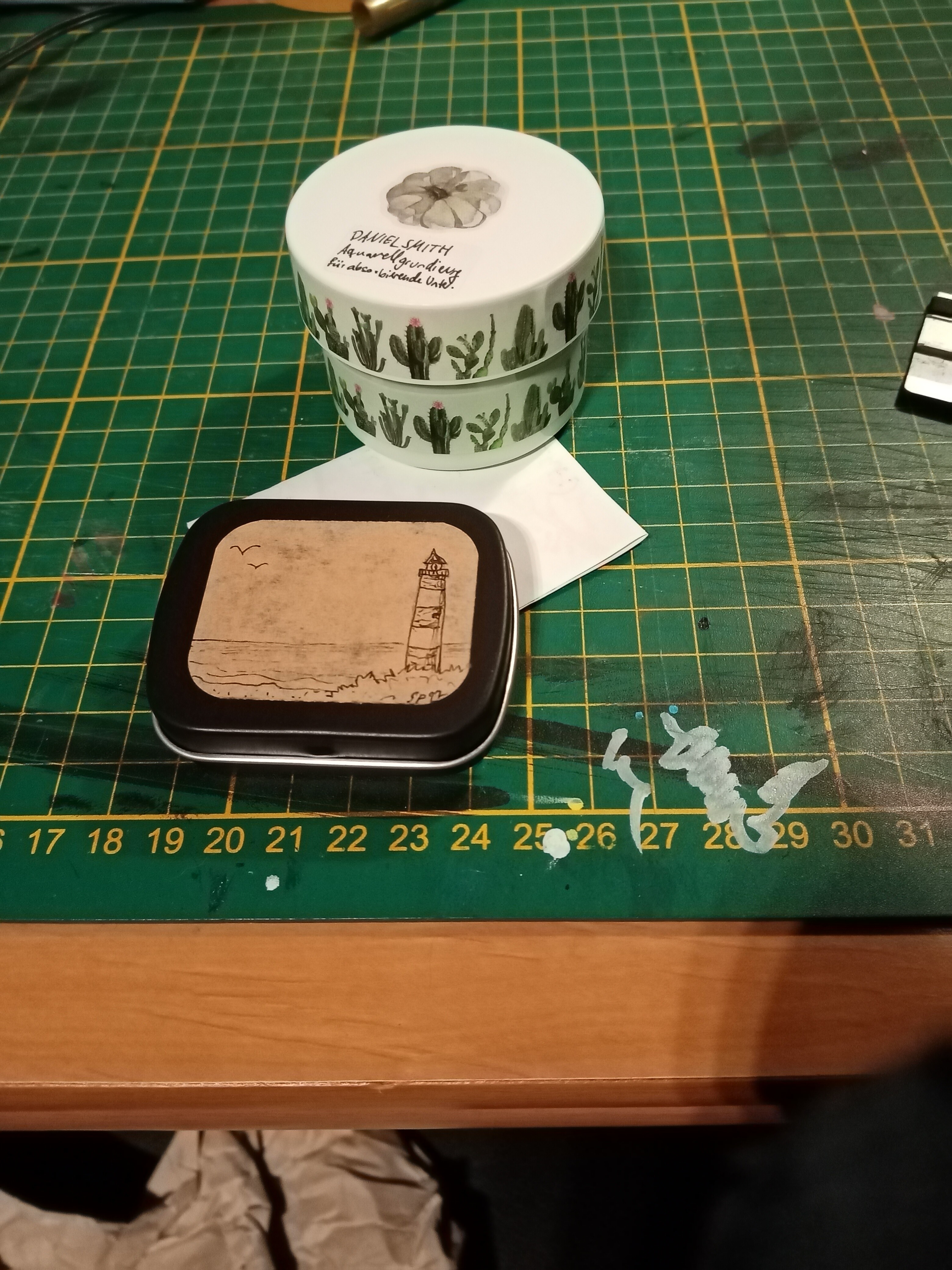 ) ein niedliches kleines Metaldöschen und Daniel Smith Aquarellgrundierung gefunden.