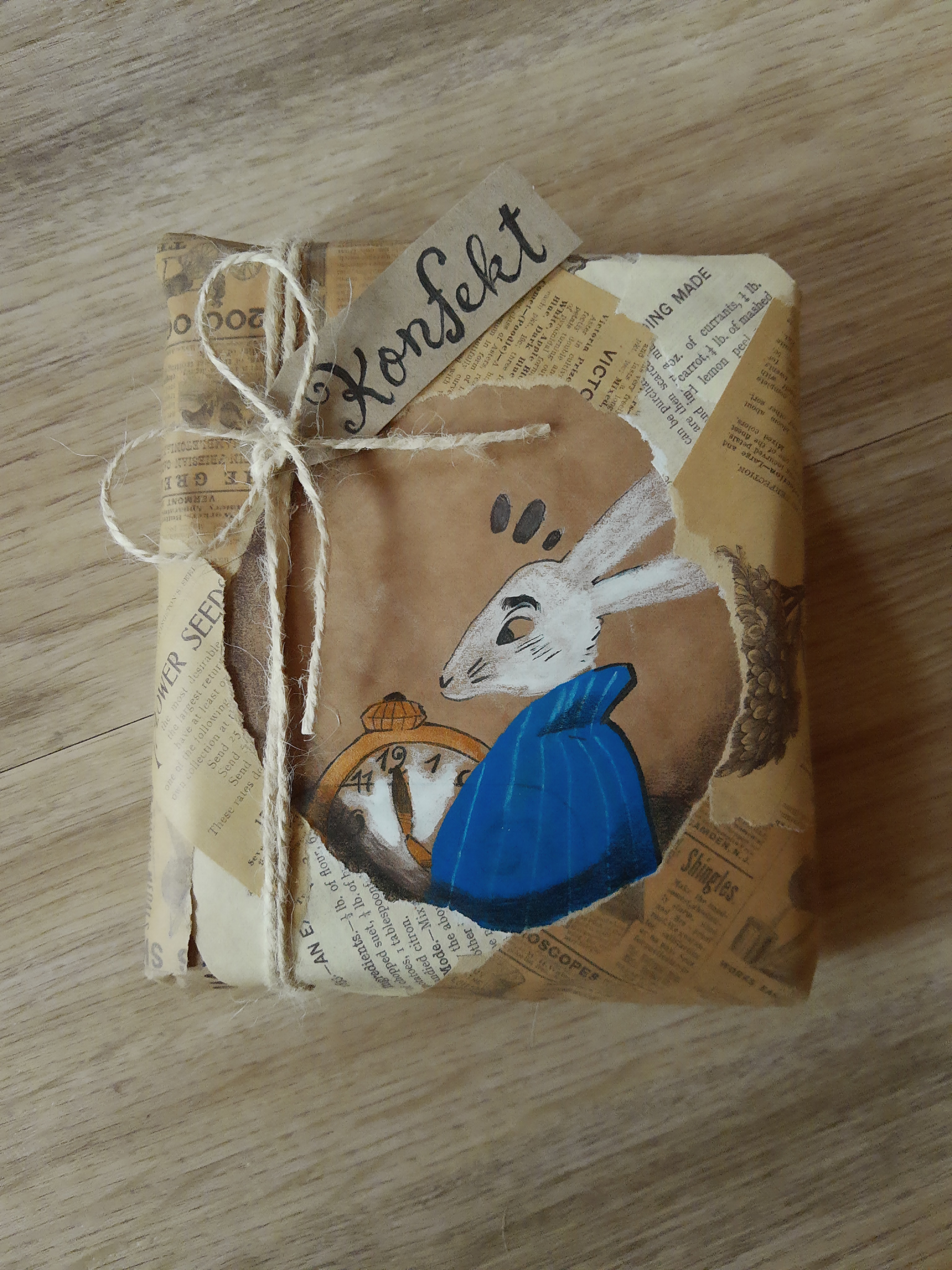 Ganz viel esspapier, eine mega schöne Kakao Karte (passend zu Alice im Wunderland<3), 2 knuffige Sticker, und ein blauer 0,05 Liner. Die zwei hübschen washies waren wieder aus dem Glas :3