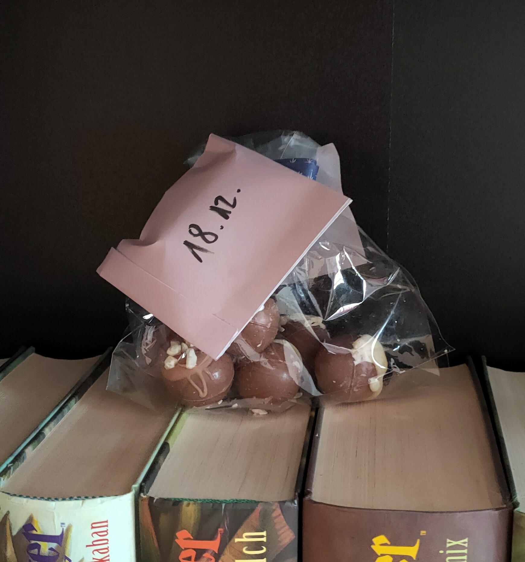 Eine der Schokis hat es nicht mit aufs Bild geschafft, weil ich heute früh sehr frustriert war und die Schoki mich trösten musste, nomnom, hat funktioniert. <3