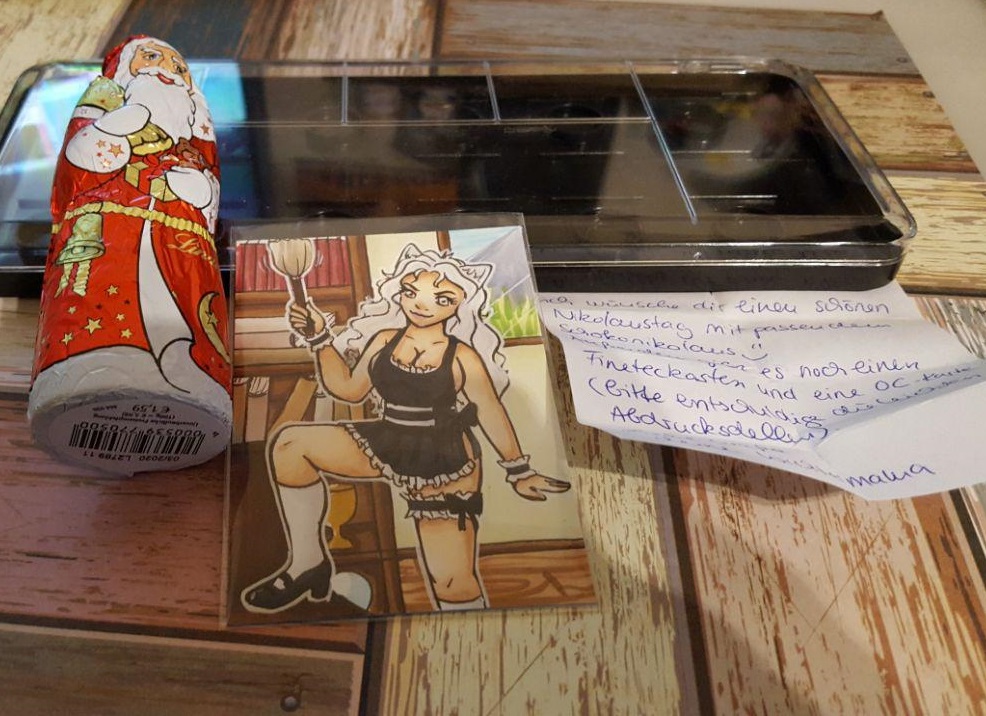 Bevor ich mich entschieden habe, sah ich mir dann mal die Karte an, in der Hoffnung, dass ich anhand des zeichenstils vermuten koennte, wer mich hier so liebevoll beschenkt.
