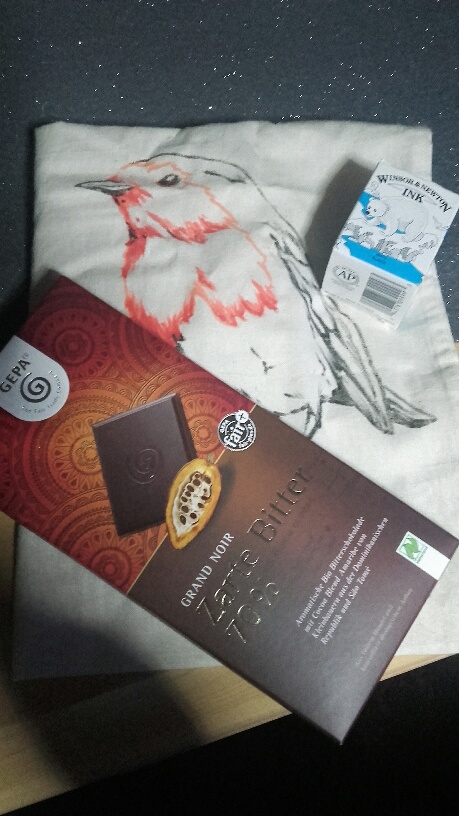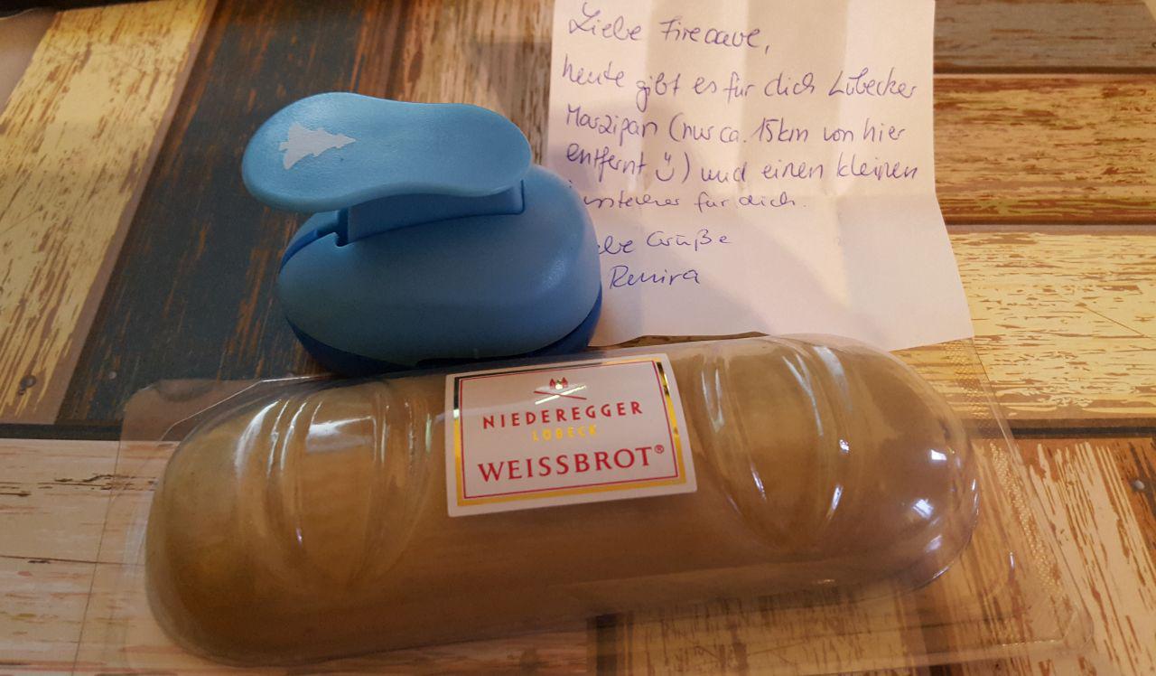 Ich bekam Schoki (meine Liebste und wieder russische Probierhappen, war diesmal nicht so mein Fall ^^), ein kleines Haftnotizblöckchen (kann ich immer gut gebrauchen!), einen lila Copicliner (leider ist die Spitze umgeknickt, aber in einem gewissen Winkel malt er trotzdem gut - da werd ich ein bisschen drauf achten!), eine mega schöne gebastelte Kakao-Karte mit einem tollen Drachen (wuhuu, ich hatte so gehofft, dass ich mehr als eine Karte kriege, dickes Dankeschön <3 !), den unfassbar tollen Film “Cast away” (auch noch als Special Edition mit Bonus-DVD, wow!), ich finde den einfach unfassbar intensiv und toll den Film, hammer - vielen vielen Dank!! Und dazu noch lecker duftenden Sanddorntee, der passenderweise ausgerechnet “Inselträume” heißt :D