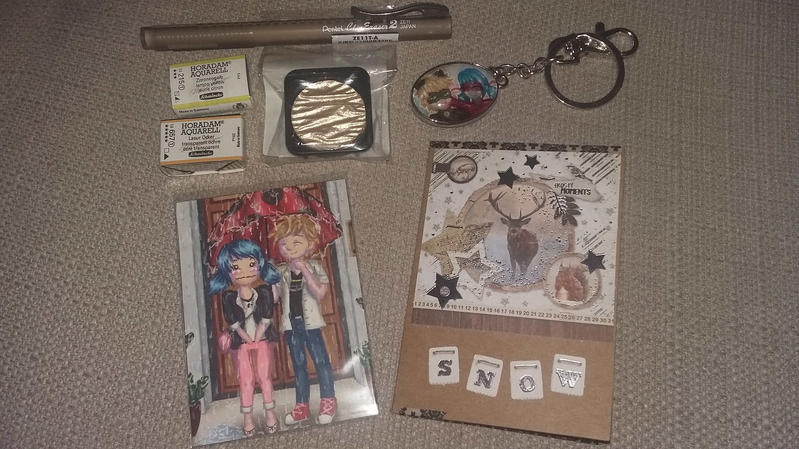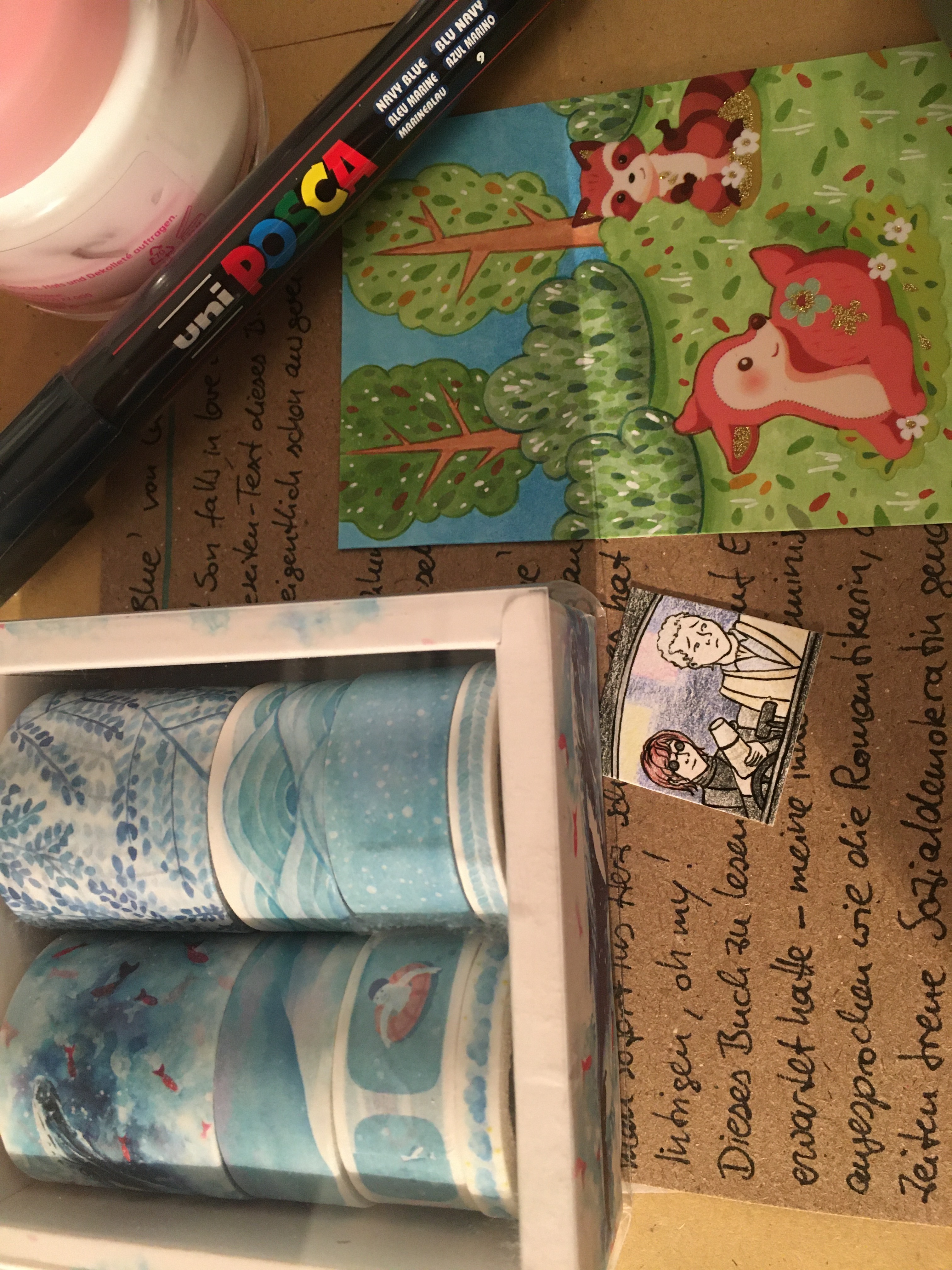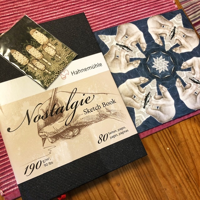 Am Vierten Advent erwartete mich eine Stay-wet-Palette, schwarzes Kreide Papier (Kannte ich auch noch nicht, aber finde ich klasse! Habe auch direkt an deine Verwendungsidee mit Stanzen gedacht!), eine weitere Lieblingstier-KAKAO und wieder wunderschöne Naturstempel verschiedenster Vogelmotive, sowie (darunter) erneut alte Buchfunde, die ich mir wenn ich wieder zurück bin mal genauer in Ruhe ansehen muss.