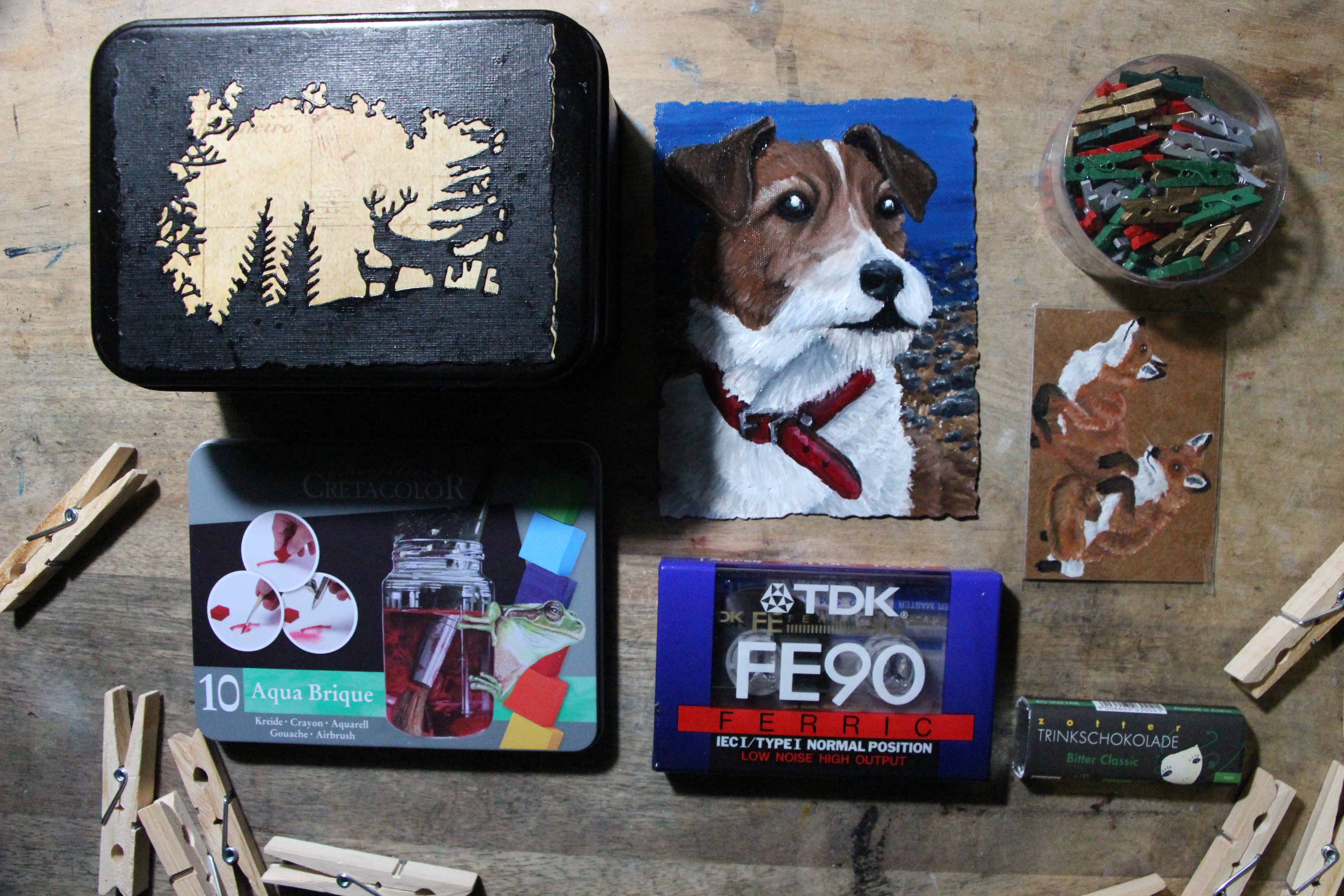 Ansonsten gab es eine weitere Lieblingstier-KAKAO, eine leere Kasette zum selbst bespielen, Aquarellkreide, die ich schon immer mal ausprobieren wollte und einen weiteren Schwall an Klammern. Die haben sich immer wieder zwischen den Päckchen versteckt und mit dem Kalenderende habe ich nun einen großen Schuhkarton davon voll und kann somit “Holzklammern” definitv für die nächsten Jahre von meiner Brauchen-Liste streichen :D