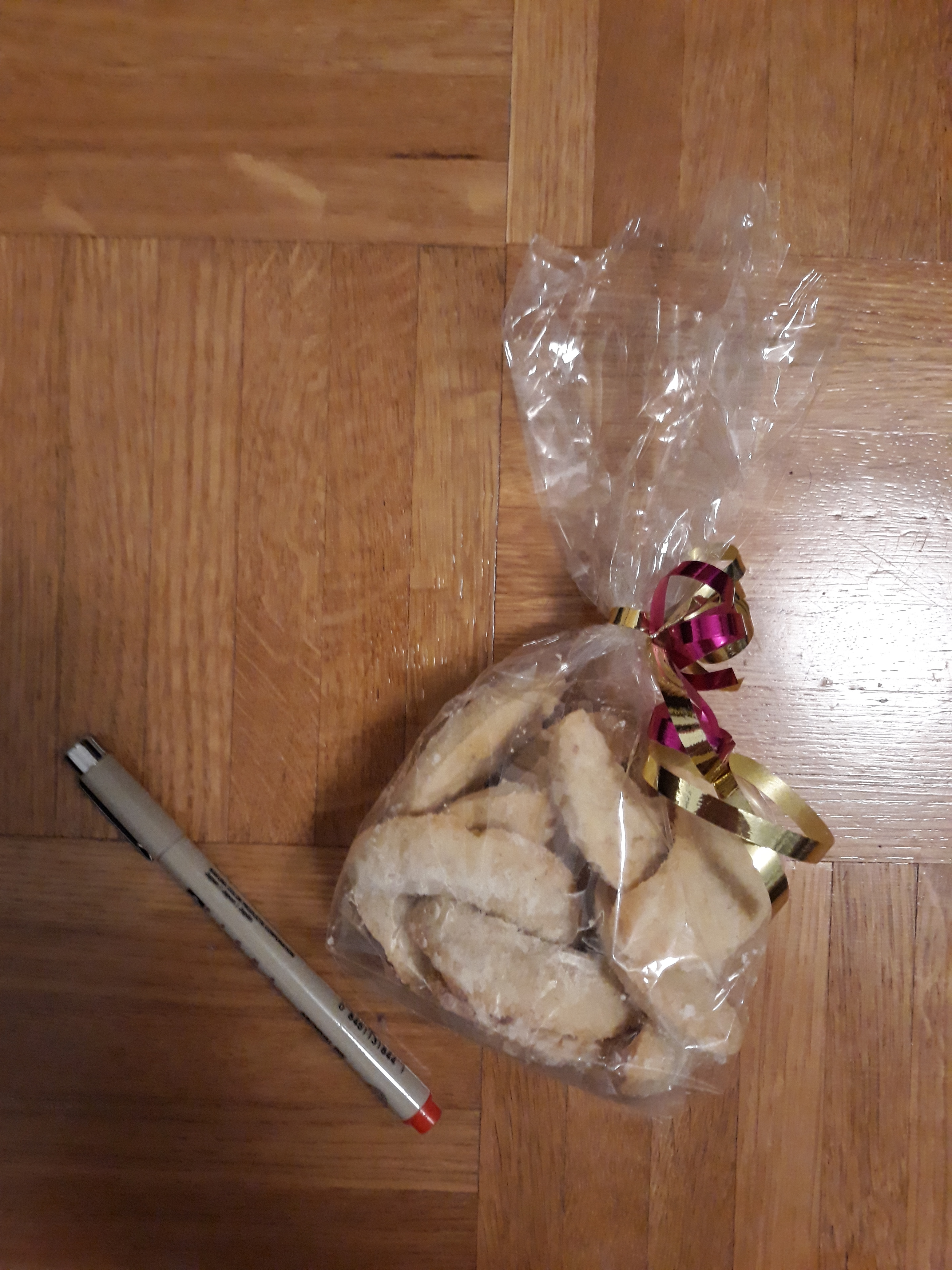 Ich hab heute auch schon in mein Päckchen geschaut. Jetzt hab ich noch einen roten micron 005 und weitere Plätzchen bekommen :3 der adventstee ist gerettet :D die letzten Plätzchen waren bisher immer sehr lecker.