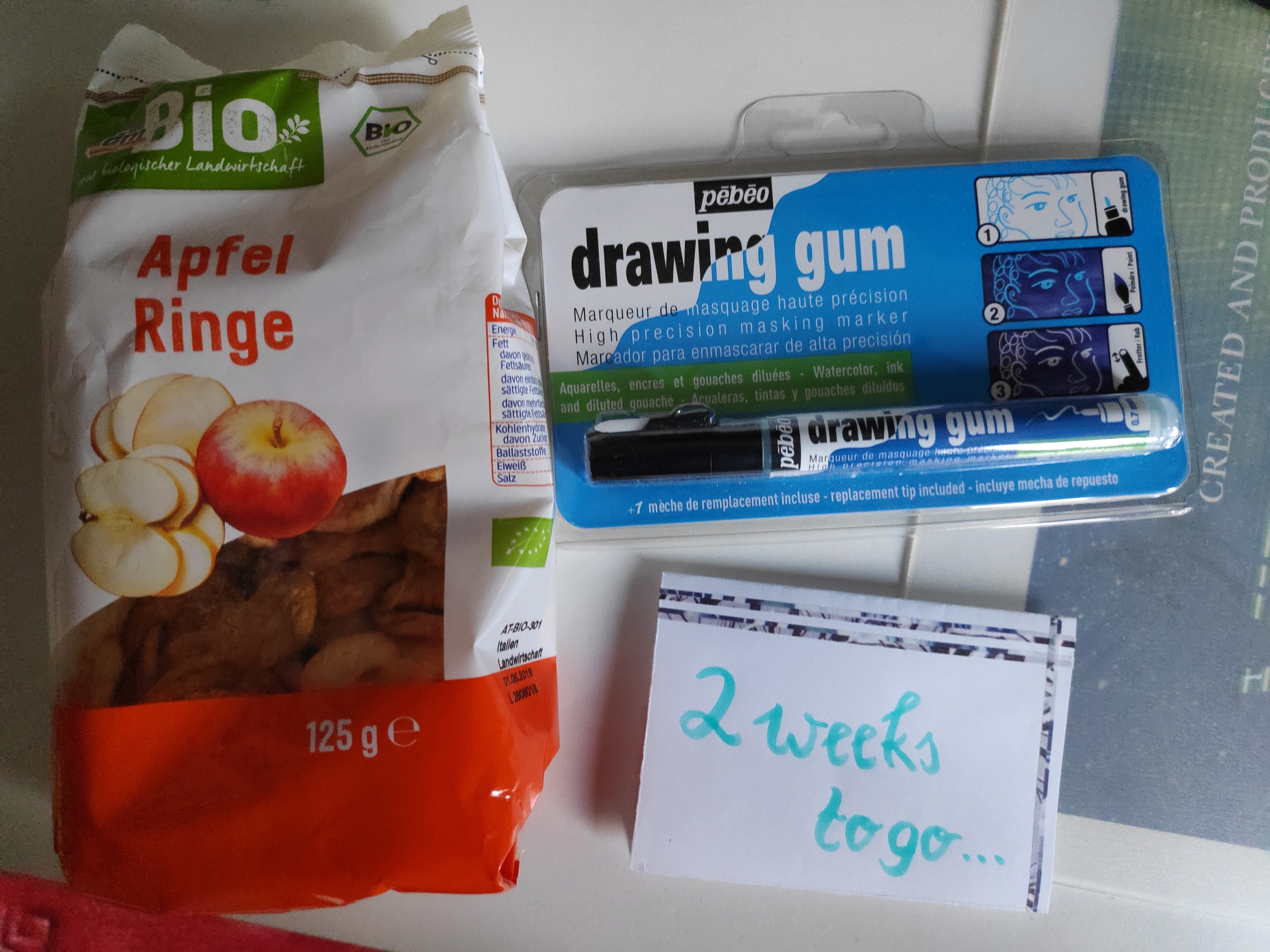 Der Maskierstift kommt mir super gelegen, da ich in letzter Zeit wieder vermehrt mit Aquarell male und Apfelringe gehen immer. Vielen Dank dafür