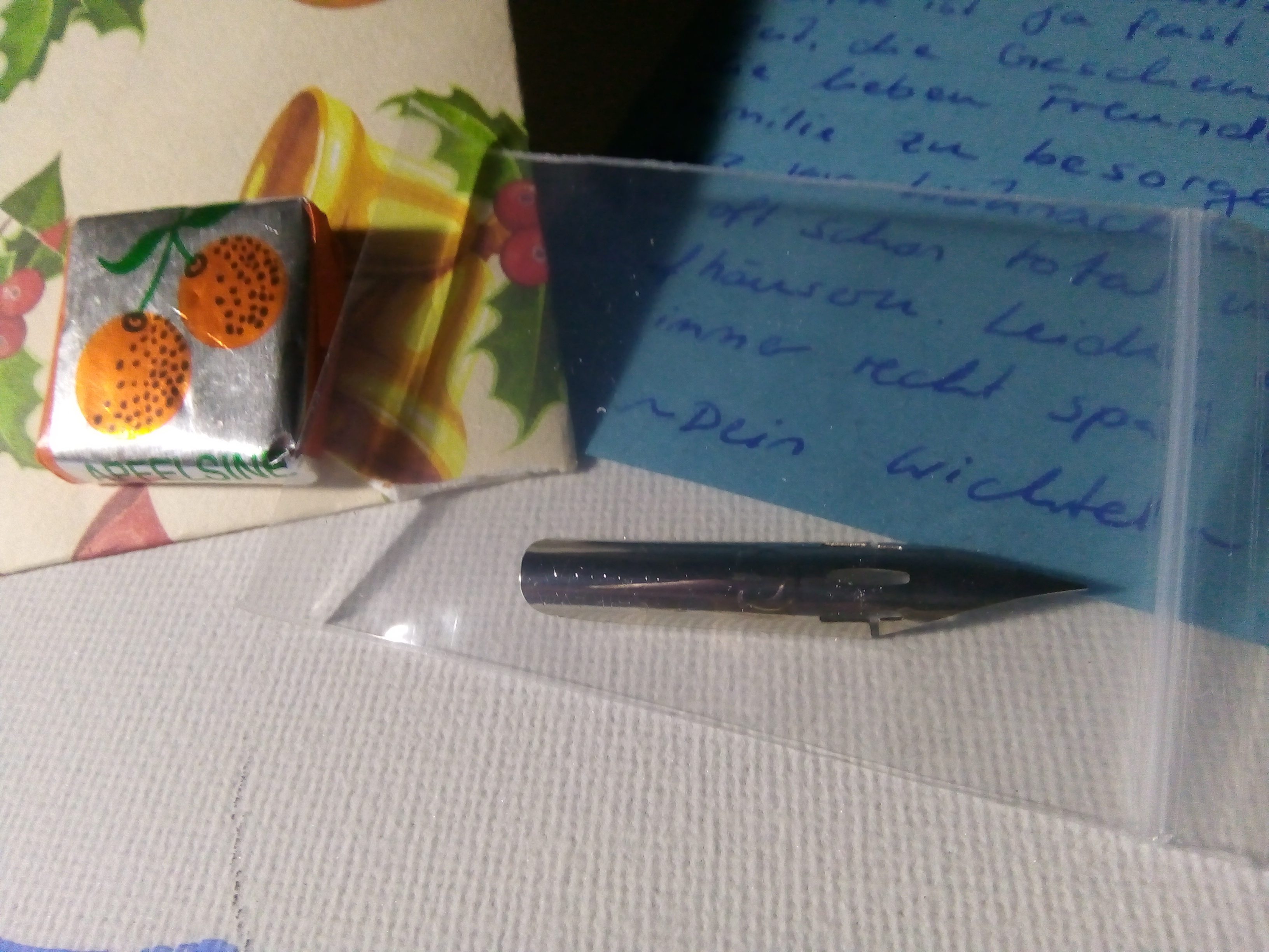 Also ist heute wieder Zeit, Geschenke auszupacken. Das habe ich auch gleich mach Mitternacht gemacht. Der neue Kugelschreiber wurde direkt nach dem Aufstehen getestet. Ich mag den lustigen Gummi Nippel oben drauf.