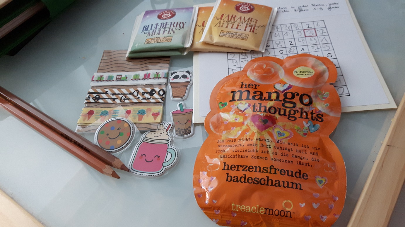Dankeschön auch für diesen Inhalt, da habe ich mich wieder sehr sehr gefreut o <3 meine Wichtelmutti weiß ja echt, was ich gebrauchen kann :D