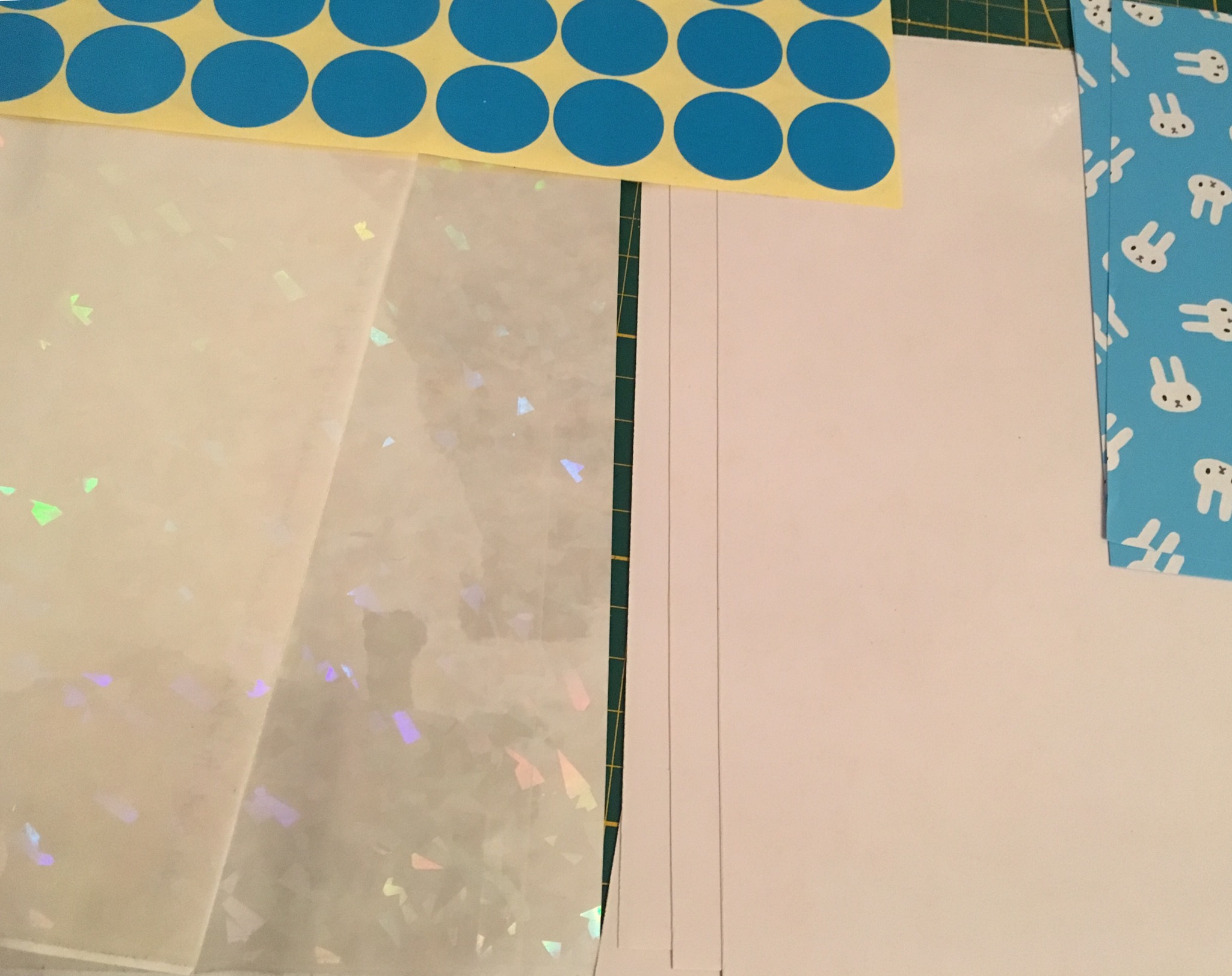 Niedliches Häschenorigamipapier und blaue Klebepunkte!