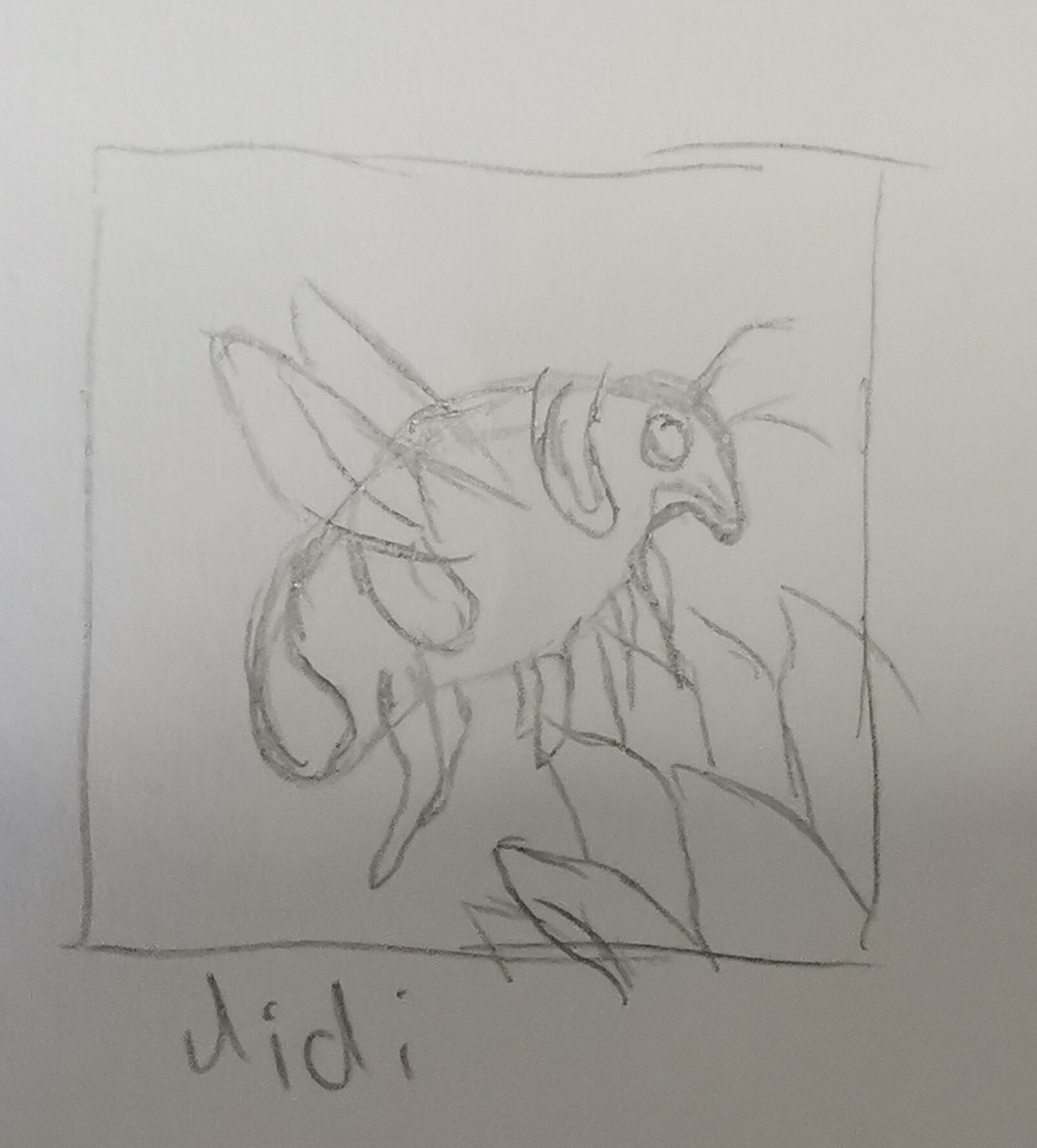 Ich hab auch meine erste Skizze - da das tatsächlich mein erstes Inchie ist, war ich etwas von der Größe, bzw. Winzigkeit des Quadrates überrascht xD Aber ich mal ja gerne detailliert und klein xD Passt also bestens