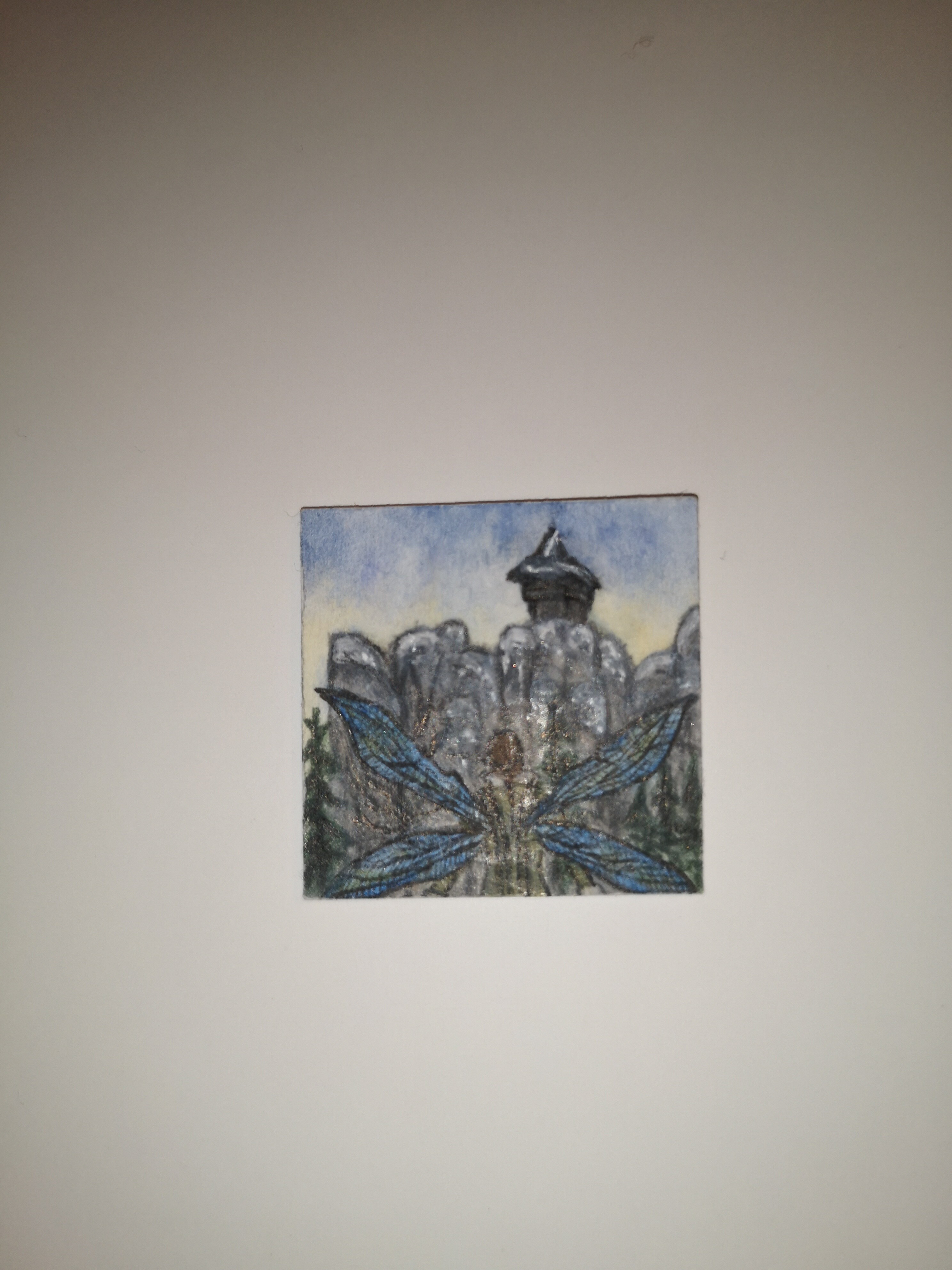 Und so schöne Details. Die Flügel und ihr Mantel und die Felsen