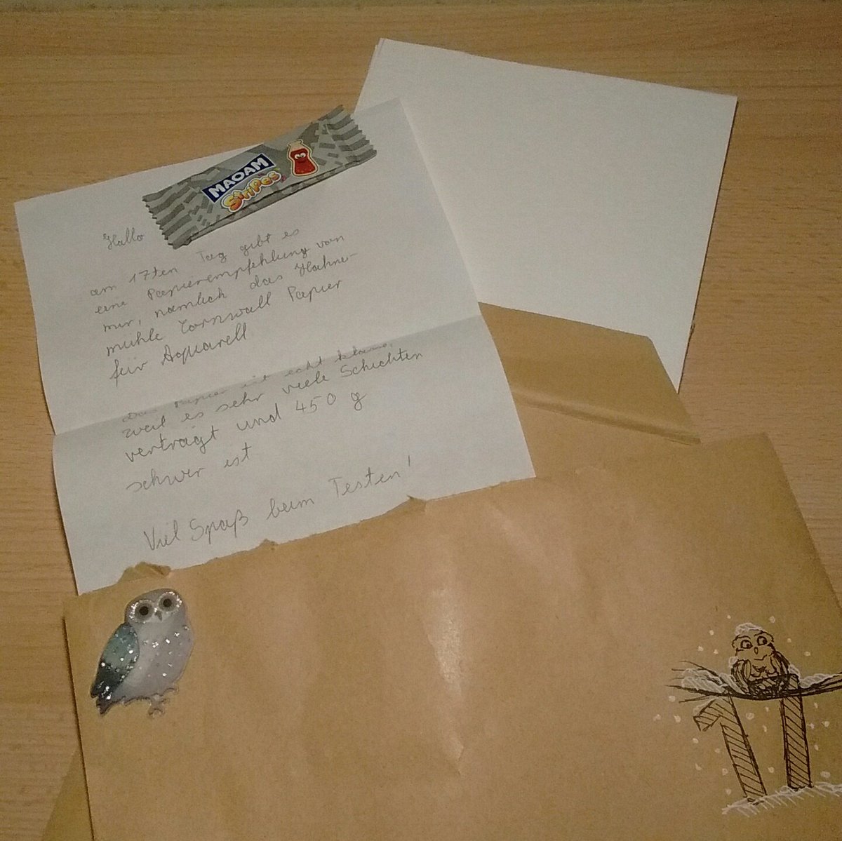 Das 17. Türchen bescherte mir Proben von Hahnemühles Cornwall Aquarellpapier in der Stärke 450 g/m². Das Papier kam gerade richtig, da ich noch ein Lesezeichen als kleine Weihnachtsbeigabe für eine Freundin gemalt habe, wurde also schon getestet und für gut befunden. Dagegen kommt mein Canson Montval echt nicht an.