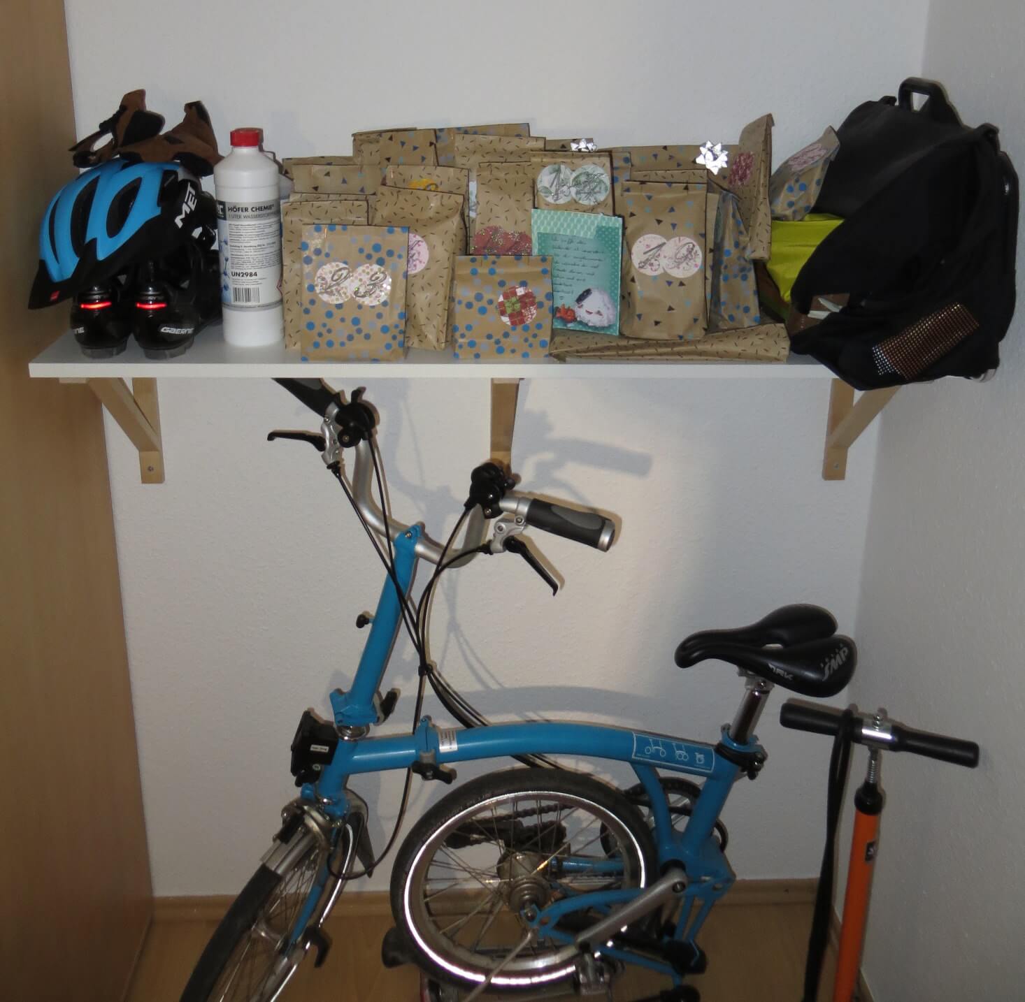 24 individuell hergestellte kleine Pakete nur für mich. Bis auf zwei sind sie in einem schönen dunkelblau mit Motivpapier als Geschenkband. Die anderen beiden sind lila und haben auch aus Motivpapier geschnittene Geschenkbänder.