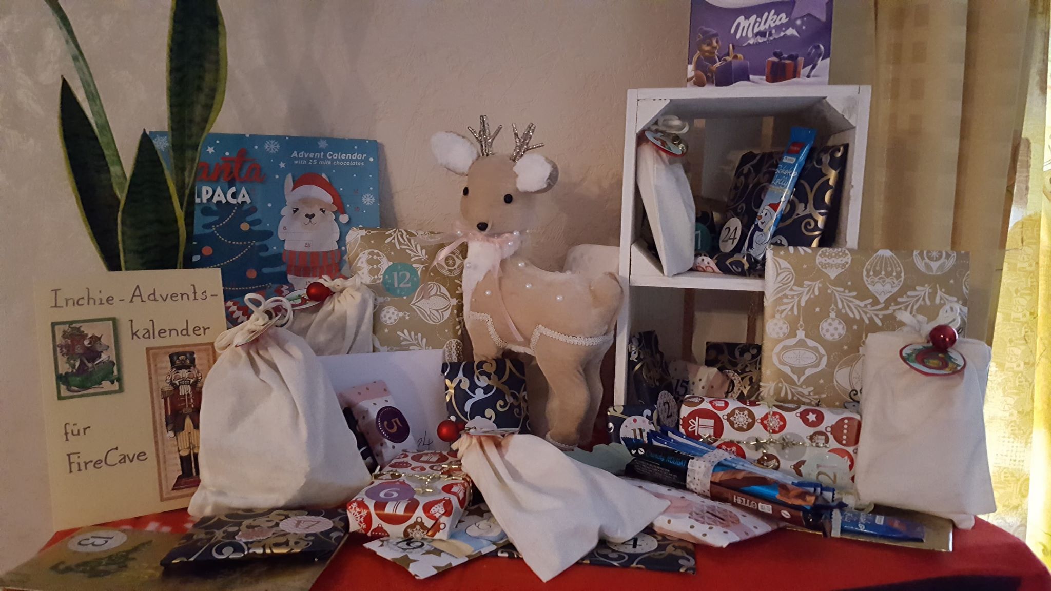 Der Kalender in ganzer Pracht <3 Nur die Kiste/die Pflanze das Reh und der Alpaka Kalender gehört nicht dazu aber dient schon als Deko wegen dem sonst leeren Platz ;-)