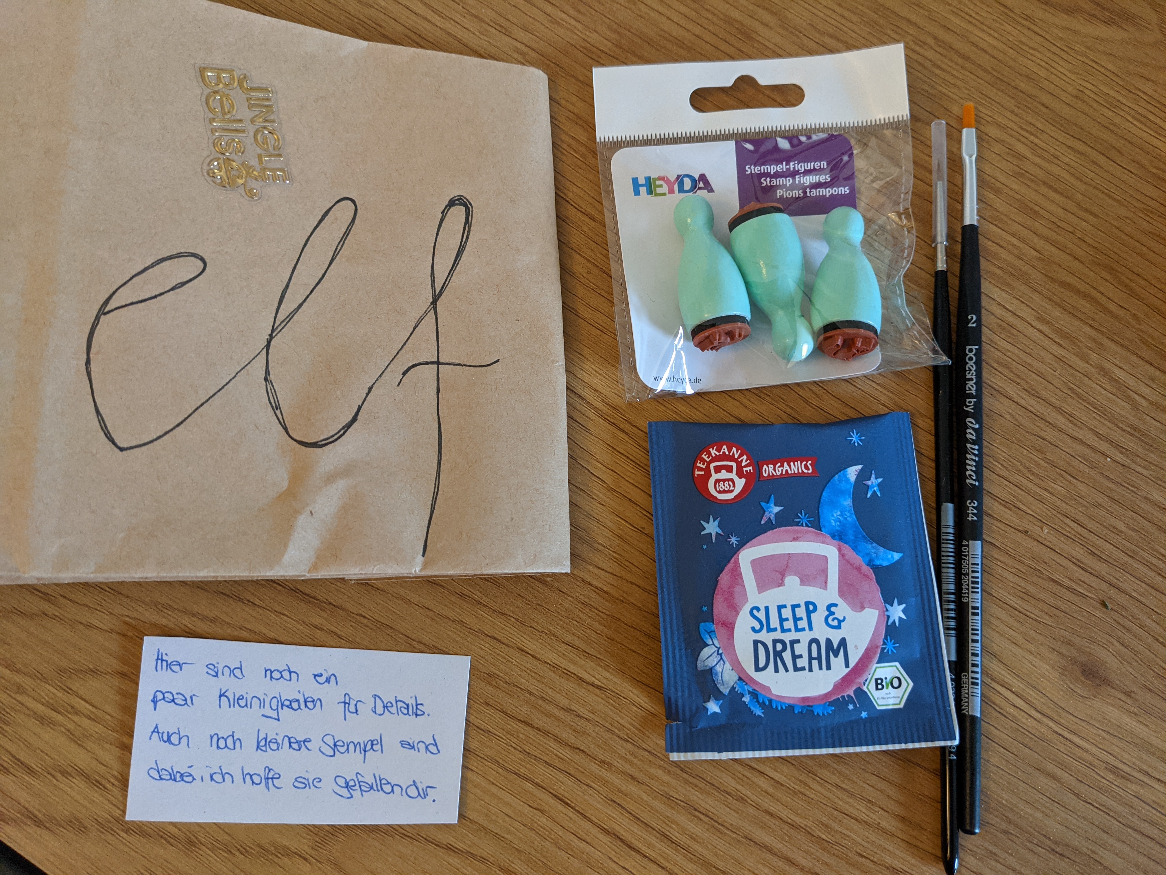 An Nikolaus hatte ich ein riesiges Türchen, welches ich sehr neugierig geöffnet habe. Darin fand ich nicht nur ganze 7 Sketch-Leermarker (genug für alle Various Ink ohne passenden Stift in meiner Sammlung), sondern auch ein ganzes Sortiment an Teeproben und nicht einen, sondern gleich zwei hübsche Teesiebe! Ich freue mich schon sehr, die verschiedenen Teesorten zu testen, ich finde sie klingen alle sehr lecker