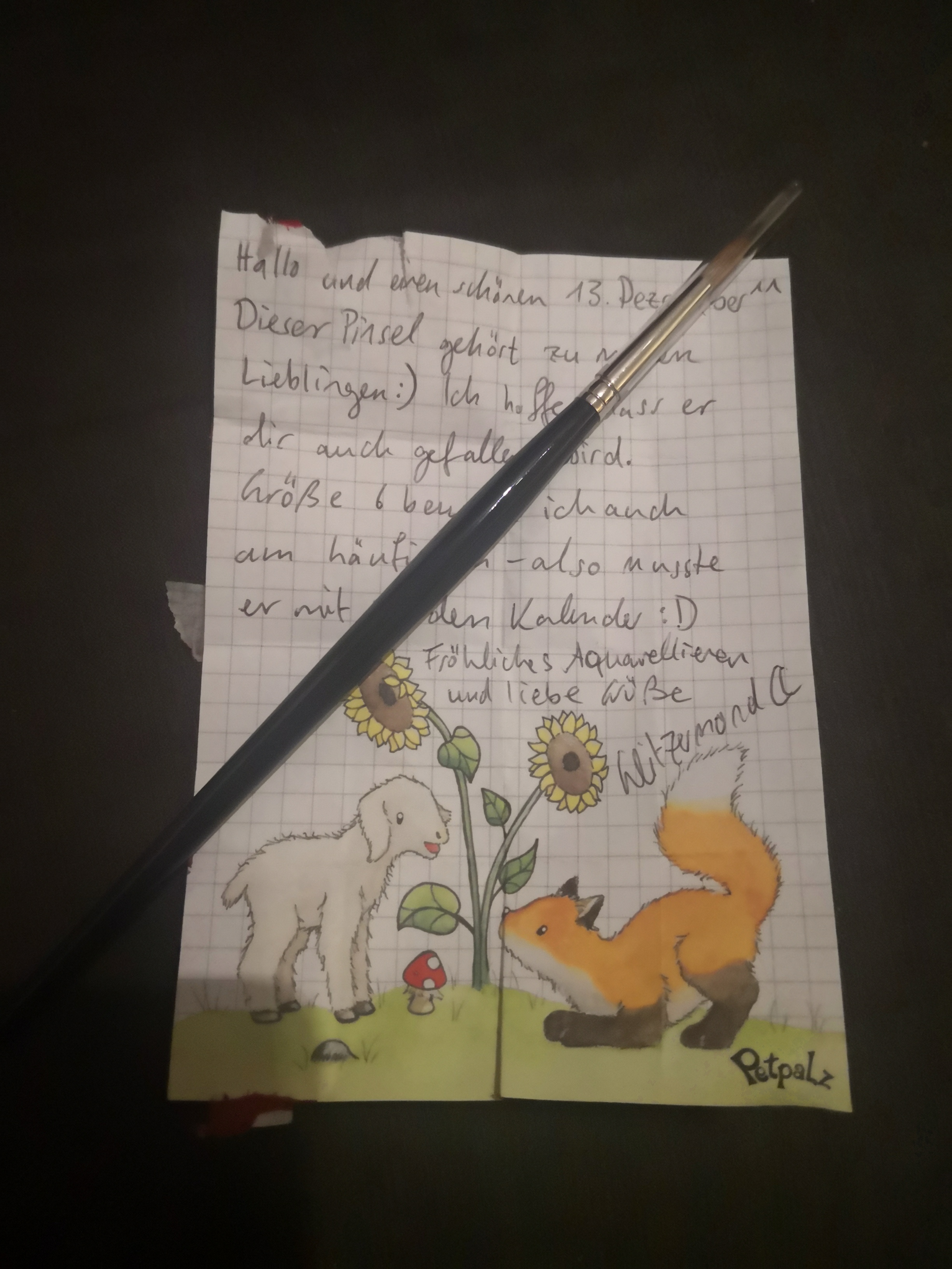 Und dafür habe ich einen 6er Kolinsky Aquarellpinsel von Da vinci bekommen. Aquarellpinsel, vor allem in der Größe sind bei mir immer Willkommen. Leider hat es den Brief etwas zerlegt, weil das Papier an der Innenseite zusammengeklebt hat.