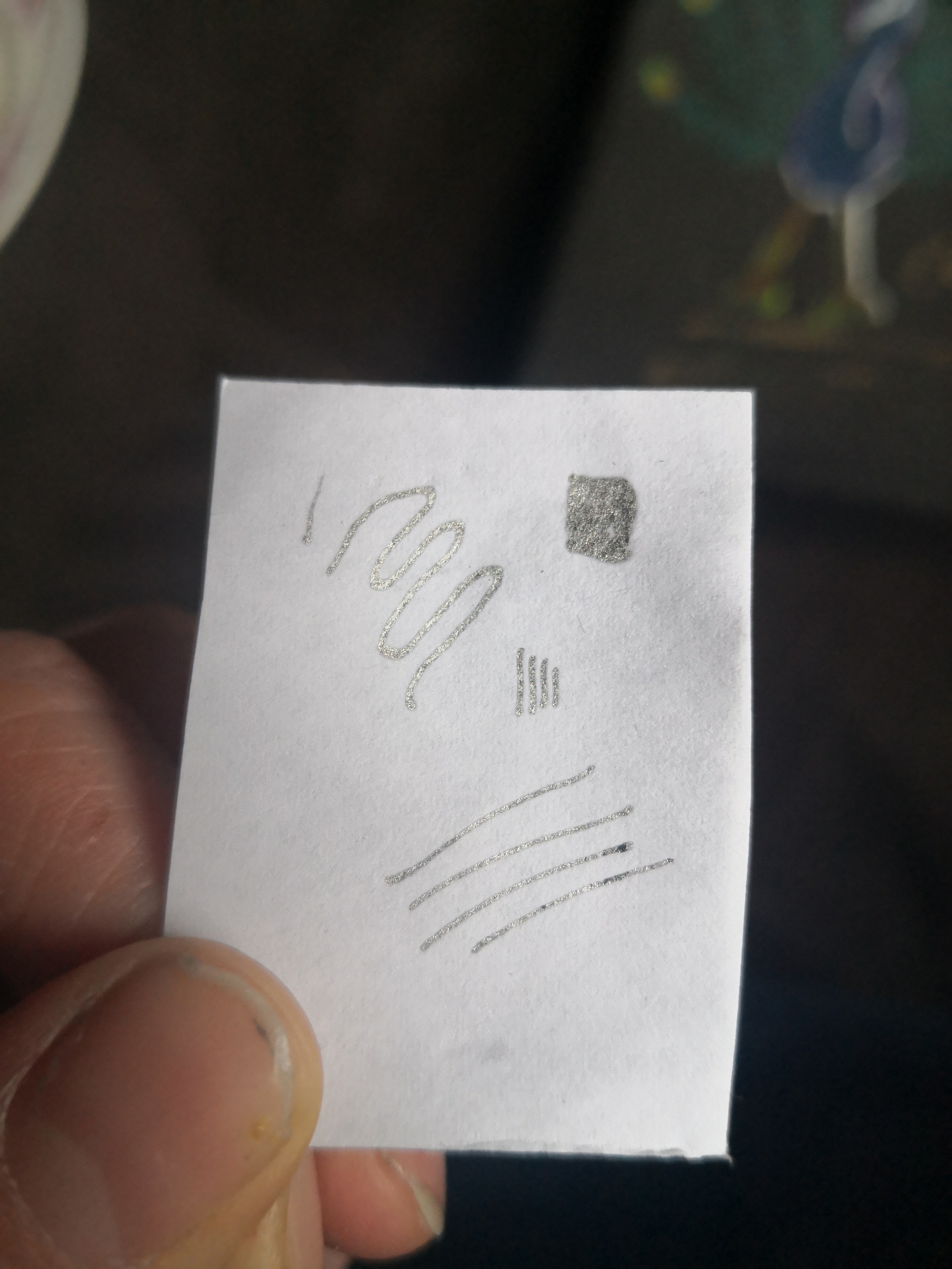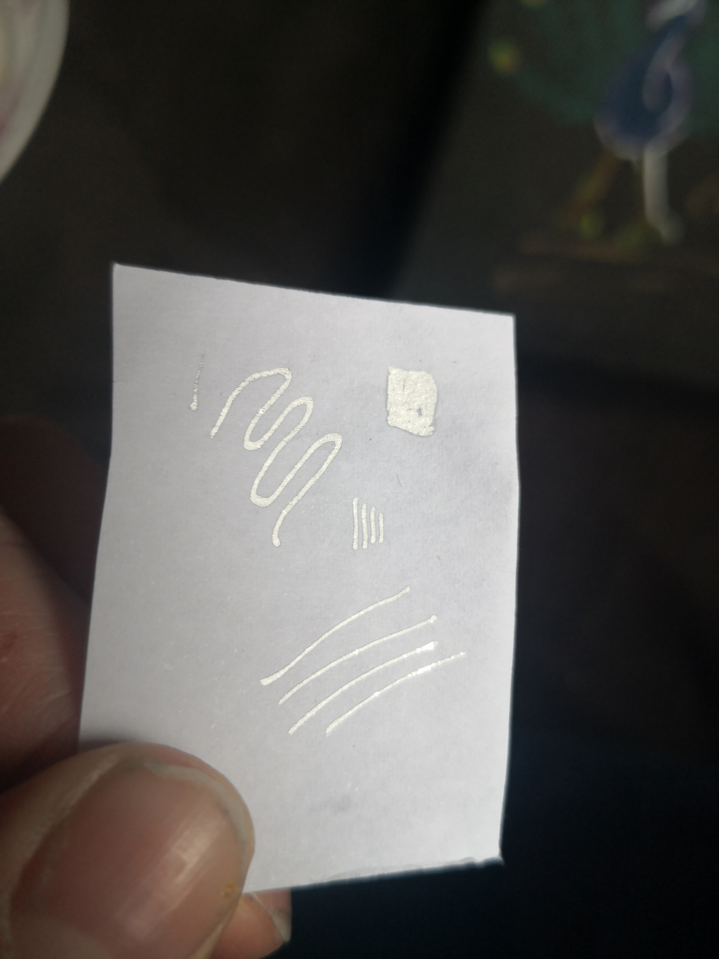 Und dann hatte ich noch einen Glitter Posca Marker drin. Ich habe gleich mal auch einen Mini Farbtest gemacht. Der Stift ist so klasse! Allerdings wusste ich vorher gar nicht, dass die auch Glitter Posca Stifte haben! :-o Also wieder was dazu gelernt <3