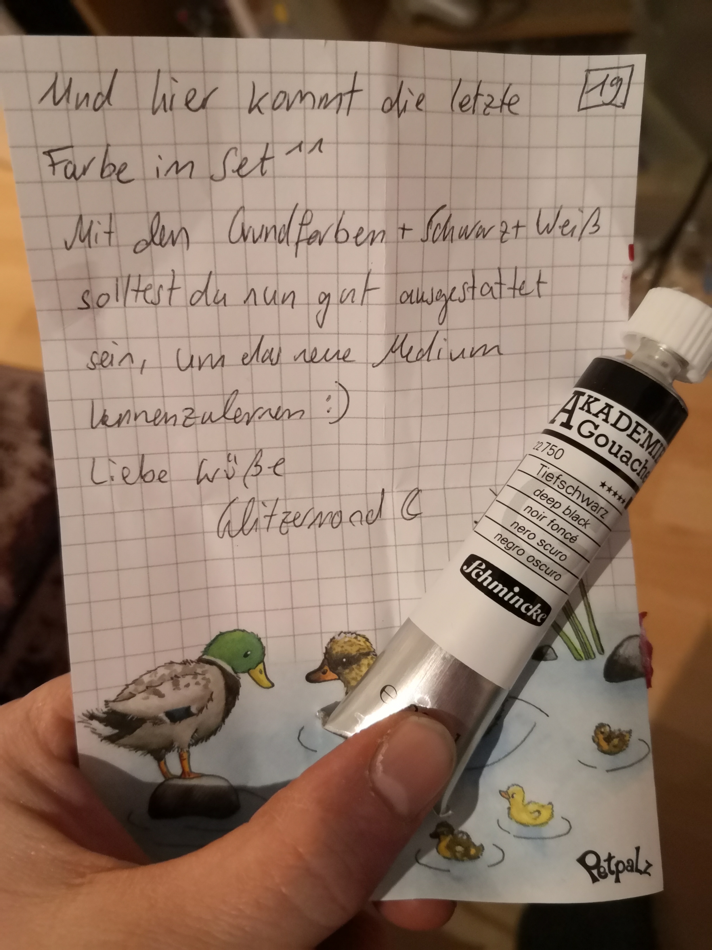 Am 3. Advent sind mir wieder einmal fast die Augen rausgefallen, neben Naschereien, Badebomben und unglaublich niedlichen Miniseifen in Wolkenform fand ich 7(!!!) handgemachte Aquarellfarben in einer weiteren schönen Box. Hihi, da wusste ich gleich, das Arvensis geholfen hat, da ich weiß wie gut sie den Shop findet. Und keine Sorge wegen der Größe des Türchens, ich weiß wie teuer solche handgemachten Farben sind, habe ich sie doch schon so oft aus der Ferne angewinselt…
