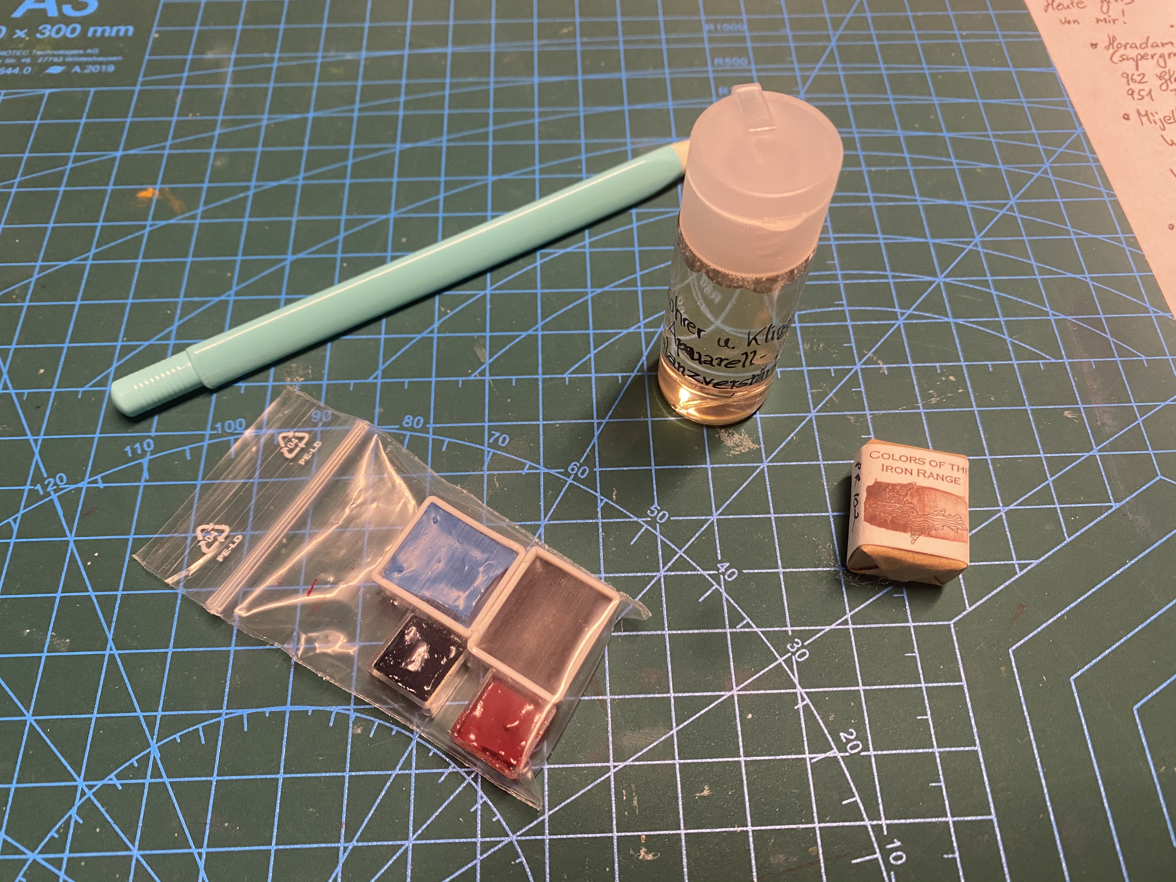 Außerdem war noch ein rosaroter Albrecht dürrer aquarellstift und ein orangener frixion-Stift dabei