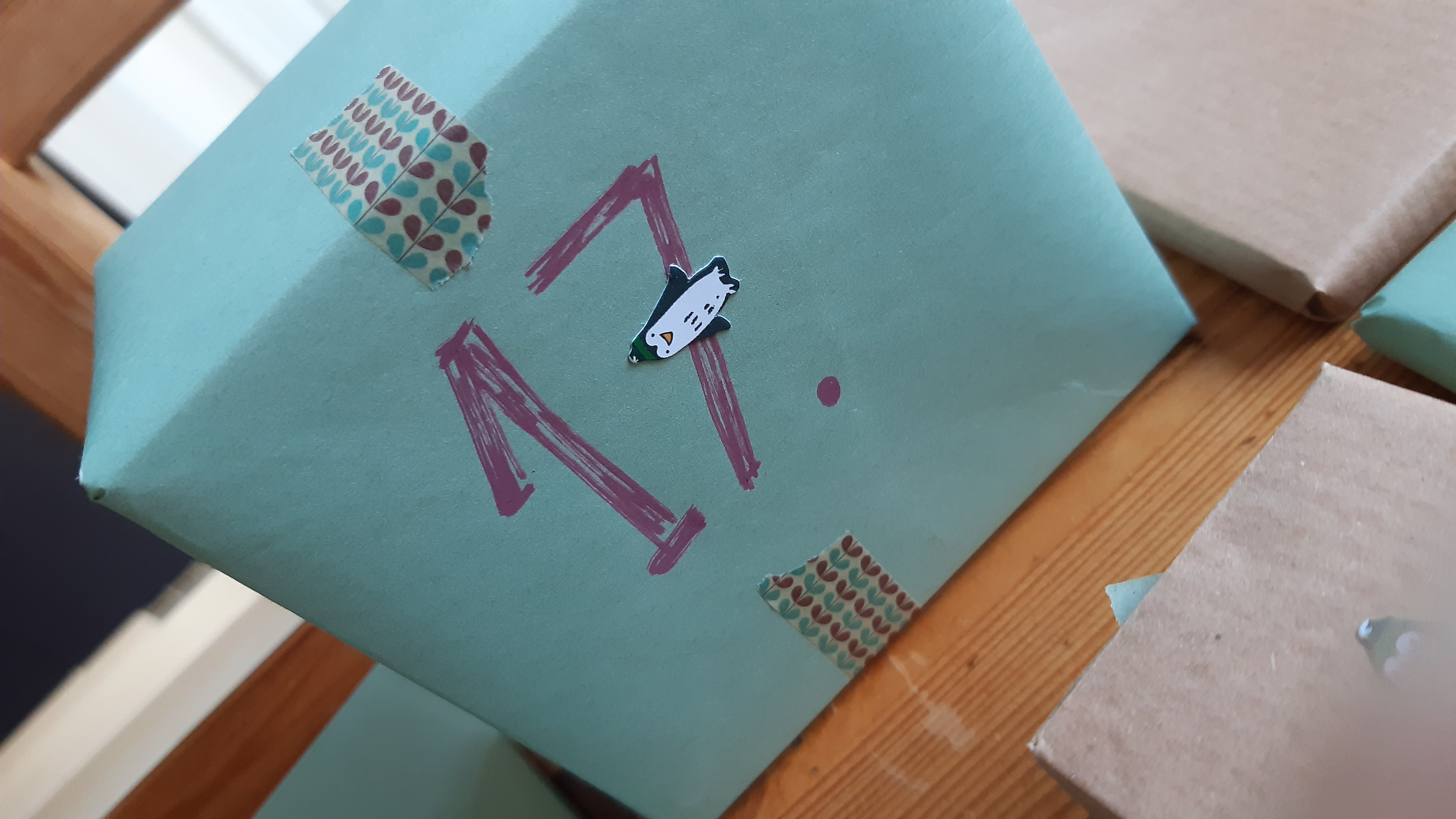 Auf jedem Päckchen ist ein Pinguin und dieser hier ist einfach der Strich von der 7 :D Wie genial xD