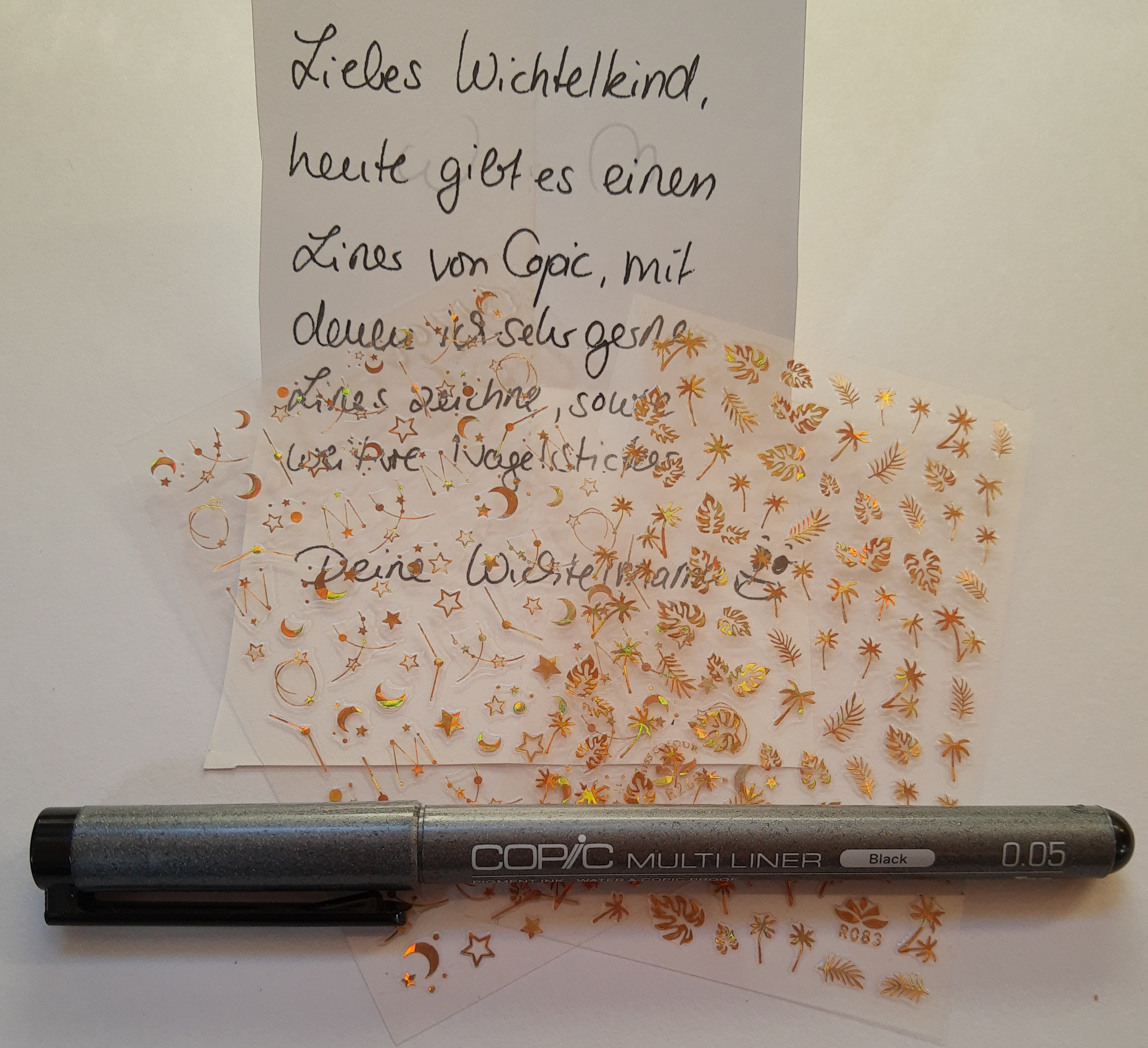 Im dritten Becher waren heute bei mir wieder wunderschöne Nagelsticker und ein Multiliner von copic drin (âáŽââż)