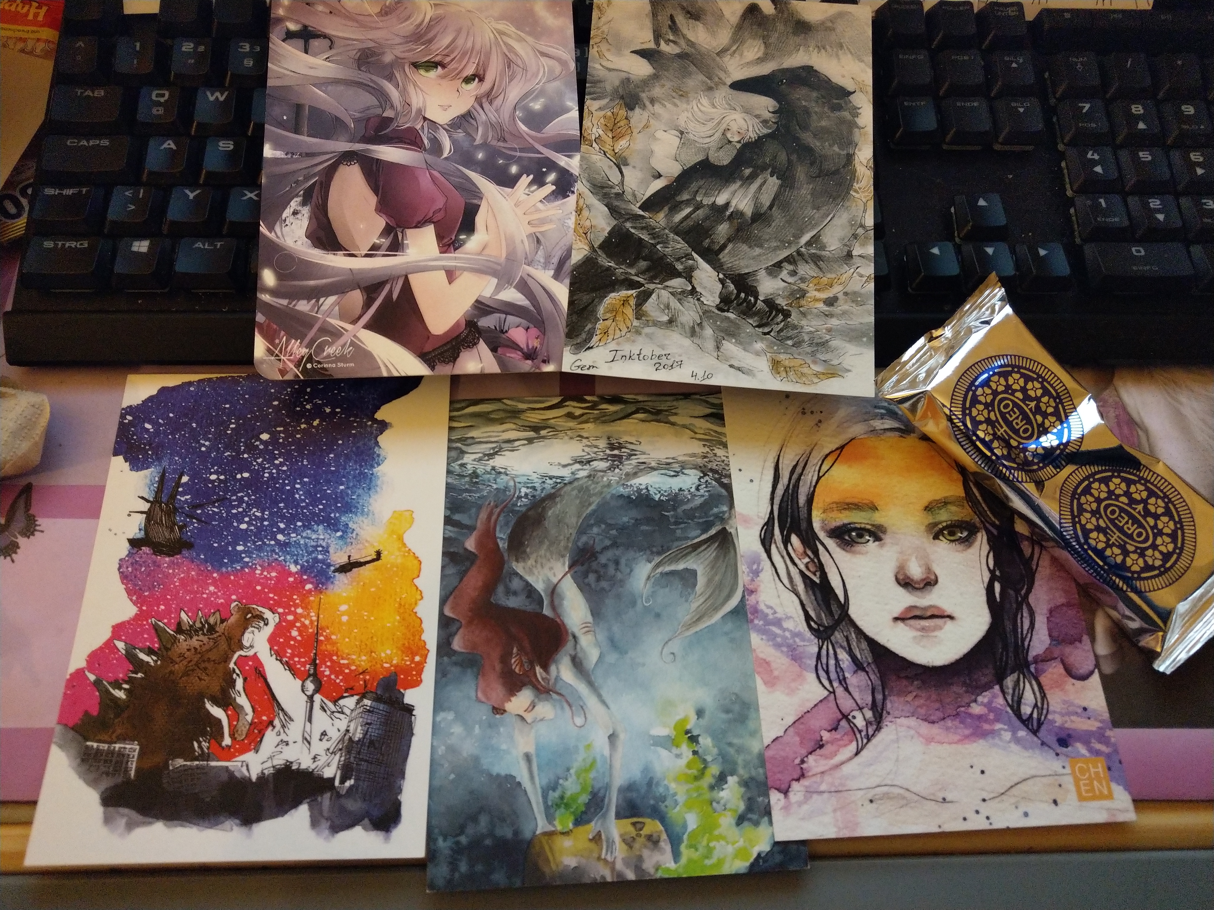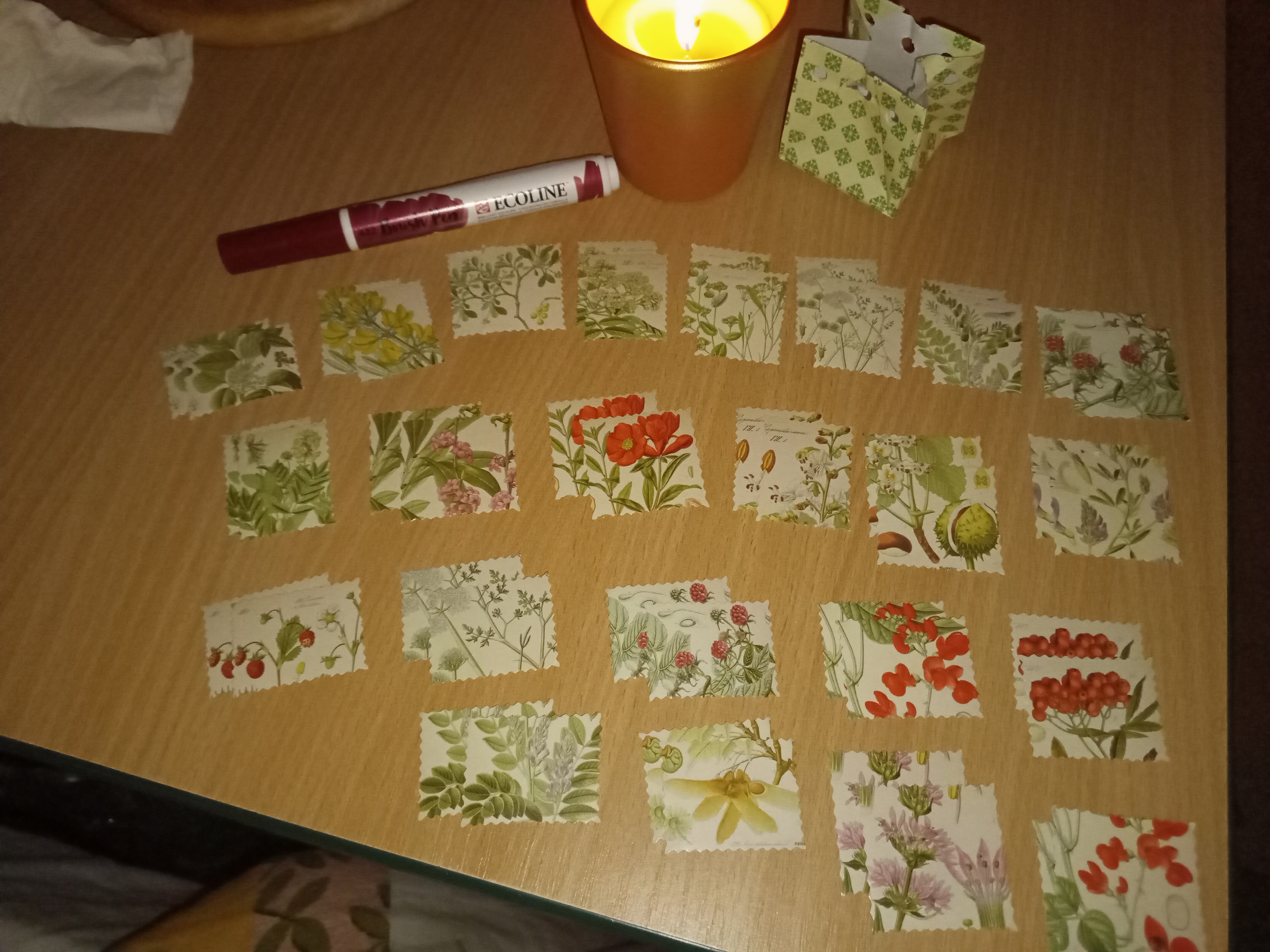 Zwei der selbstgemachten Karten klebten leider ganz arg zusammen, aber ich konnte sie glaube ich ganz gut voneinander trennen.