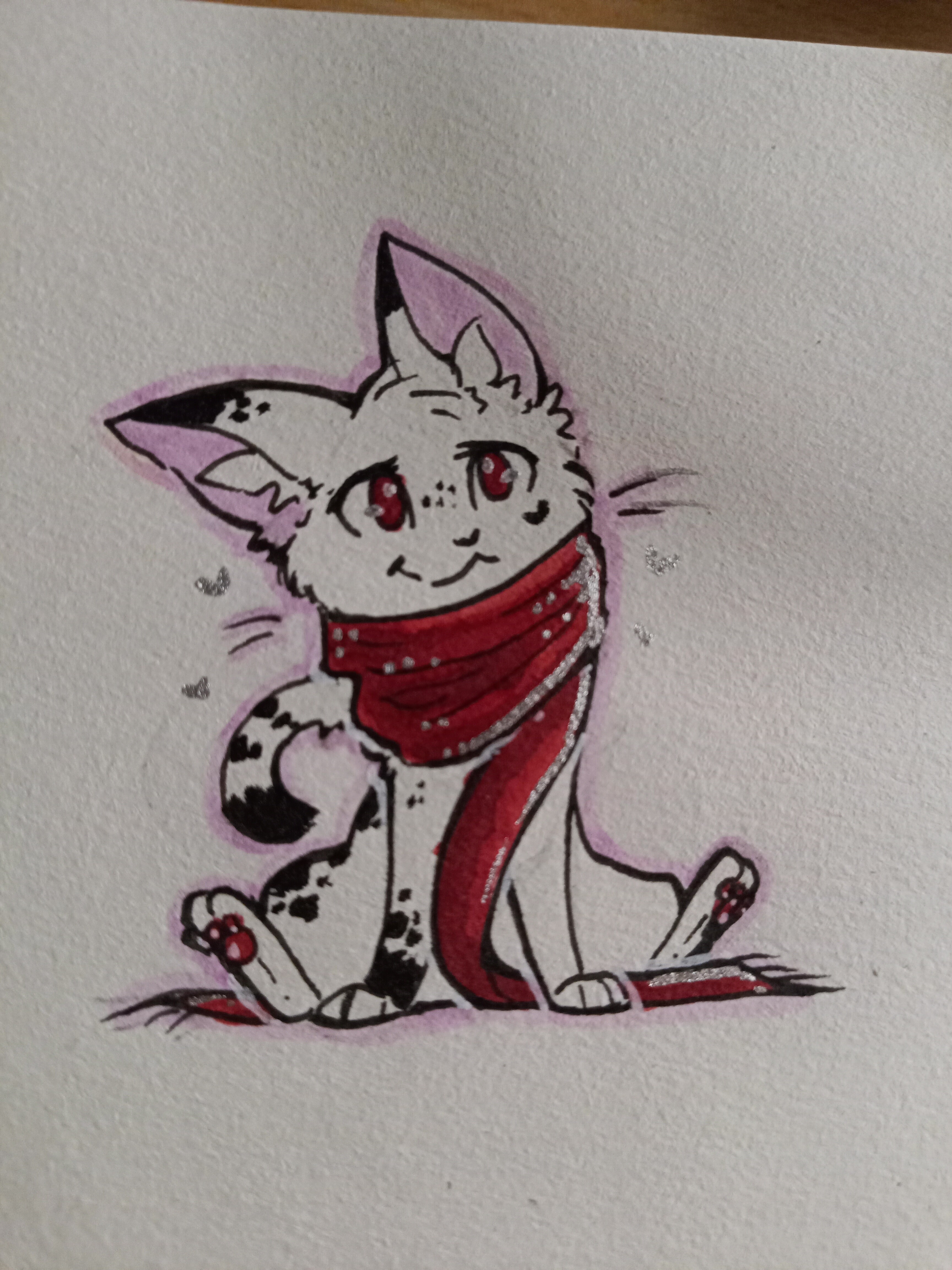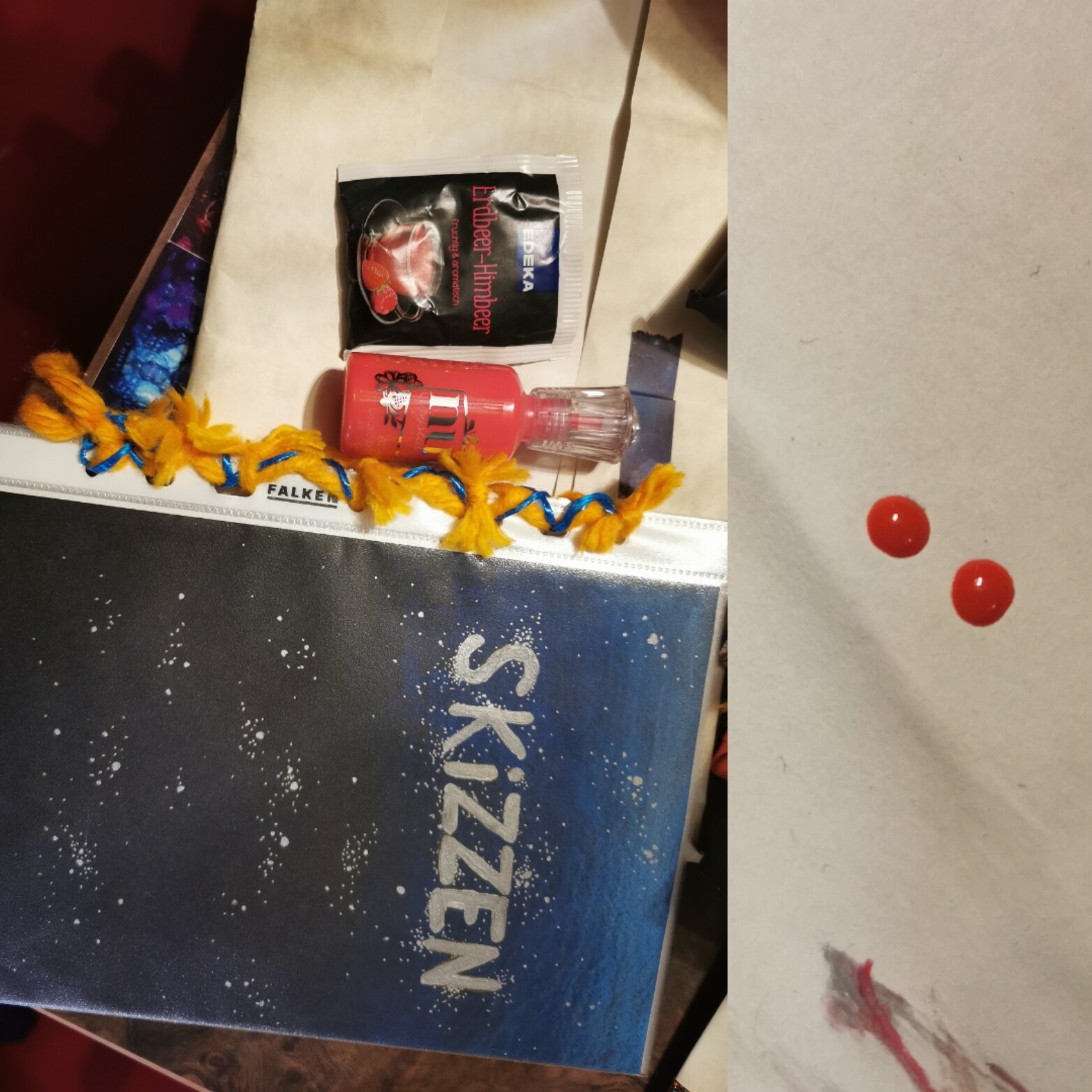 (an dem nicht weiĂen Untergrund bin ich Schuld, weil ich ihm mein Ideen-Skizzenbuch in die Hand gedrĂŒckt habe, das leider kein weiĂes Papier hat):