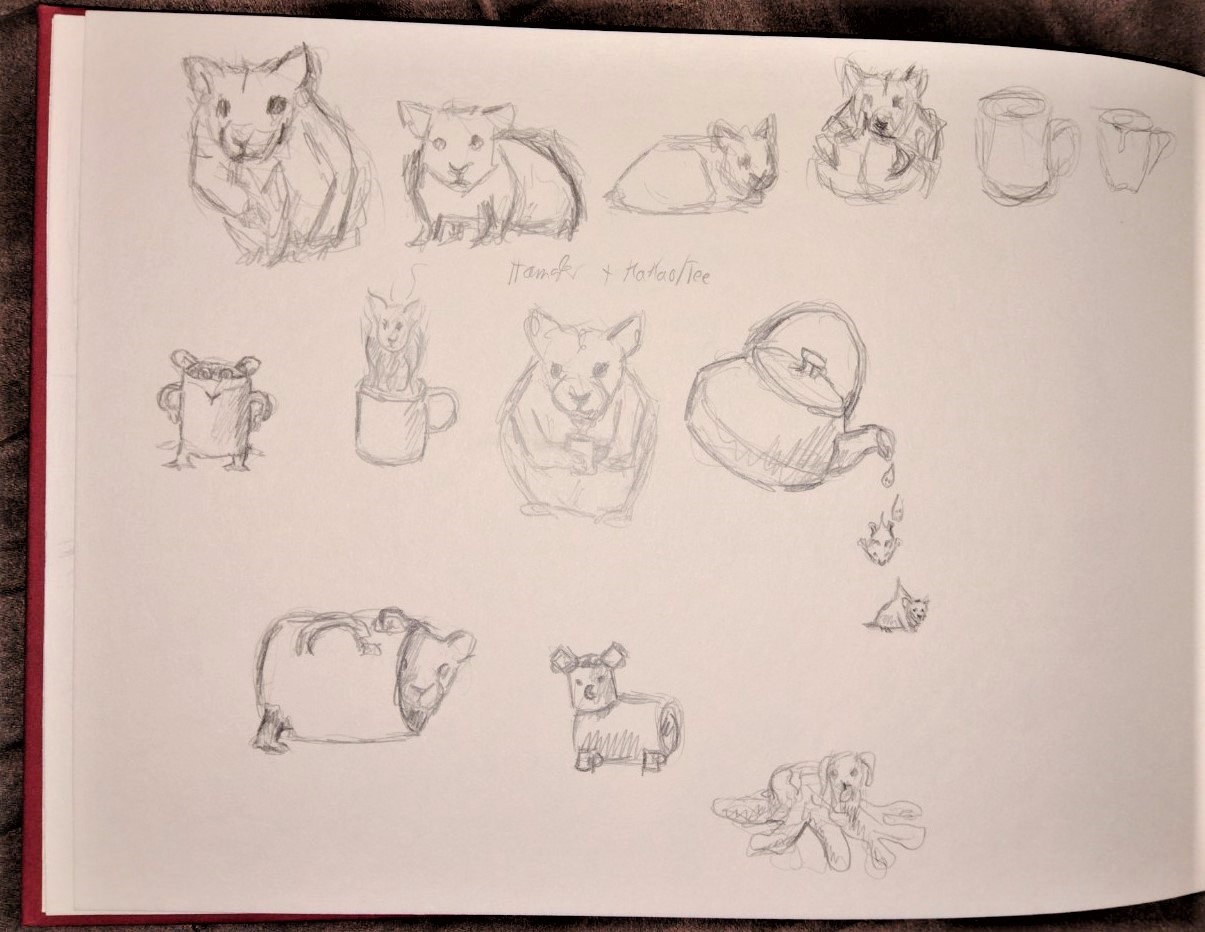 Wie ich gestern beim Lesen der Aufgabe ja schon vermutet habe, war das eine richtig harte Nuss fĂŒr mich. Es fing damit an, dass meine Hamster irgendwie alle zu Löwen mutiert sind und ich habe mich sehr schwer getan Ideen fĂŒr Tee oder Kakao zu entwickeln. Entsprechend habe ich etwas geschummelt und die meisten Zeichnungen sind mit Hamster+Tasse.