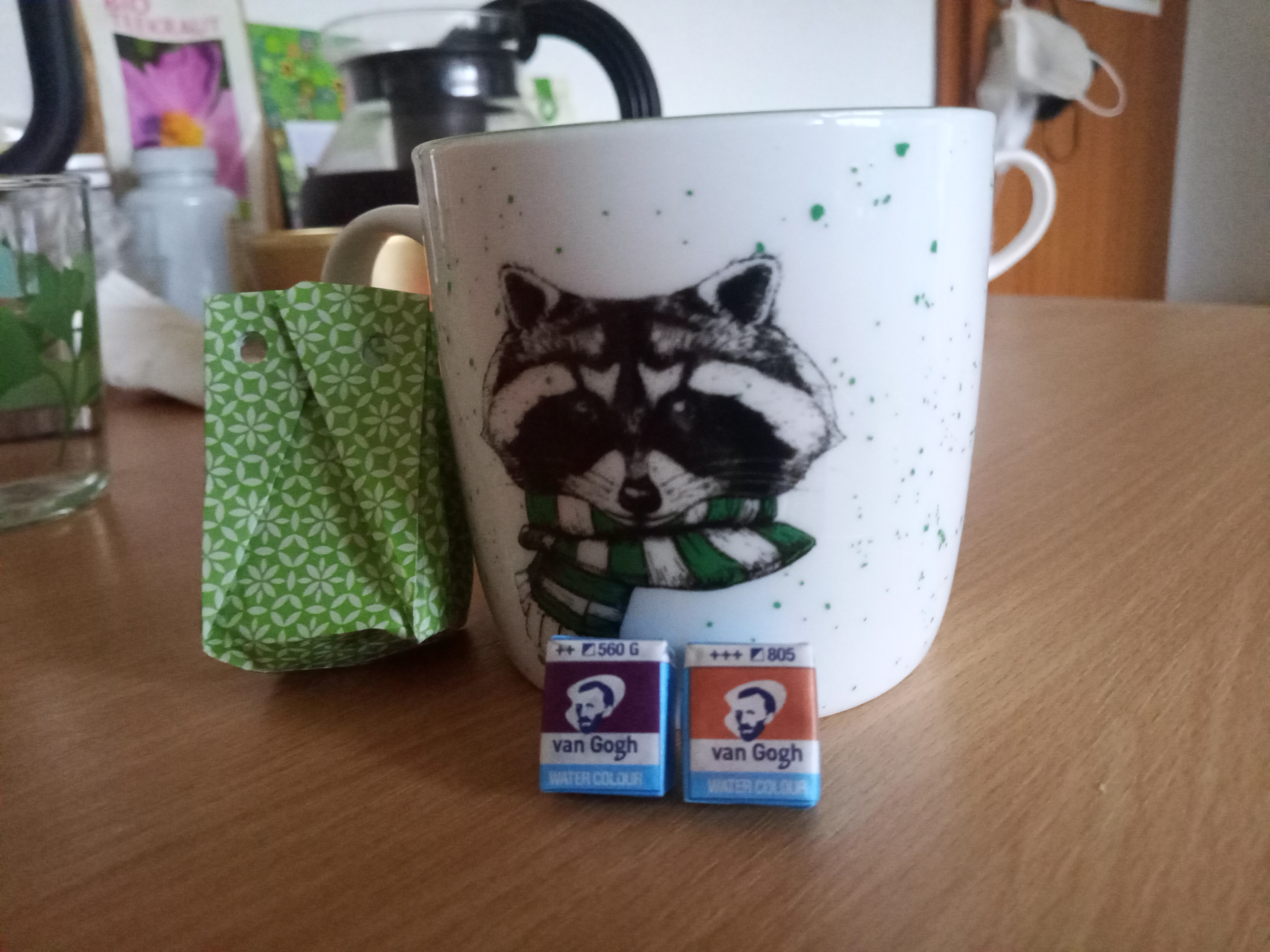 AuĂerdem, weils ja noch nicht genug war und meine Wichtelmami zu Ăbertreibungen neigt, noch zwei van Gogh FarbnĂ€pfchen, einmal DĂ€mmerung Violett und einmal Kupfer. Ich lieeebe Kupfer, die Farbe habe ich mir tatsĂ€chlich auch vor nicht all zu langer Zeit gegönnt, aber macht nix, die Farbe ist mega toll und das NĂ€pfchen hĂ€lt bestimmt nicht so lang durch. Bei der Farbe Violett musste ich still in mich hinein grinsen, weil ich gestern beim malen festgestellt habe, dass unerwarteter Weise mein Violett gerade zu neige geht und ich mal neues brĂ€uchte - was fĂŒr ein Zufall! :B