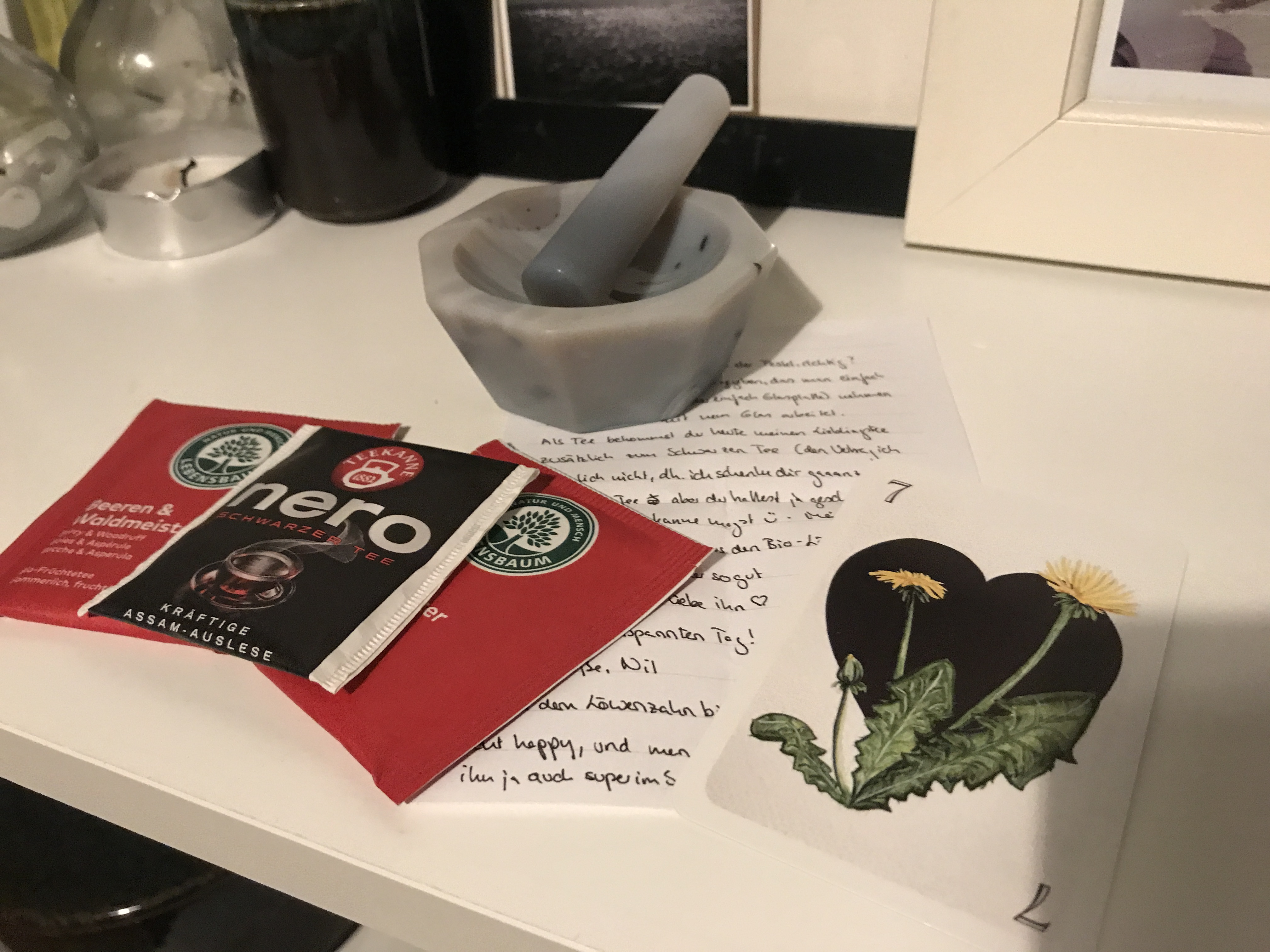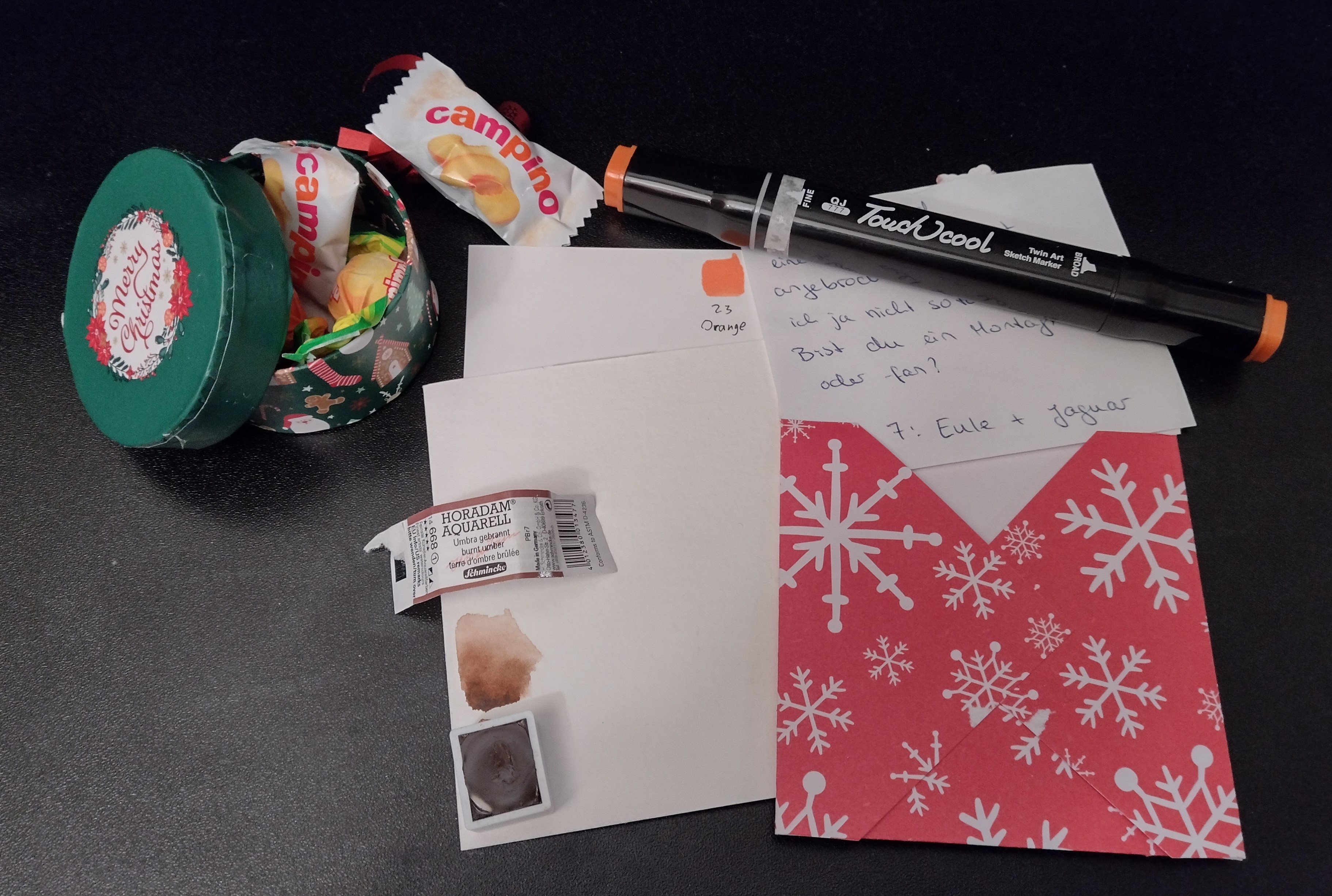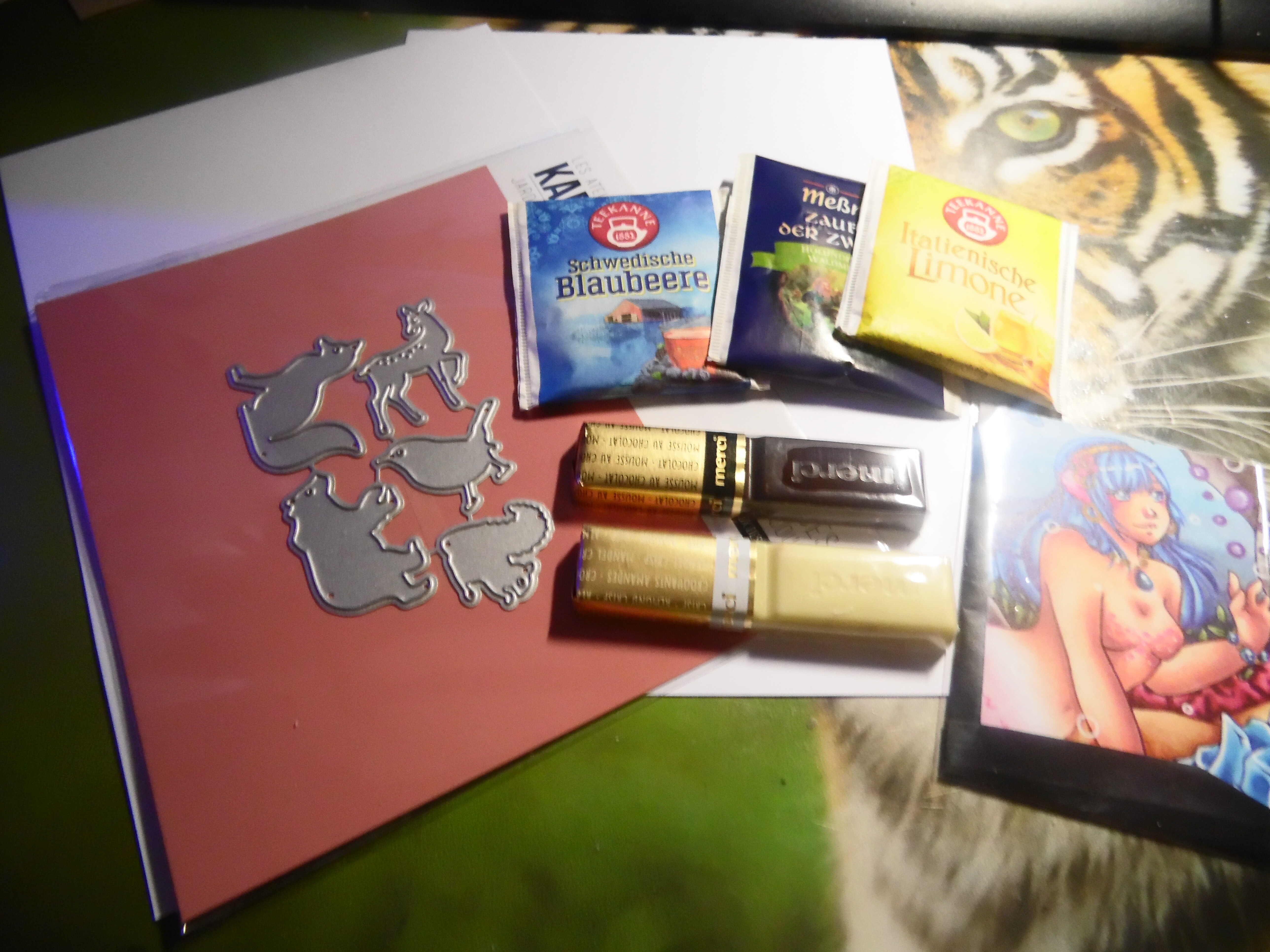 Erwartet hat mich ein neues Pigment, ein toller Braunton :D, Tee und was süßes, nom!