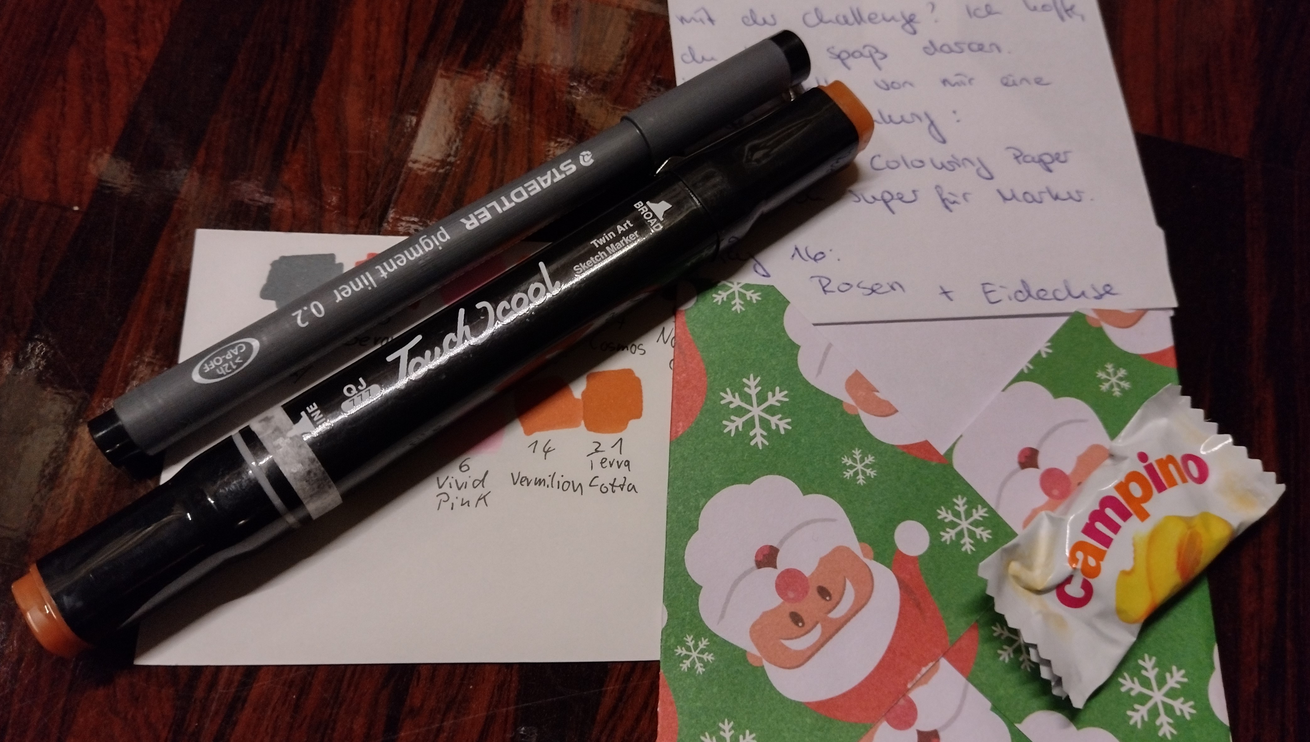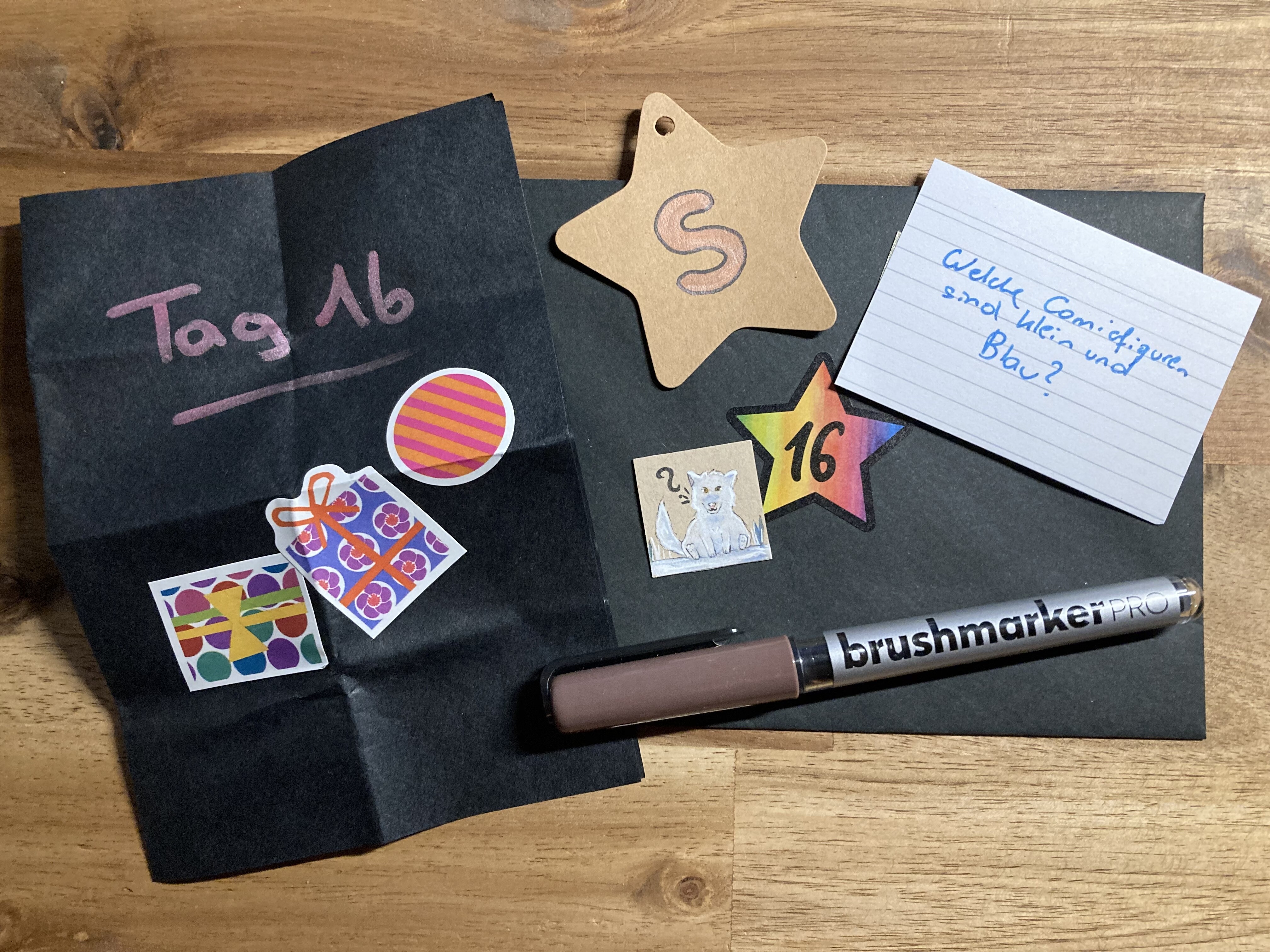 Heute hat mich ein weiterer Brushmarker im Päckchen erwartet! Den habe ich gleich zu den gesammelten Papieren gelegt :P. Es ist sehr cool wie viele verschiedene Dinge im Kalender sind :D danke!