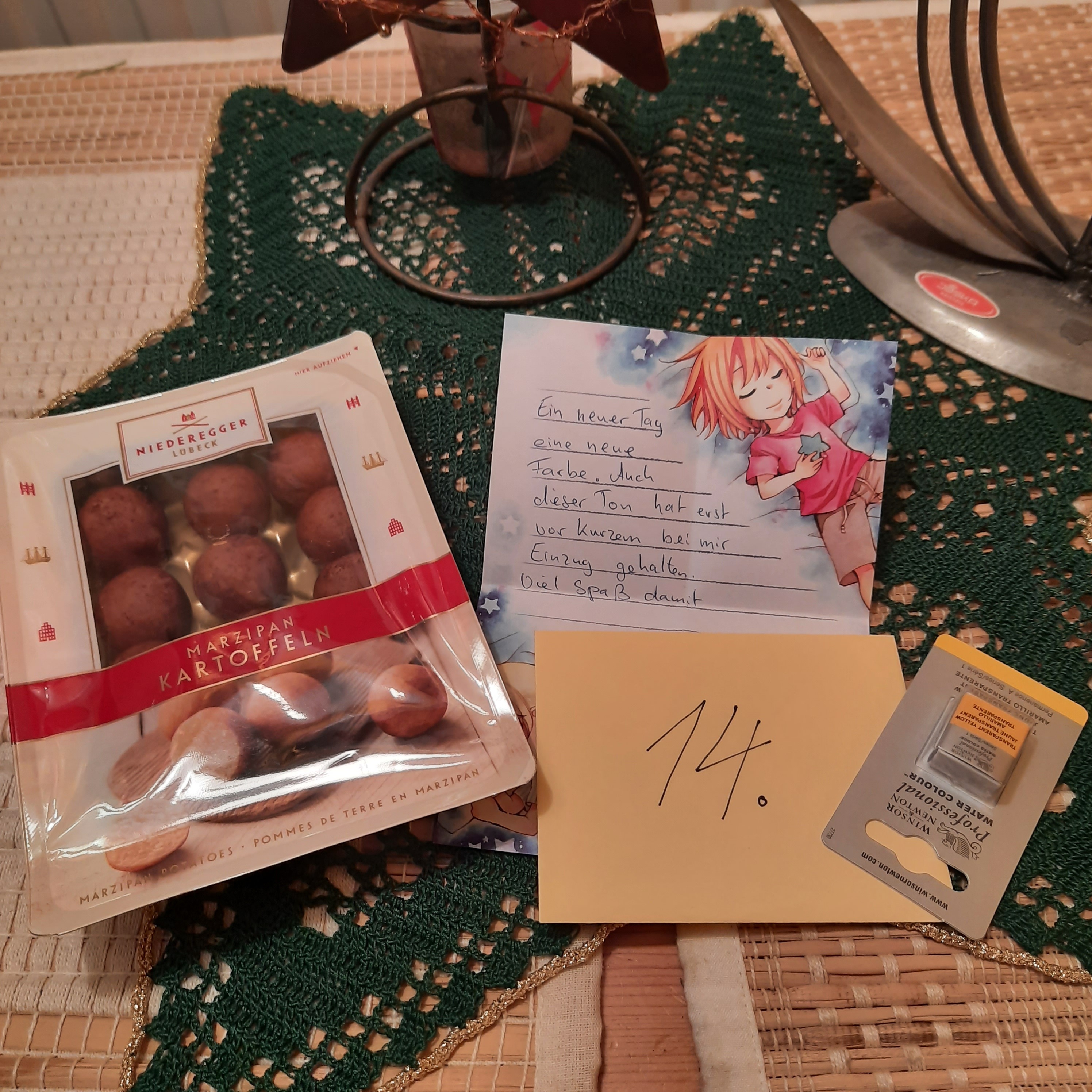Am 14. gab es leckeres Lübecker Marzipan von Niederegger (lustig, ich war letztens erst in Lübeck und auch bei Niederegger), und dazu wieder eine schöne Farbe für meine Sammlung. Vielen Dank! :D