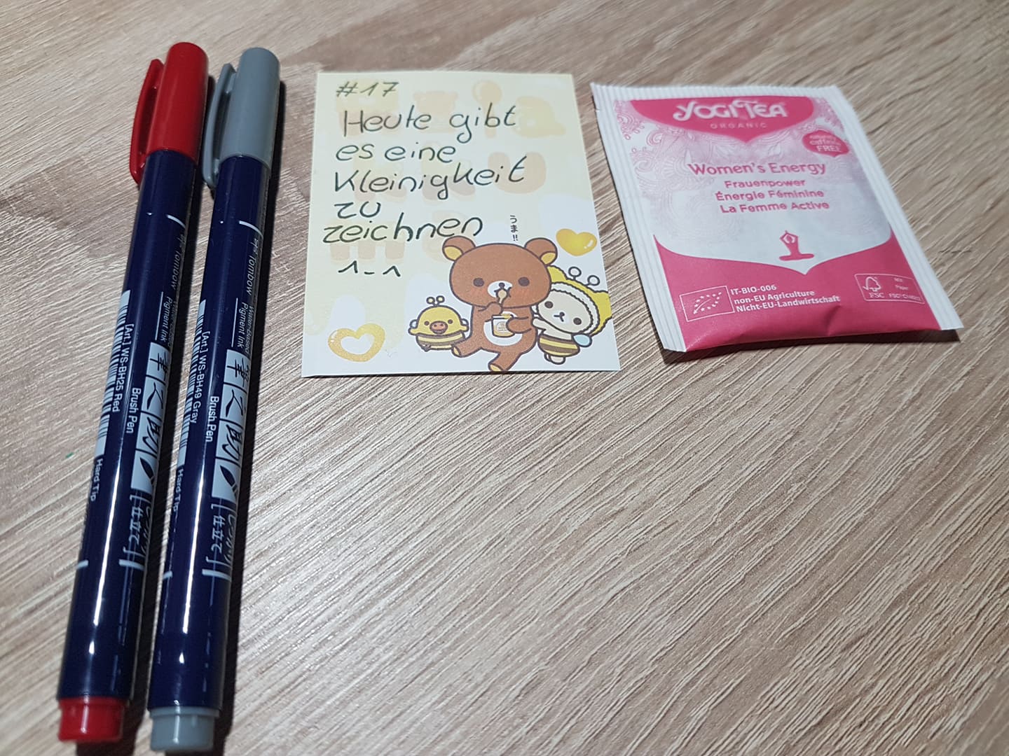 Bei mir gab es heute 2 Fudenosuke von Tombow drin einmal in der Farben Grau und einmal die Farbe Rot. Ich freue mich schon riesig mit ihnen zu arbeiten ich mag die Stifte nämlich sehr <3 und dann gab es noch einen leckeren Frauenpower Tee drin <3
