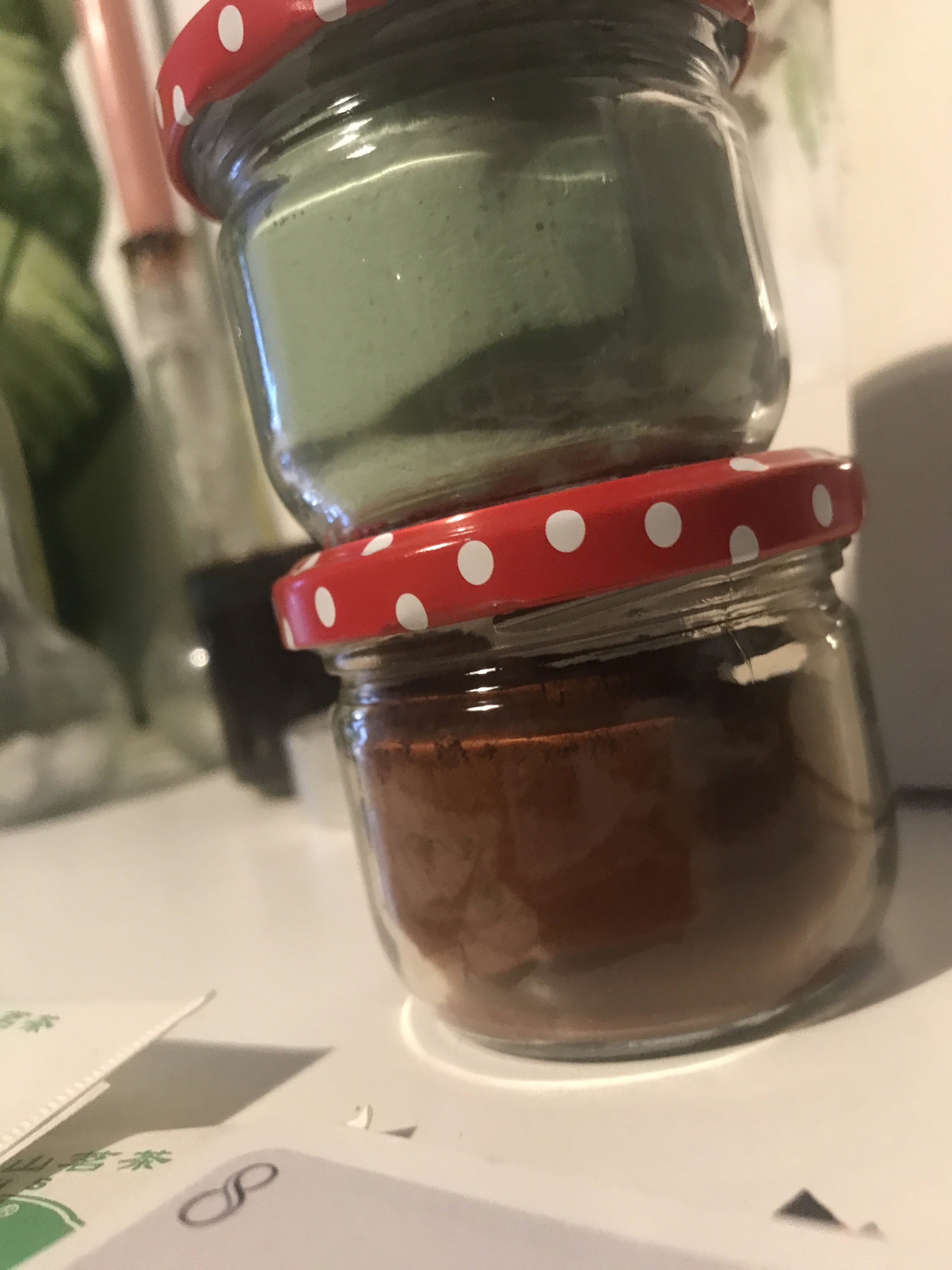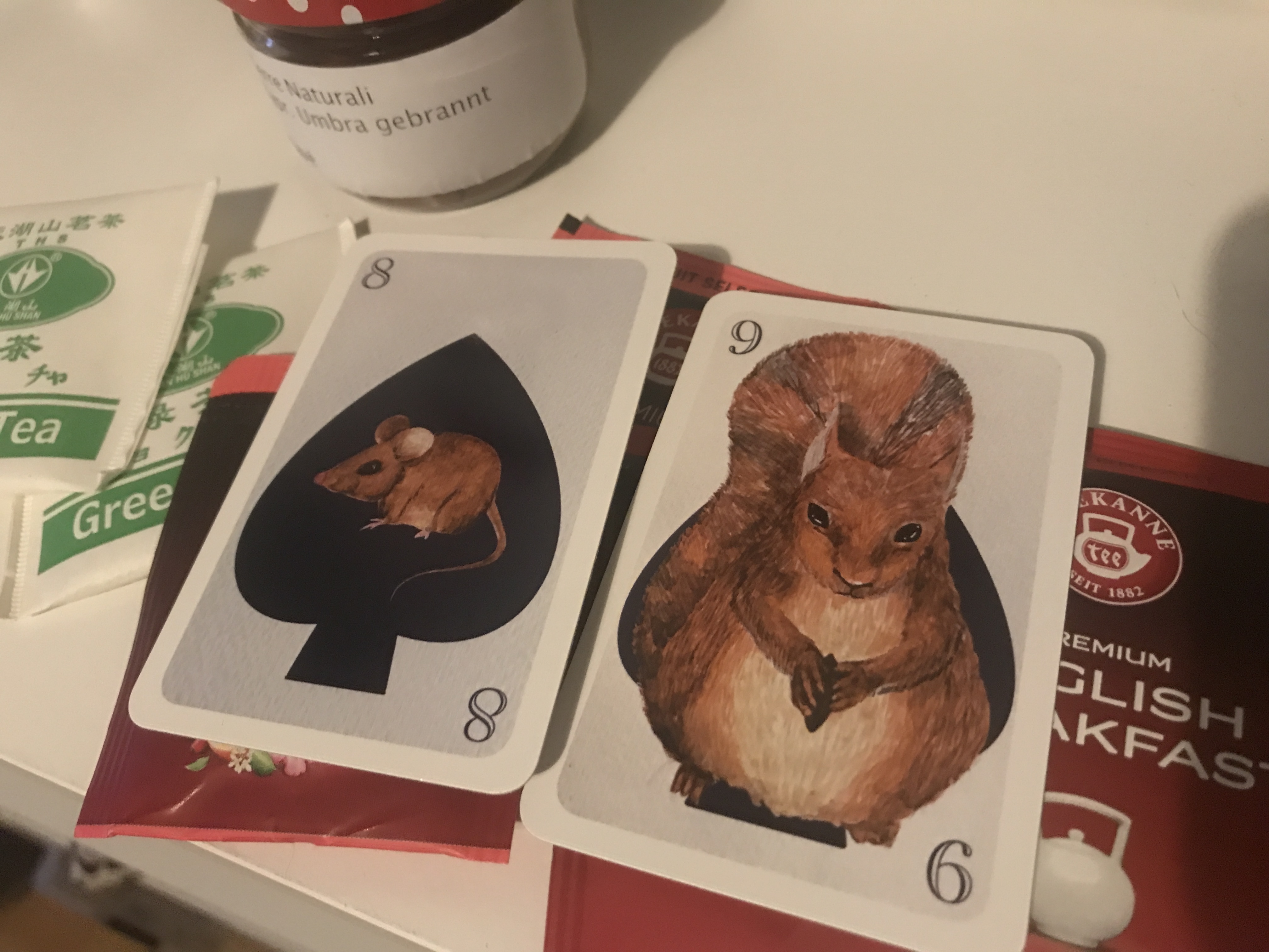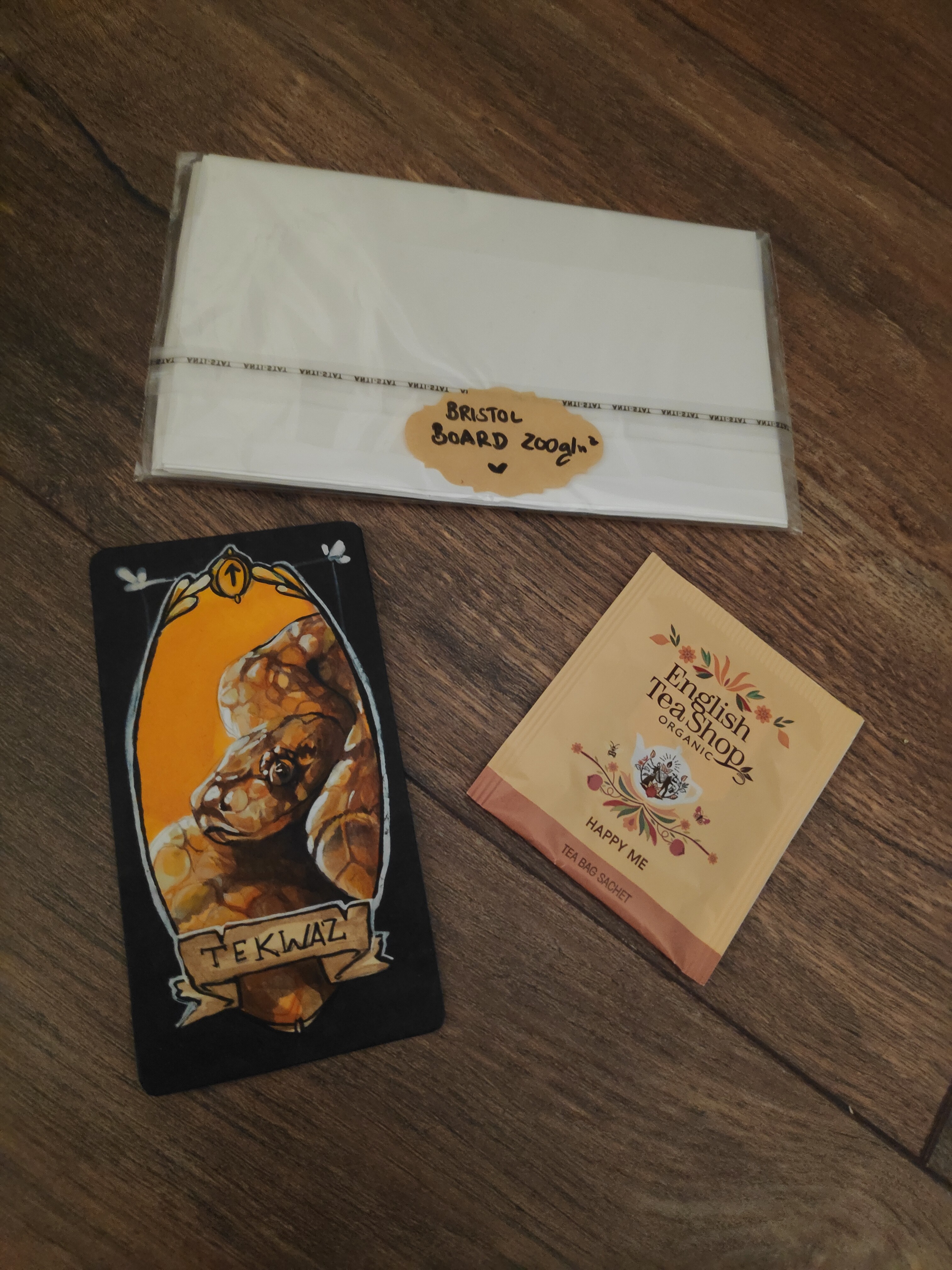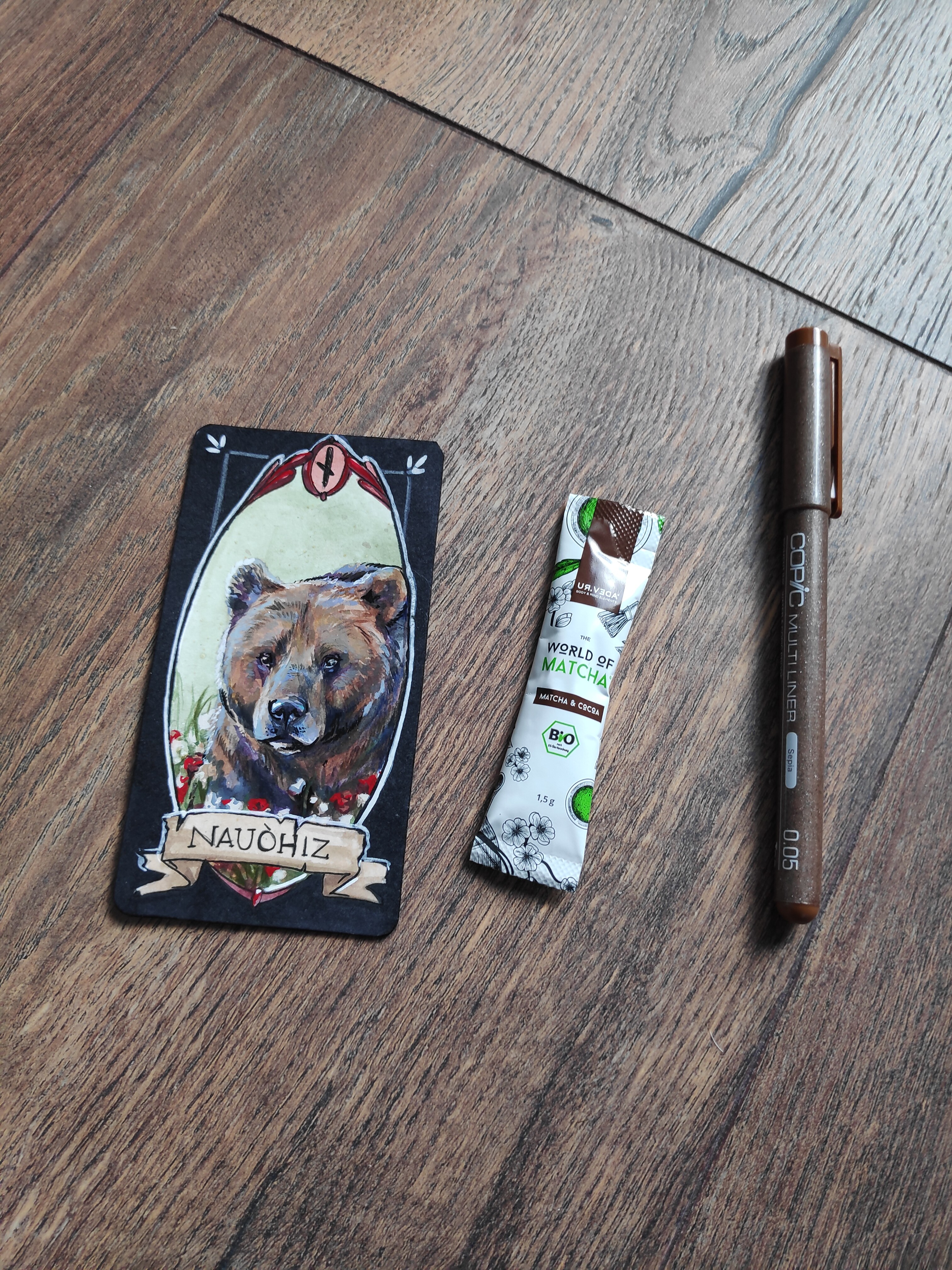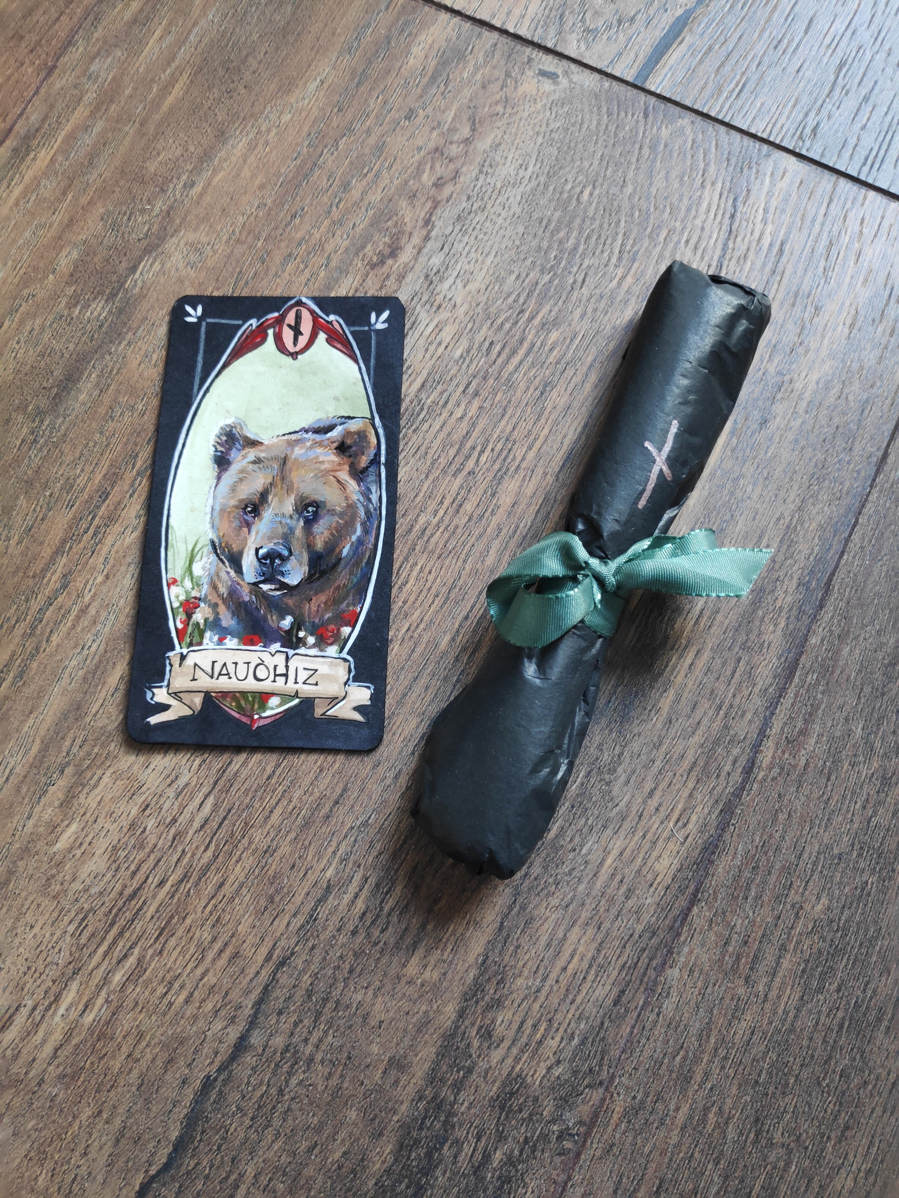 Zuerst durfte ich mich gestern und vorgestern über tolle Erdpigmente für meine Farbherstellung freuen. Mein Wichtel hat sich da (verständlicher und logischerweise) zusätzlich zu Ellers Tipps auch Rat bei Major geholt und herausgefunden, dass Erdpigmente sich besonders gut eignen um Farben herzustellen. Daher wurde ich mit einem super schönen Braunton und einem Grün in niedlichen Gläsern überrascht. Und die tollen Karten für mein Deck will ich auch nicht unerwähnt lassen!