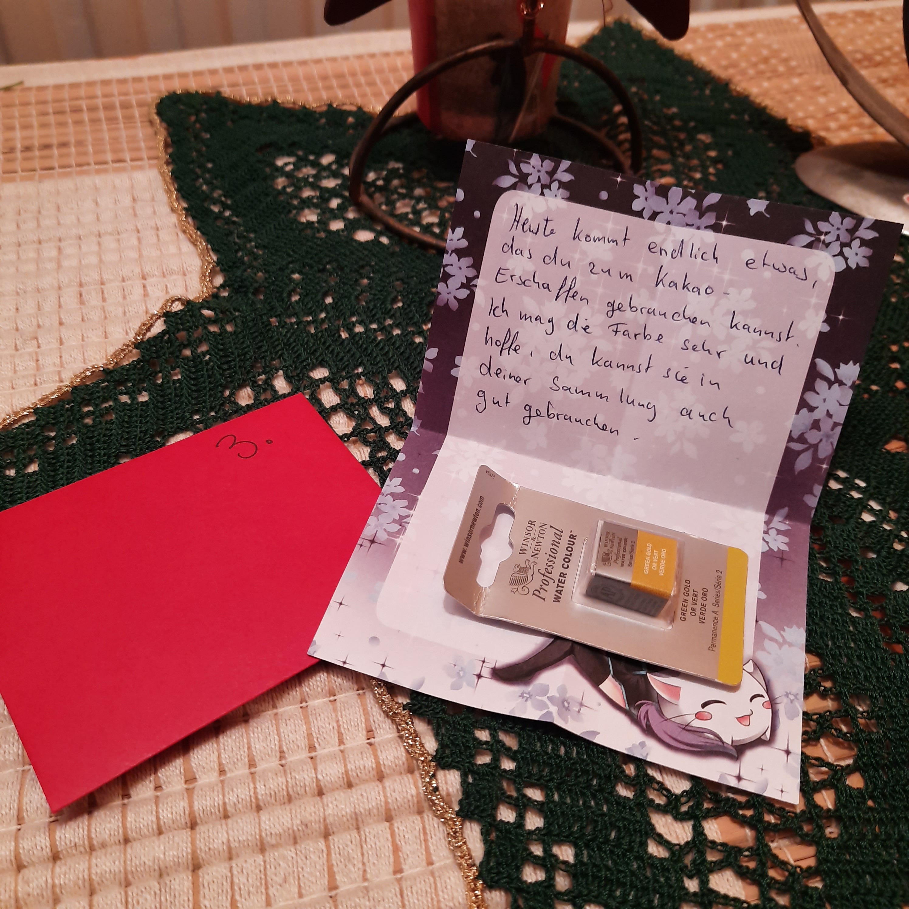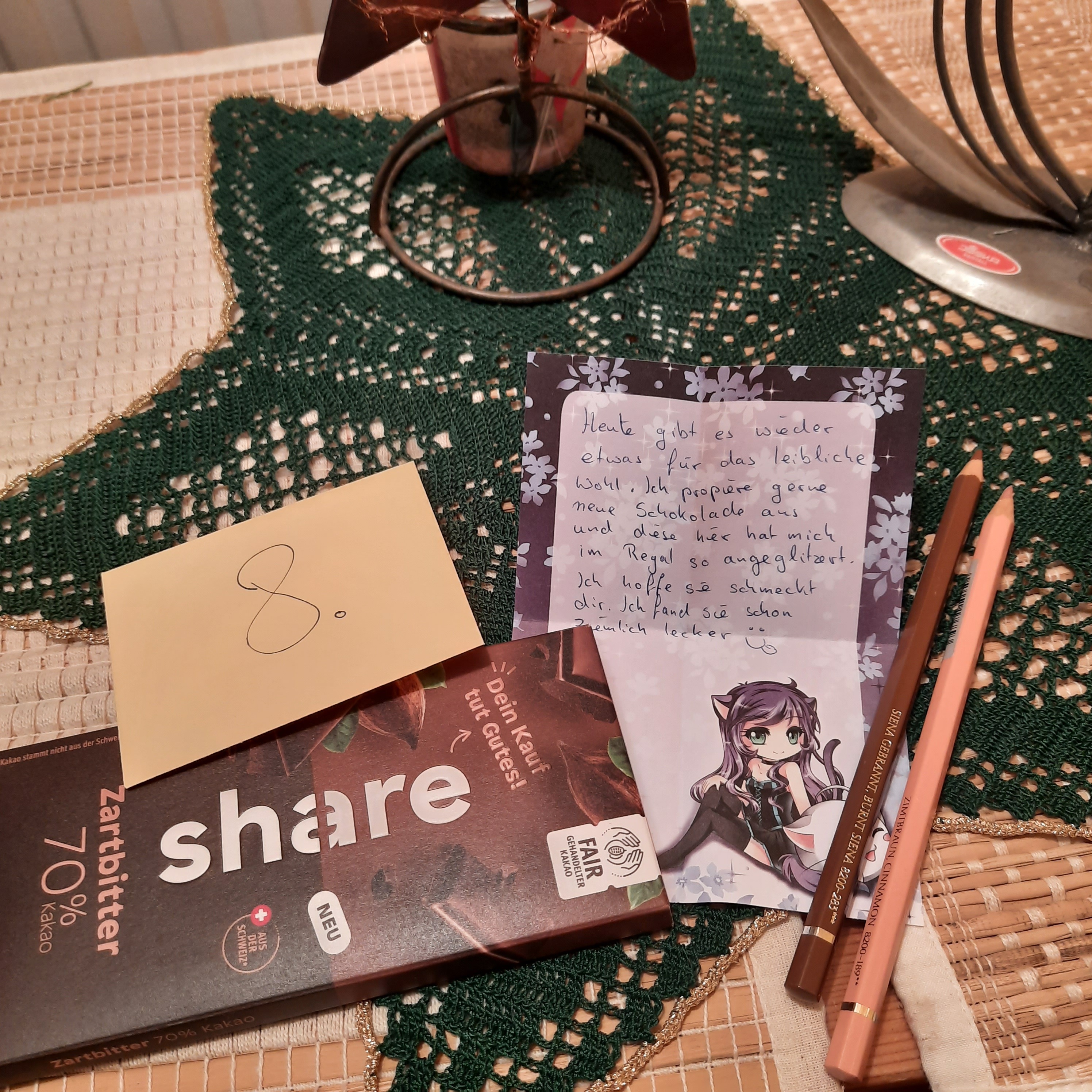 Am 8. gab es für mich Schokolade und zwei Albrecht Dürer Aquarellbuntstifte von Farber. Bin auch schon super gespannt drauf sie endlich auszuprobieren.