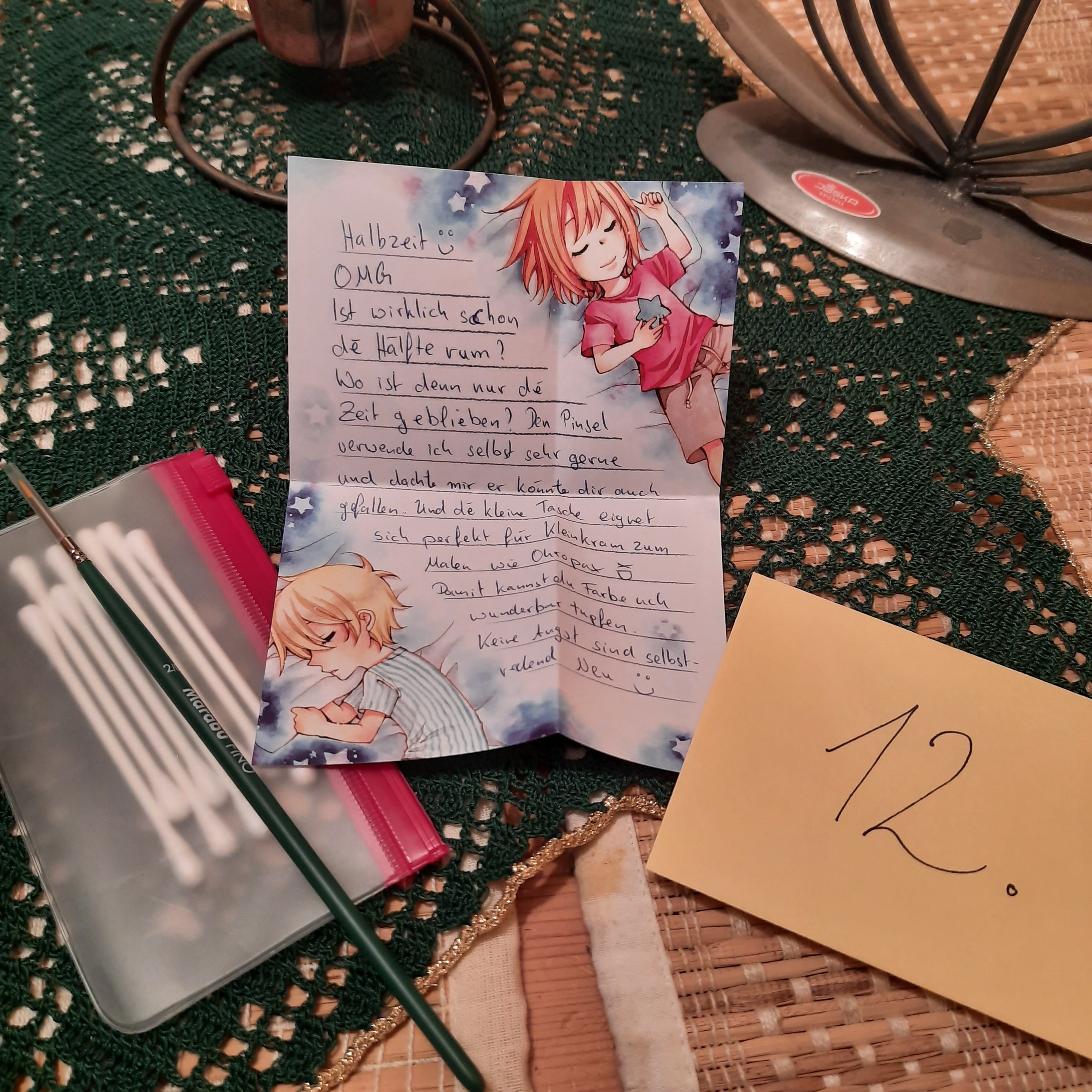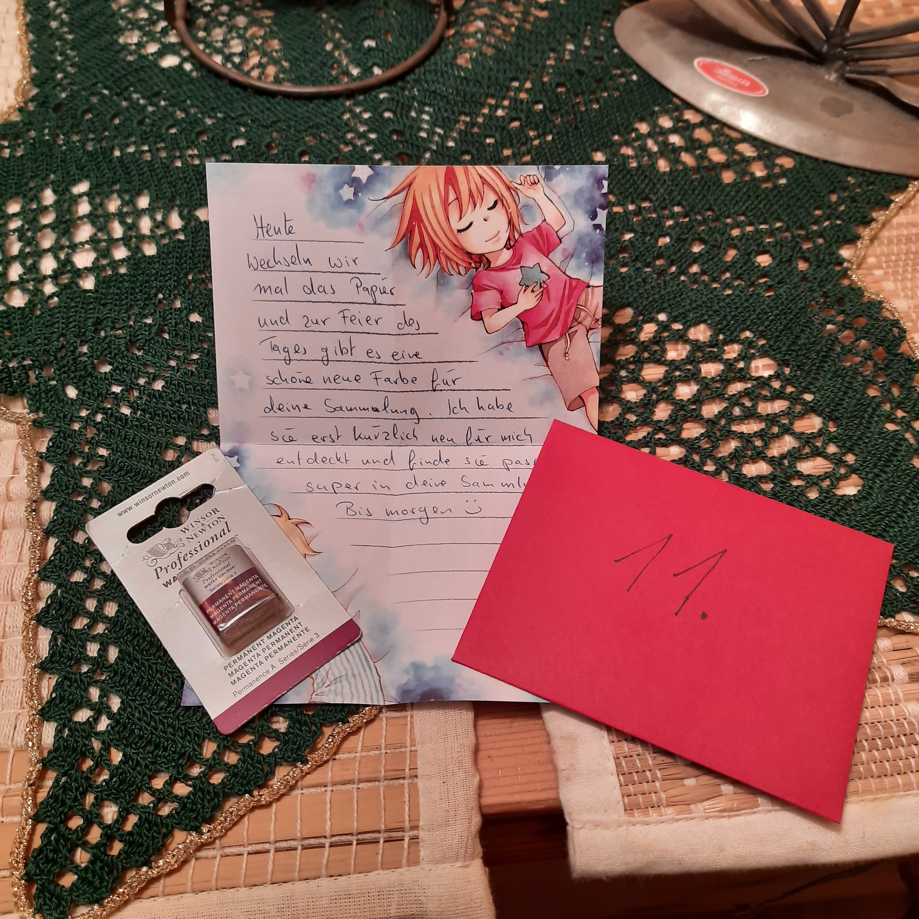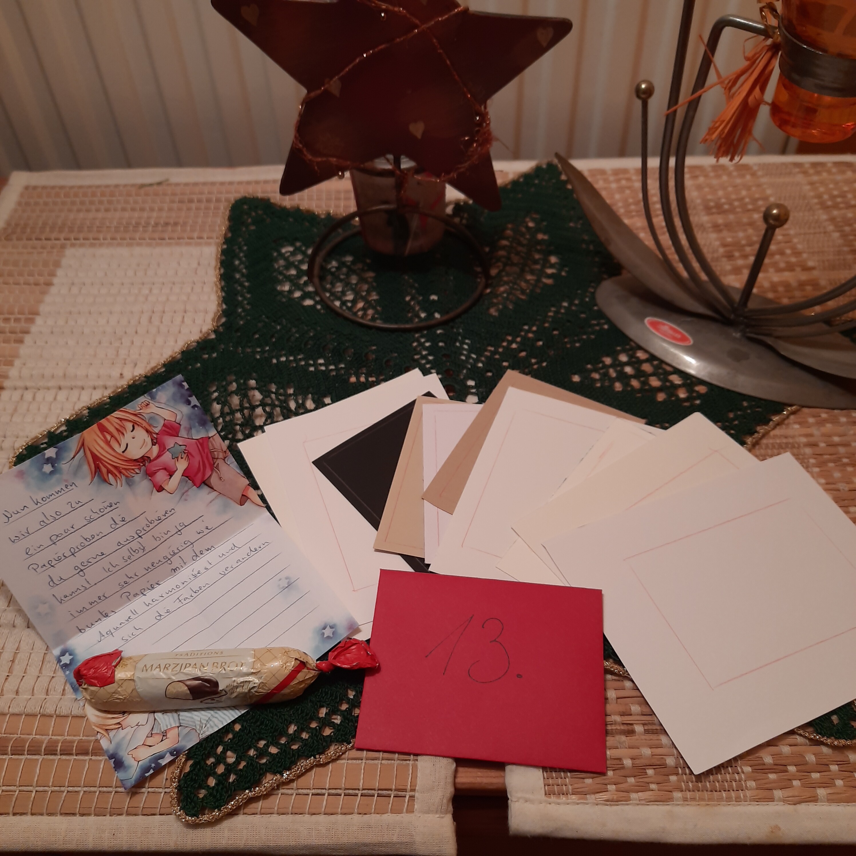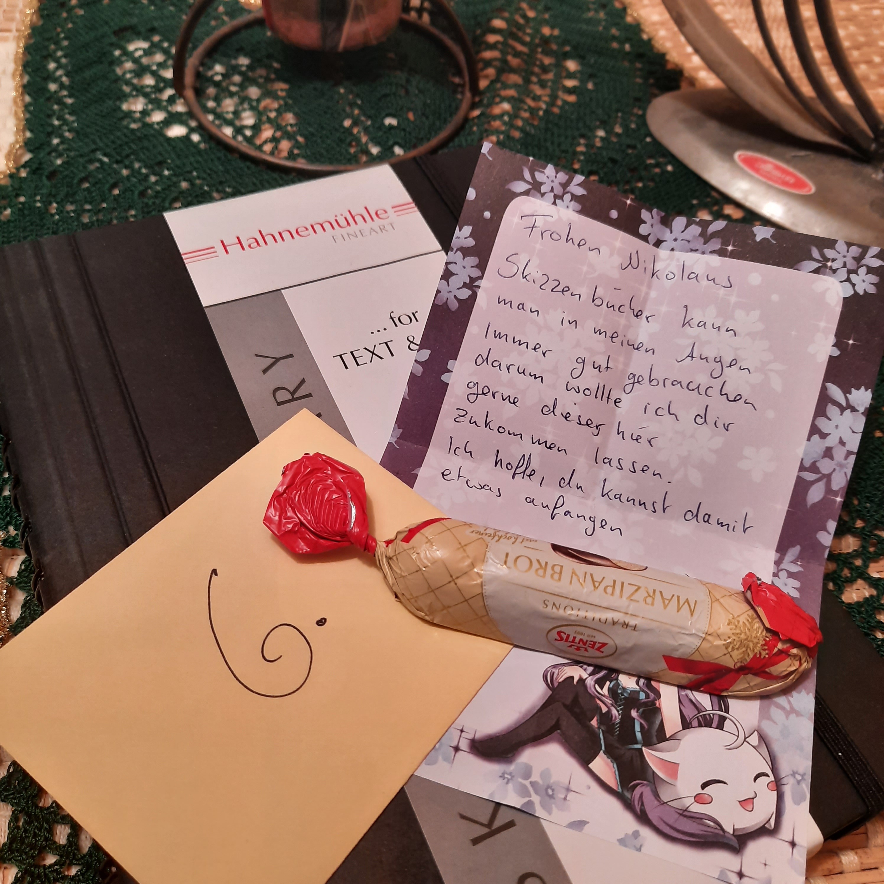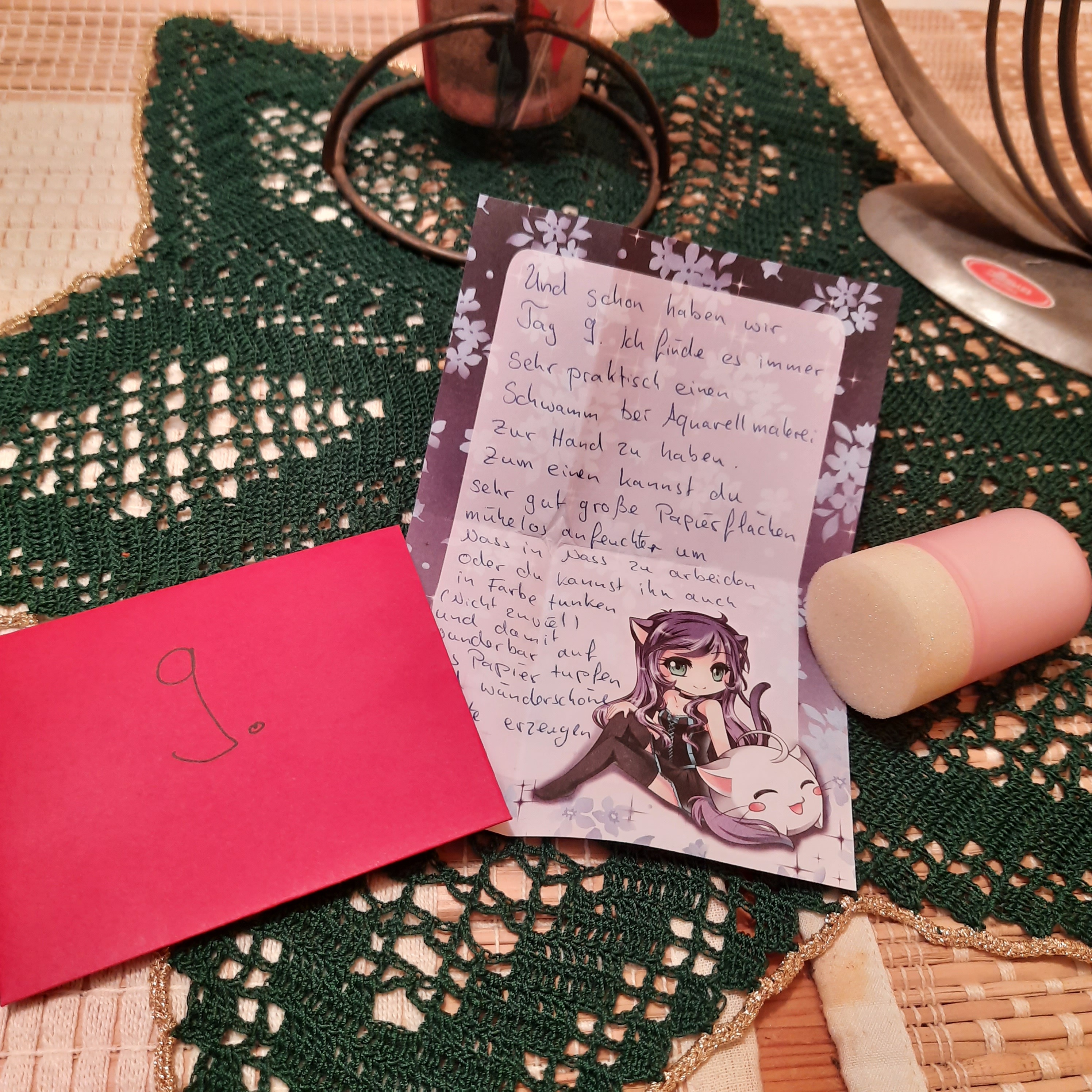 Ich bin nach wie vor mit jedem Türchen mega happy und ich schreibe zu einem entspannteren Zeitpunkt auch noch einen ausführlicheren Post dazu, danke auf jeden Fall für all die tollen Zeichenmaterialien (nch mehr Stifteee <33) und auch für die tolle Bienenwachskerze, die sich gestern in meinem Türchen befand, die duftet einfach toll!