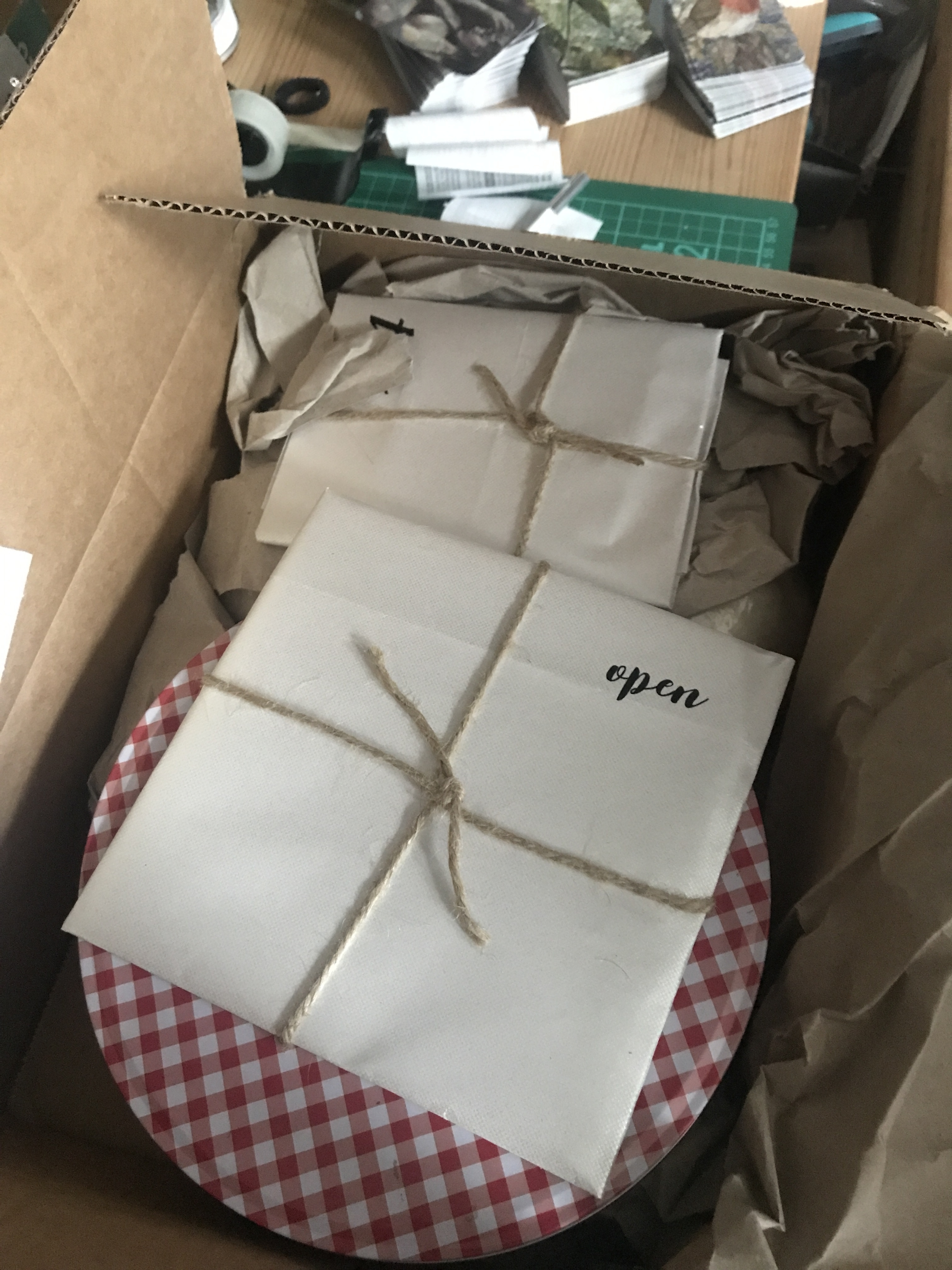 Nach dem schnellen reinlinsen habe ich erstmal ganz viele, verschiedene Sachen gesehen. Einen lieben Brief, ein Päckchen für Weihnachten, eins für gleich und eine Keksdose!