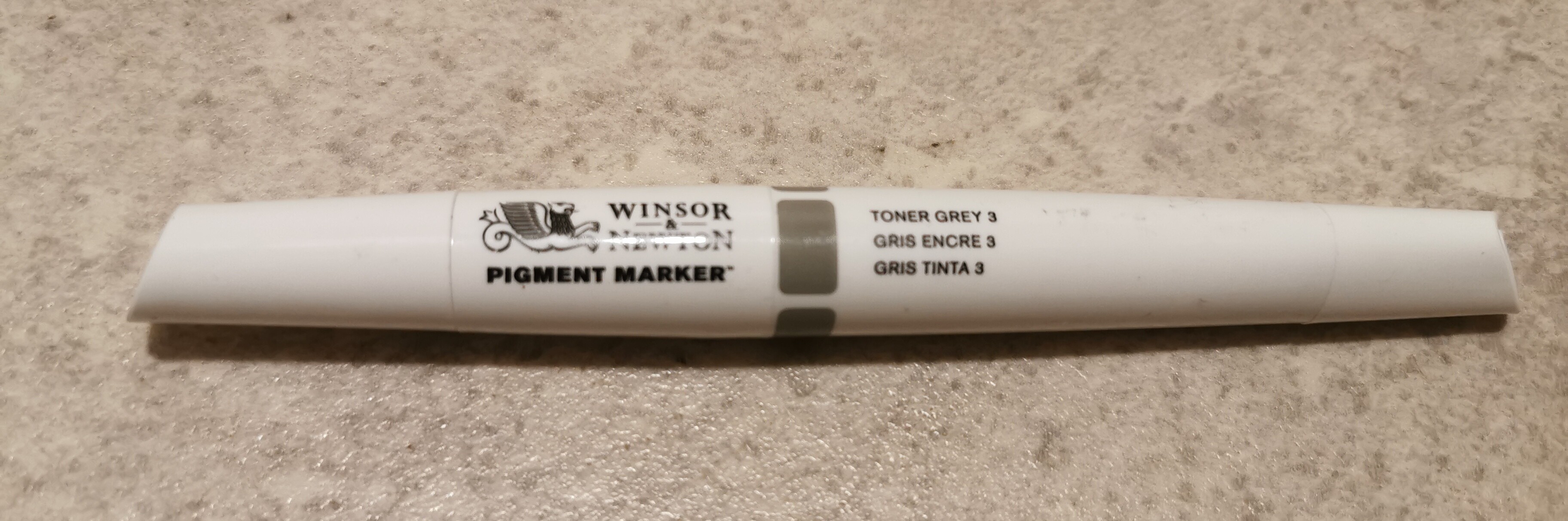 Der heutige Marker ist leider wieder ein Grauton. Grautöne sind die eine Farbrichtung, von denen ich auch vorher schon Massen hatte. Mh, vielleicht muss ich mal gezielt versuchen, graulastige Motive zu malen, damit ich davon mal was verbraucht bekomme.