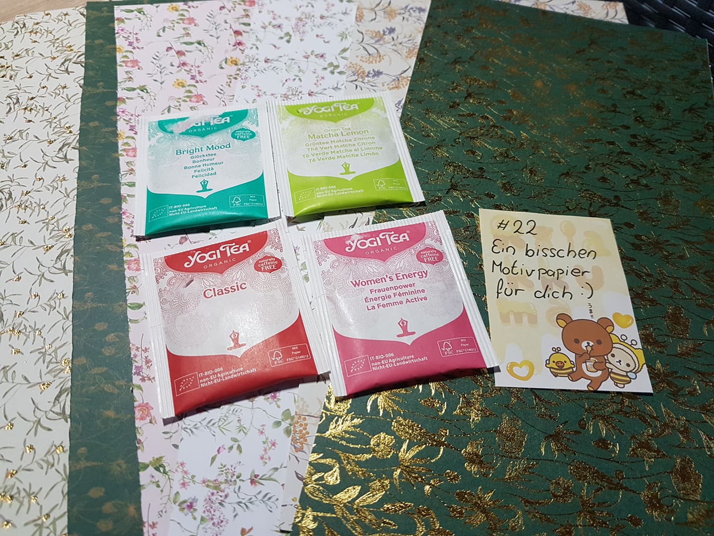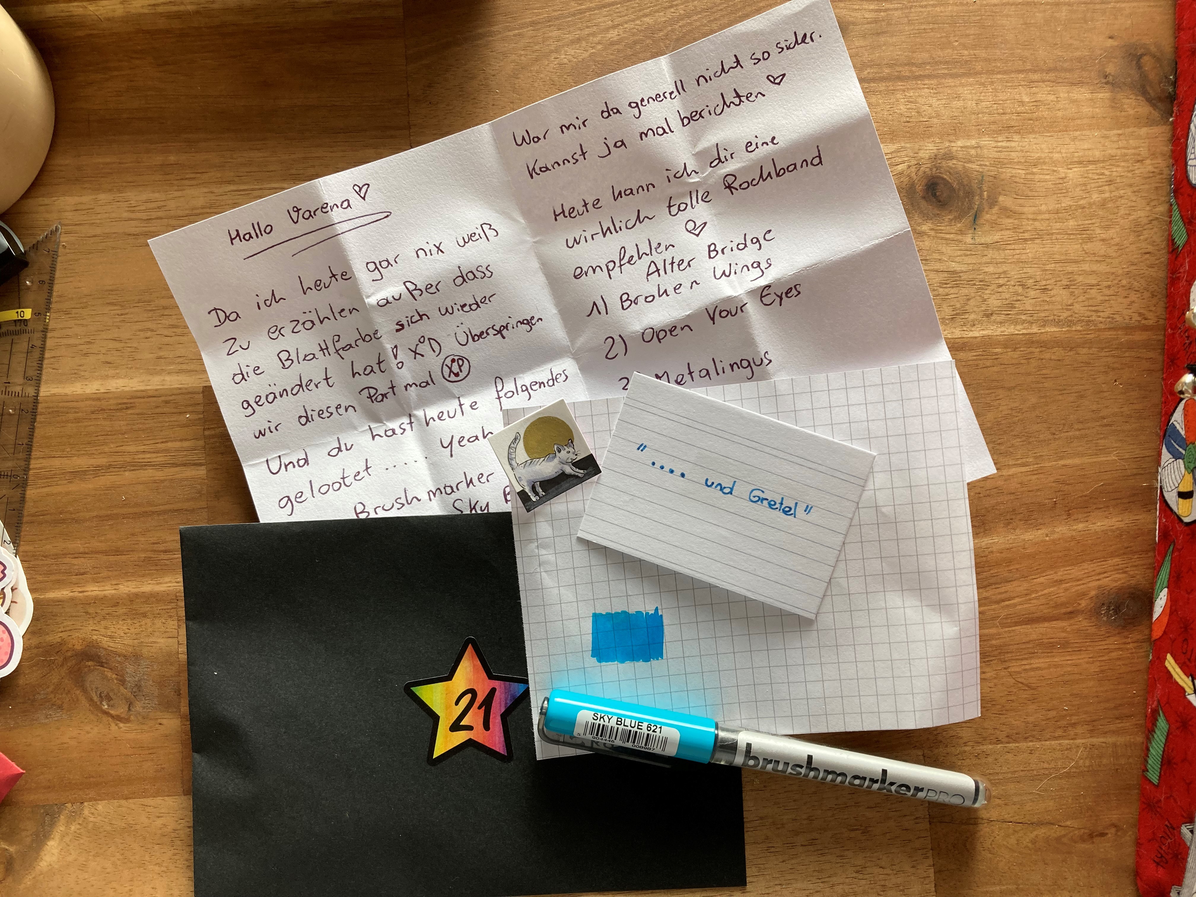 Am 21. gab es zu meiner überraschung 2 Sachen. Einmal sticker und dann einen Papierblock in perfekter Kakao-grösse. Vielen Dank.