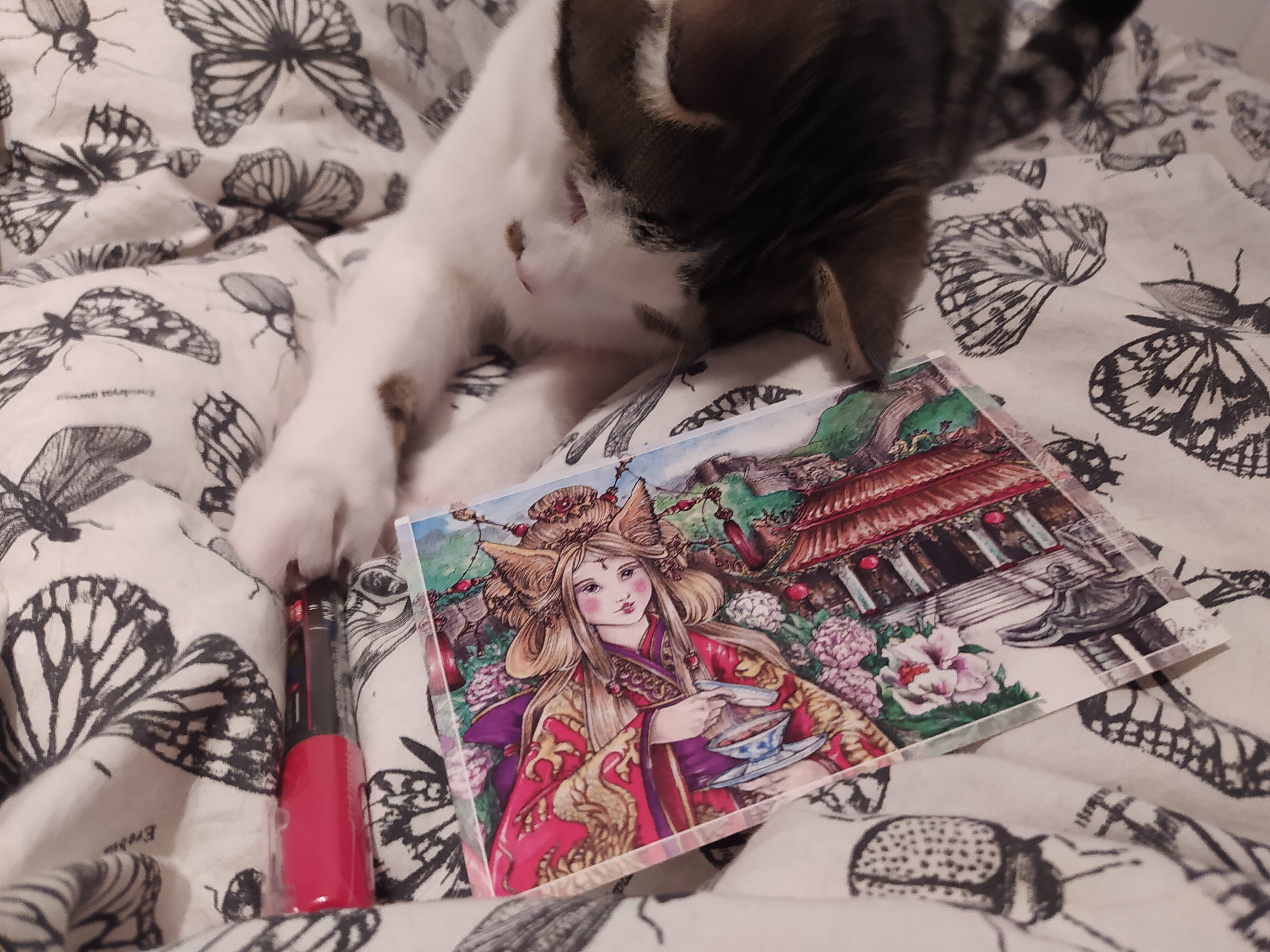 Im Päckchen war ein weiterer Brushmarker in sky blue. Ich kann mich nur immer wiederholen. Die Marker sind wahnsinnig farbintensiv! Die anderen wurden vorgestern auch schon für ein Geschenk verwendet. Leider habe ich vergessen ein Bild zu machen, bevor es auf den Weg ging q.q… zudem gab es ein Inchie mit einer Katze
