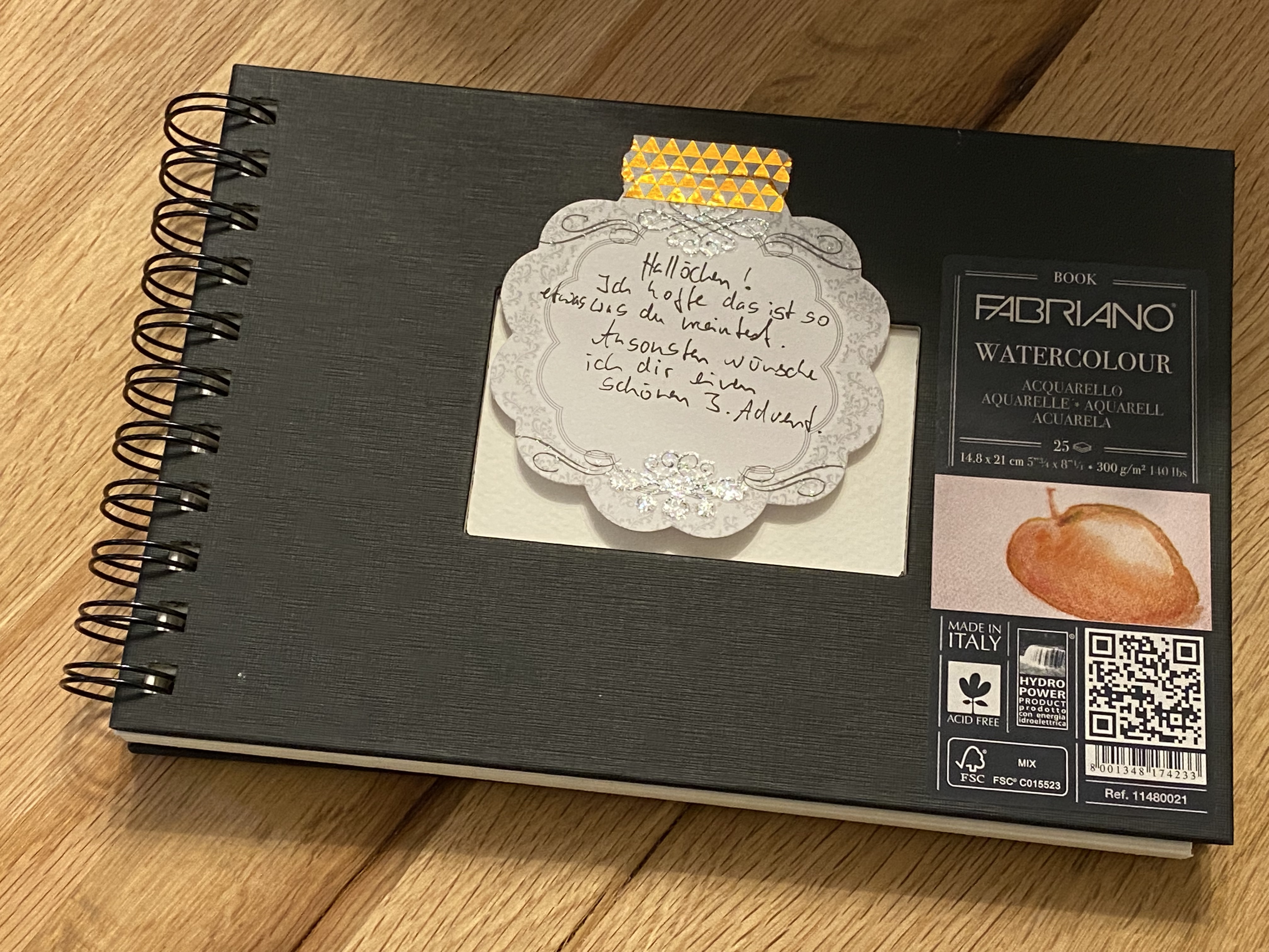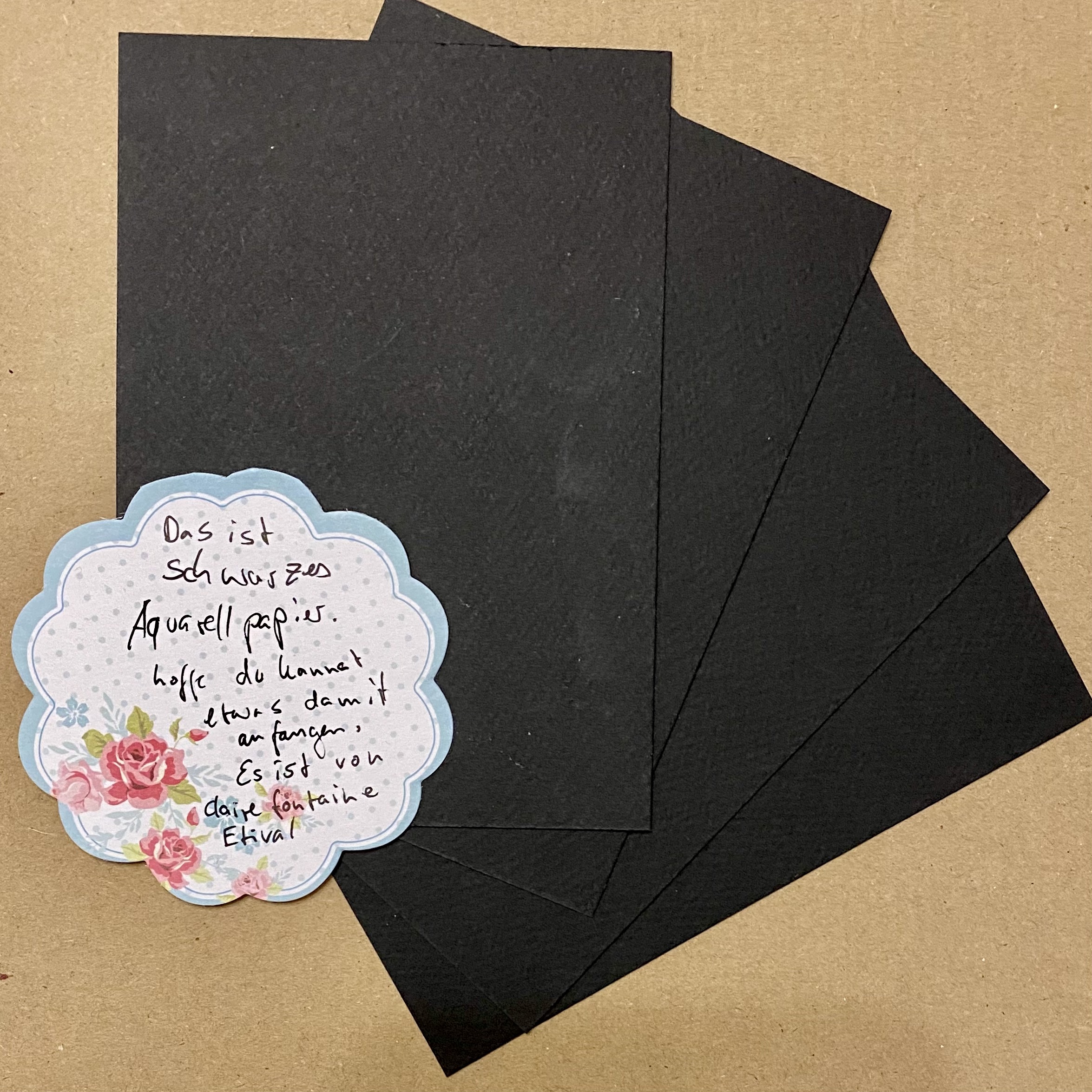 Am 11. Dezember gab es Aquarellpapier-Proben in schwarz für mich. Ich bin gespannt darauf es zu testen. Es macht schon mal einen stabilen Eindruck.