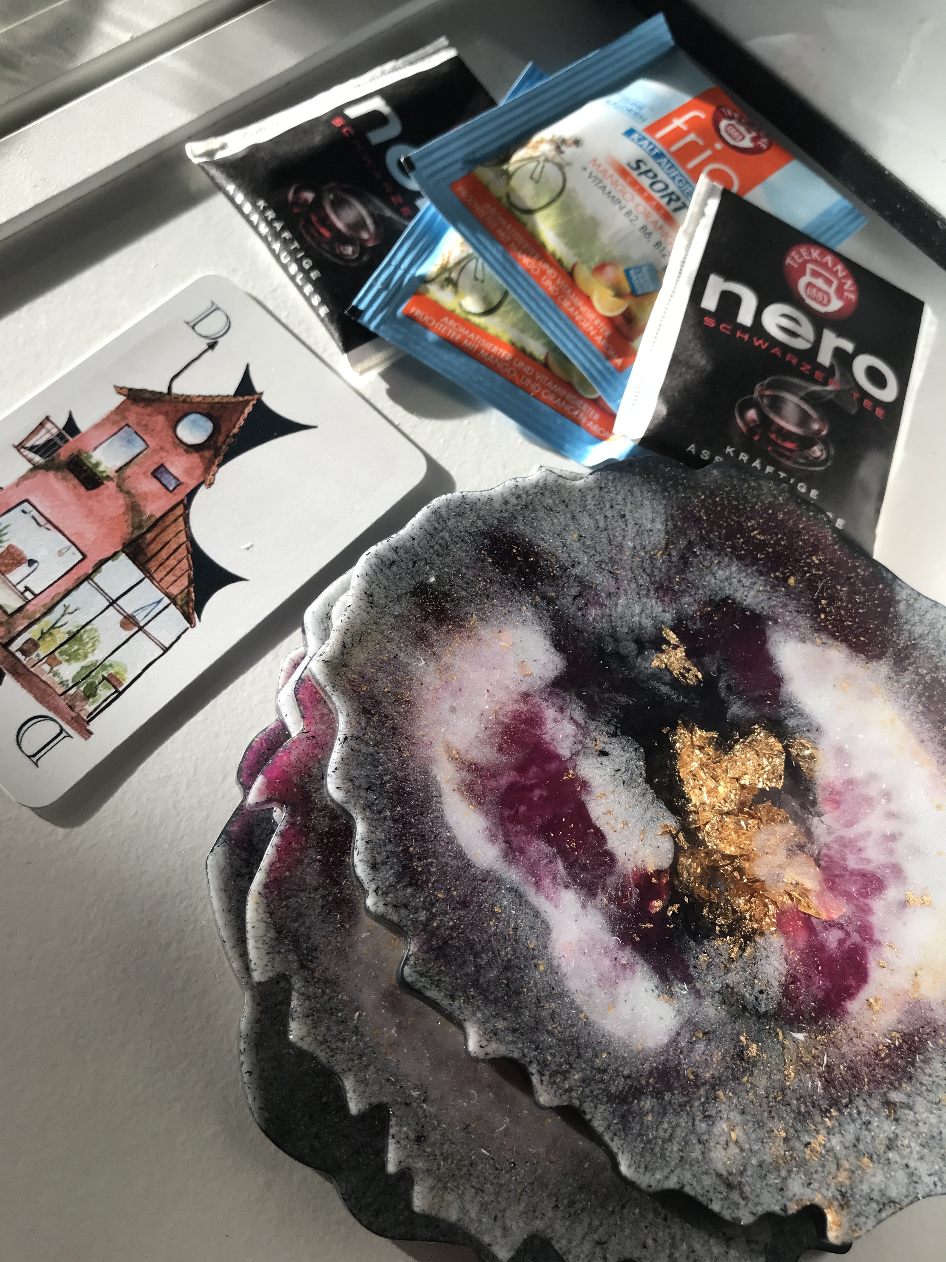 wird hochgeladen: 4009F740-39A2-4293-817F-3036B9A71DF5.jpeg…Selbstgemachte Untersetzer aus Resin in Optik von Kristallscheiben!