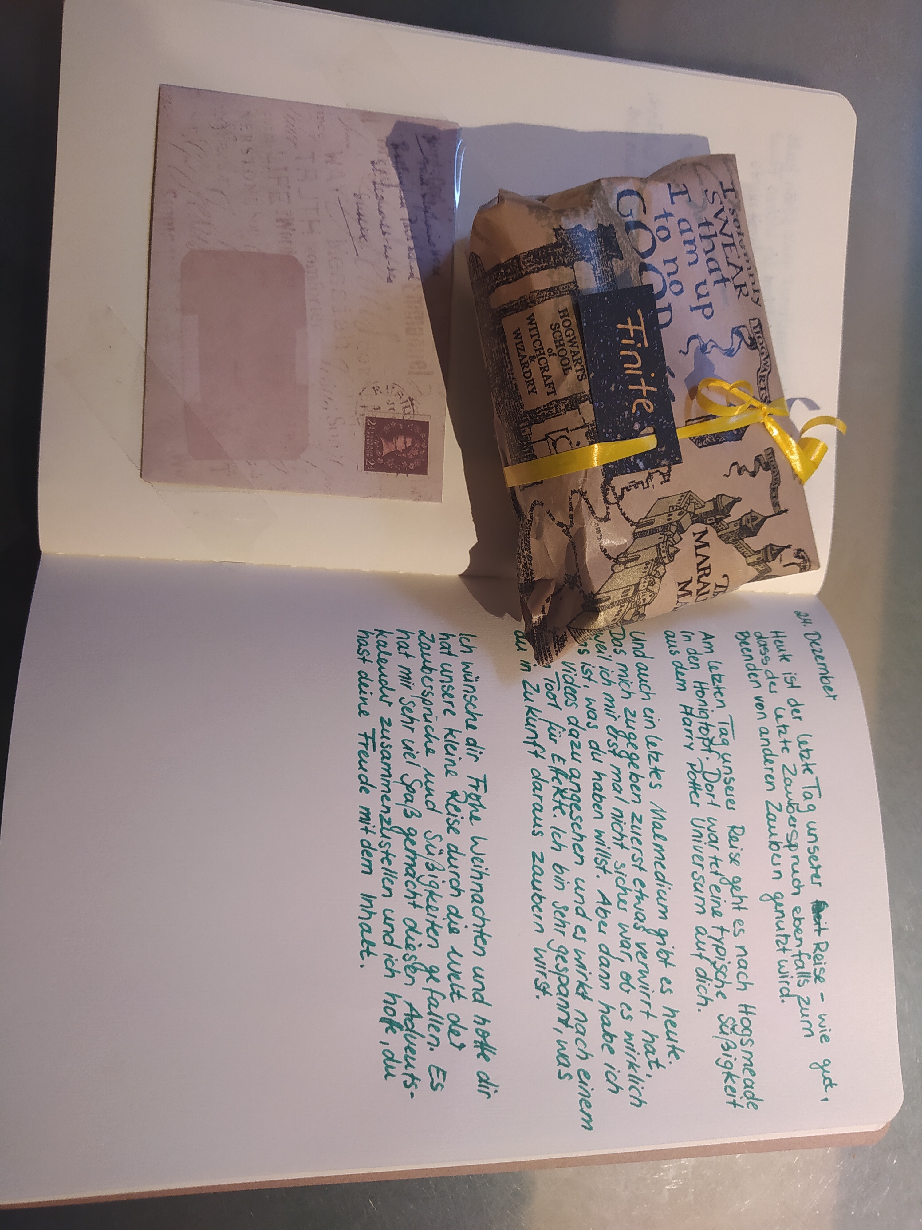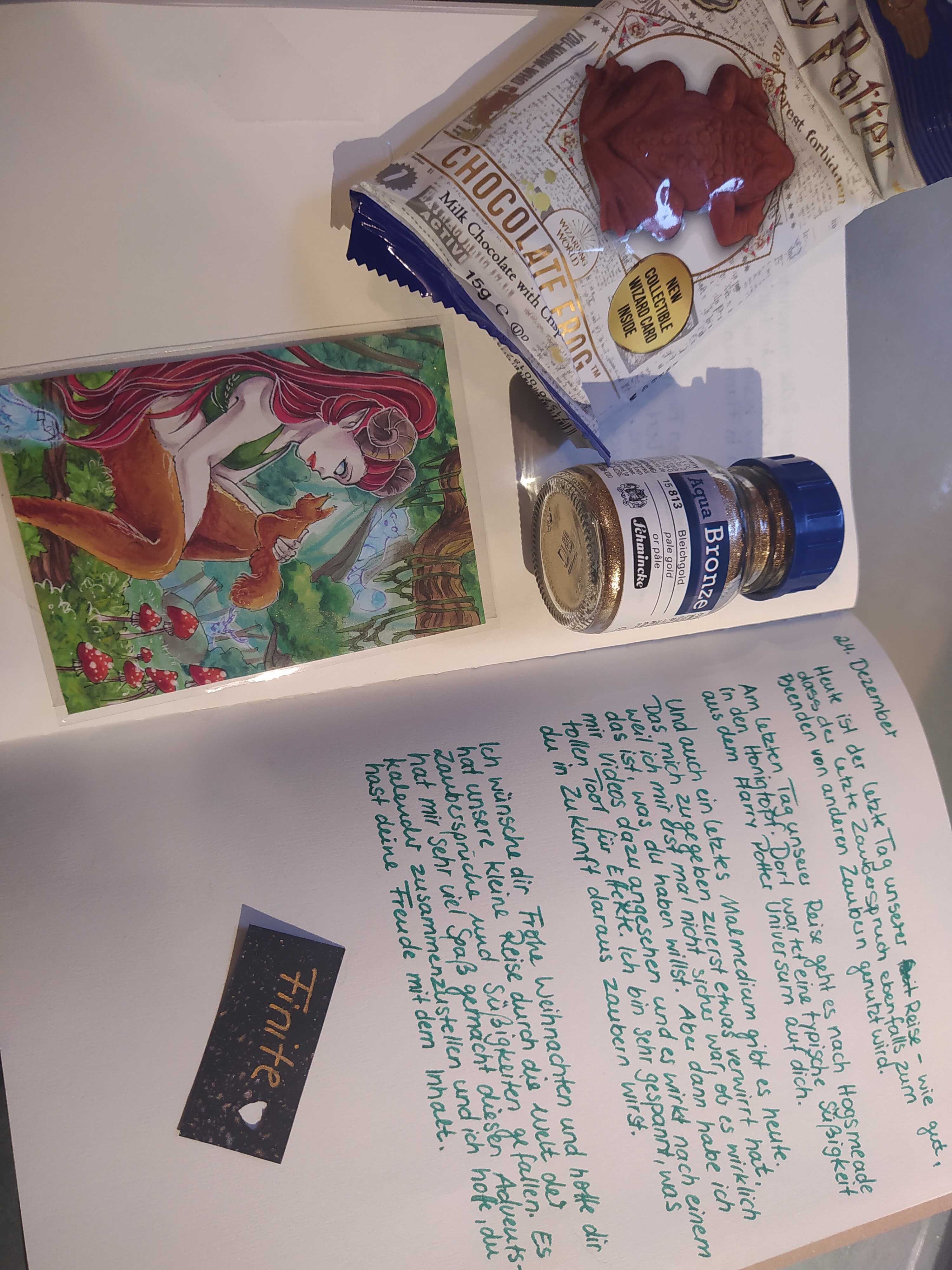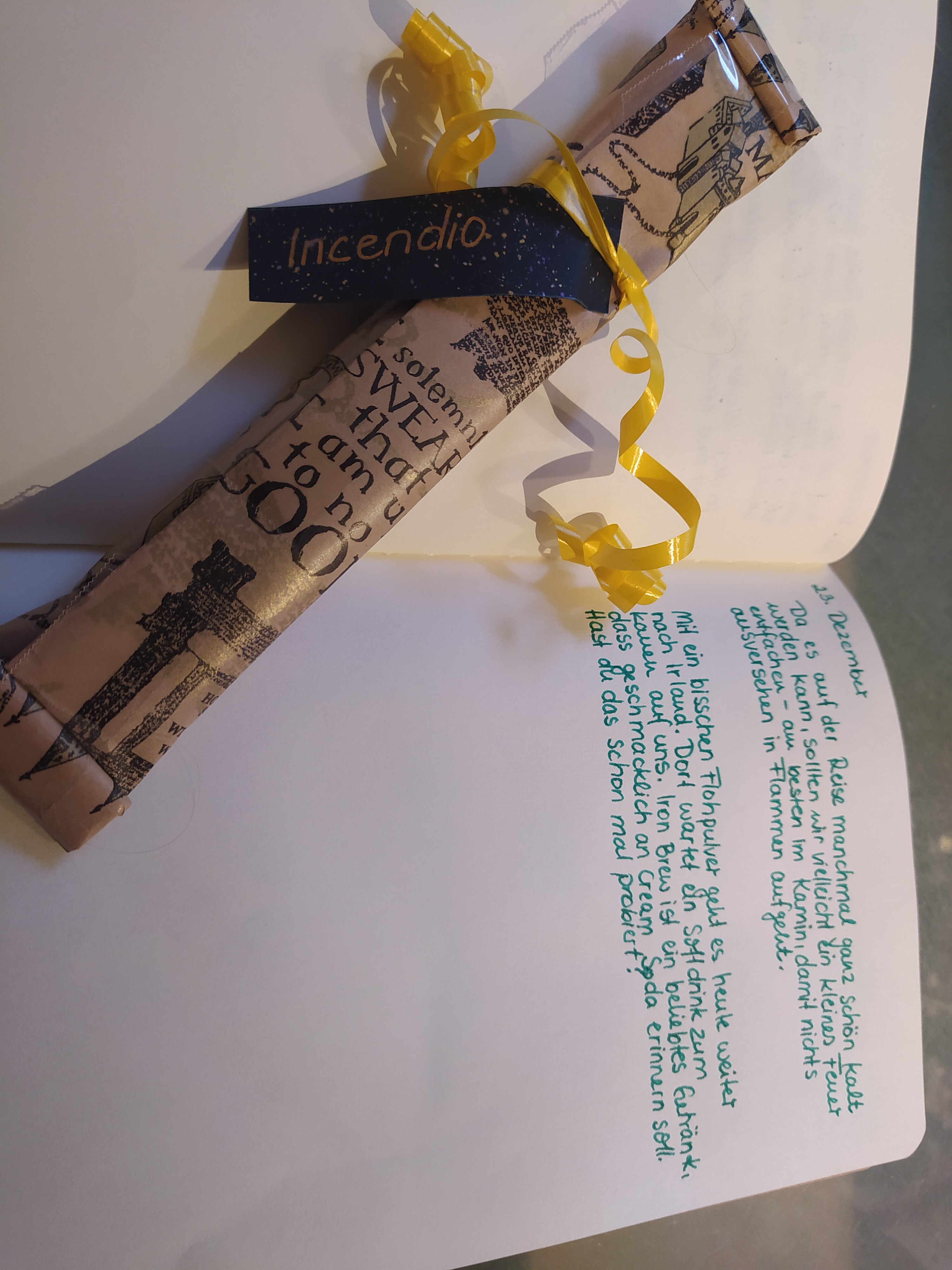 Ich habe mich jeden Tag auf das Türchen gefreut und nichts aber auch gar nichts lag daneben! Ich finde es klasse wie viel Mühe du dir mit der Verpackung und dem Rätsel und dem Tagebuch gegeben hast! Vielen vielen Dank!