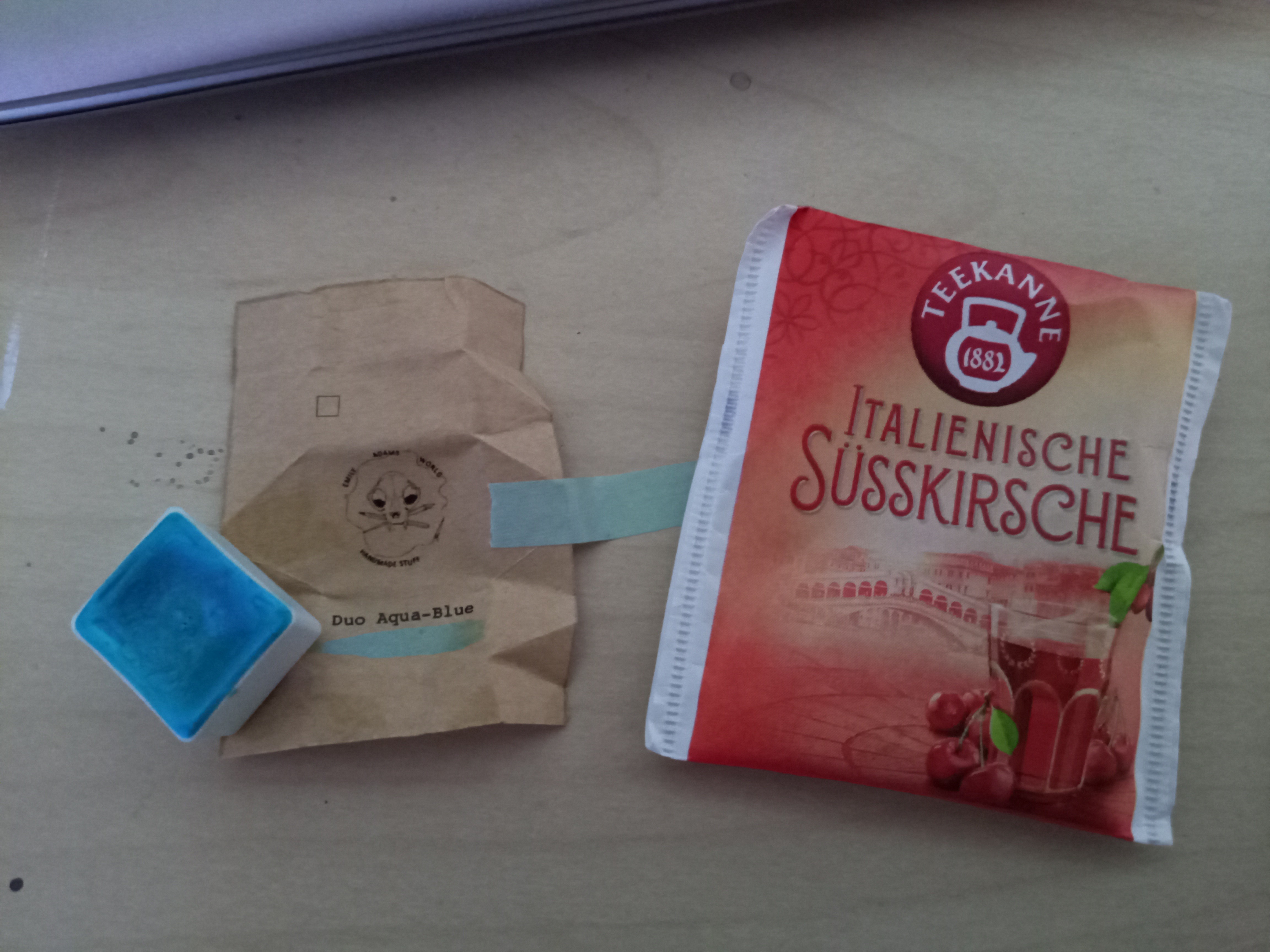 Mein leider schon vorletztes Türchen sollte dem Kalender wohl das Krönchen aufsetzen, denn ich habe nochmal eine tolle selbstgemachte Aquarellfarbe von Emily Adams bekommen. :D Dieses Mal die Farbe “Duo Aqua-Blue”, auf die ich schon sehr gespannt bin, freue mich darauf die auszuprobieren. <3