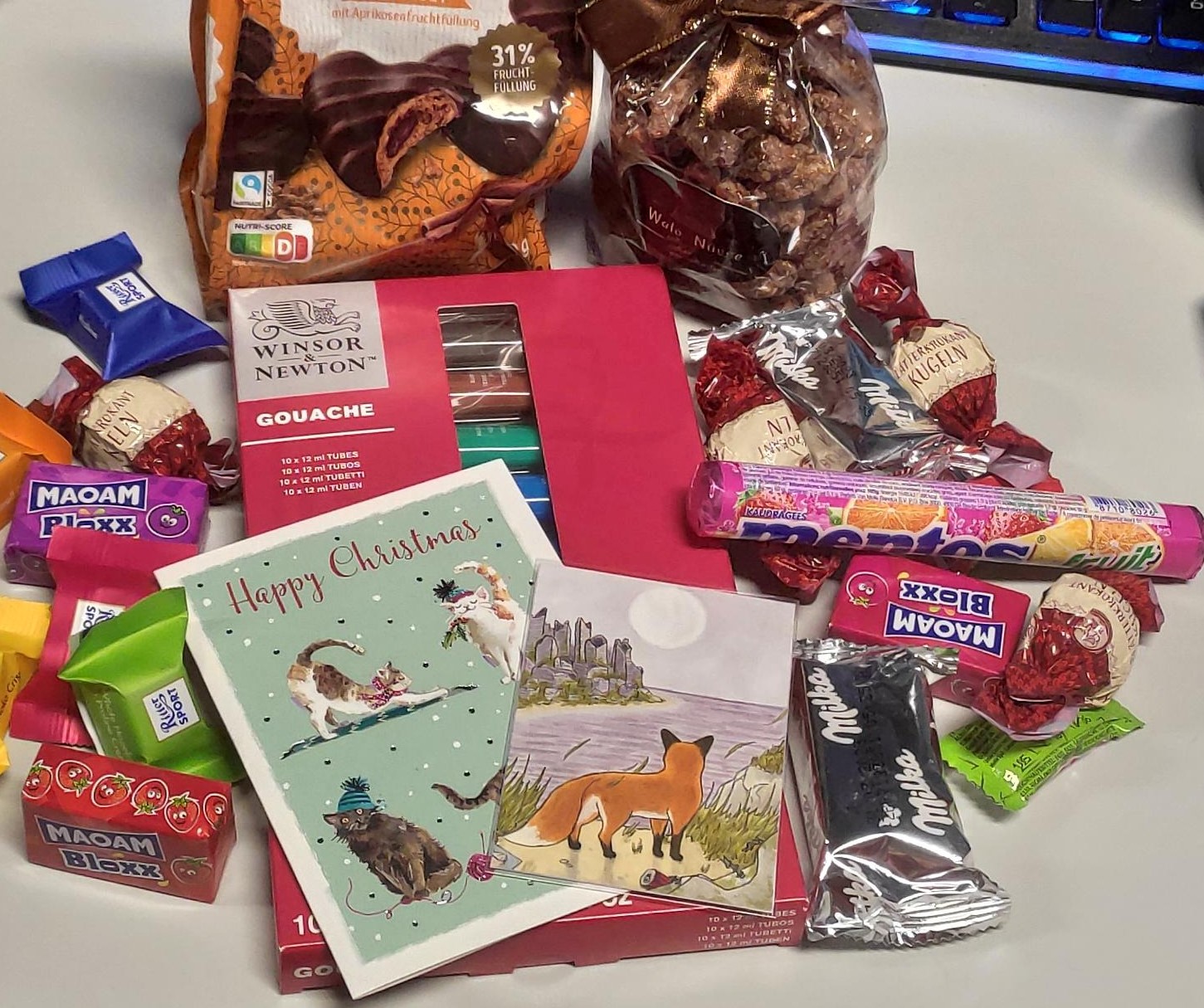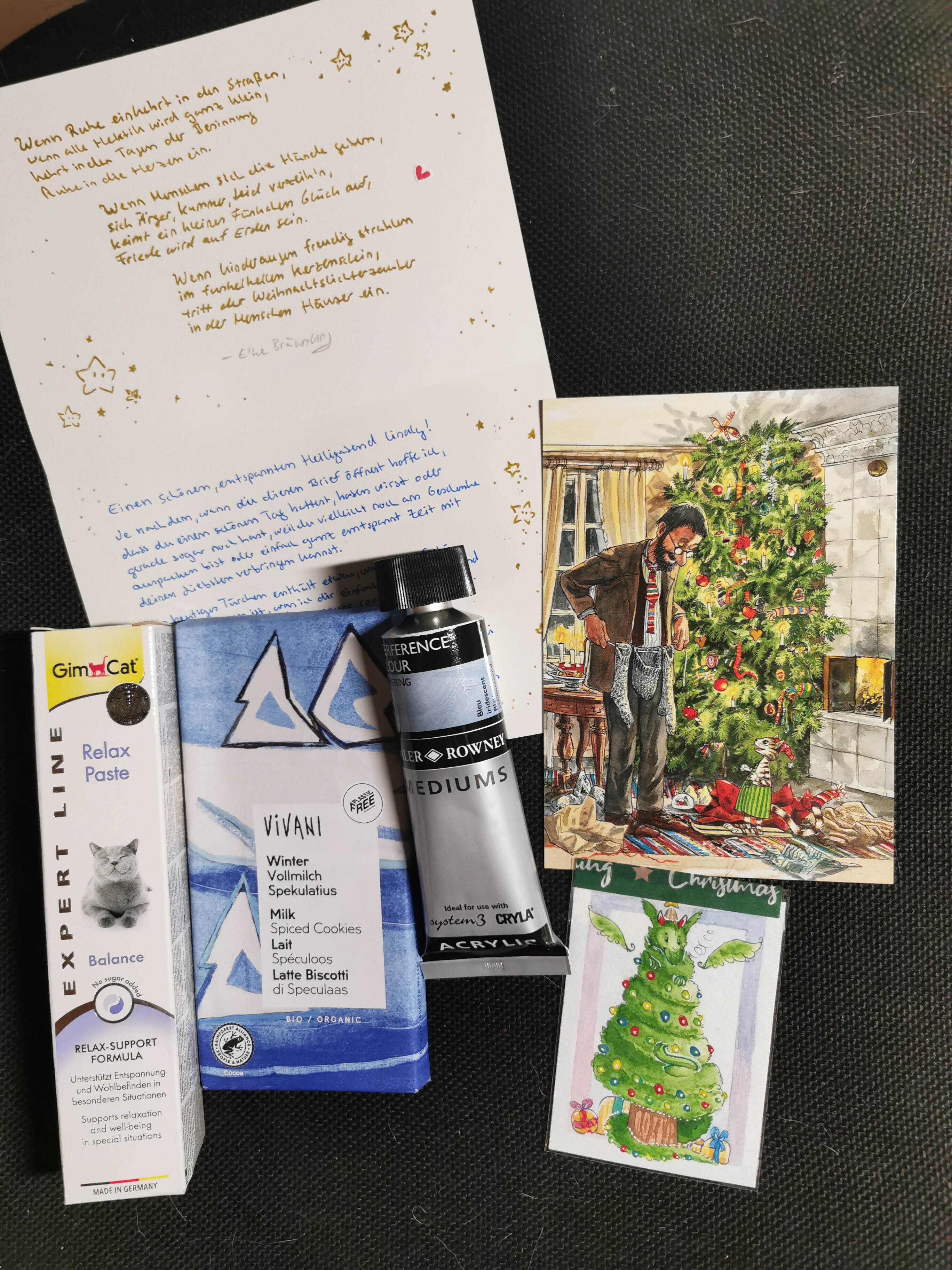 Heute hatte ich so viele leckere Sachen drin, eine super liebe Weihnachtskarte (mit Kätzchen drauf!!), in der ich auch endlich erfahren habe wer meine liebe Wichtelmama ist und es ist @Dragora