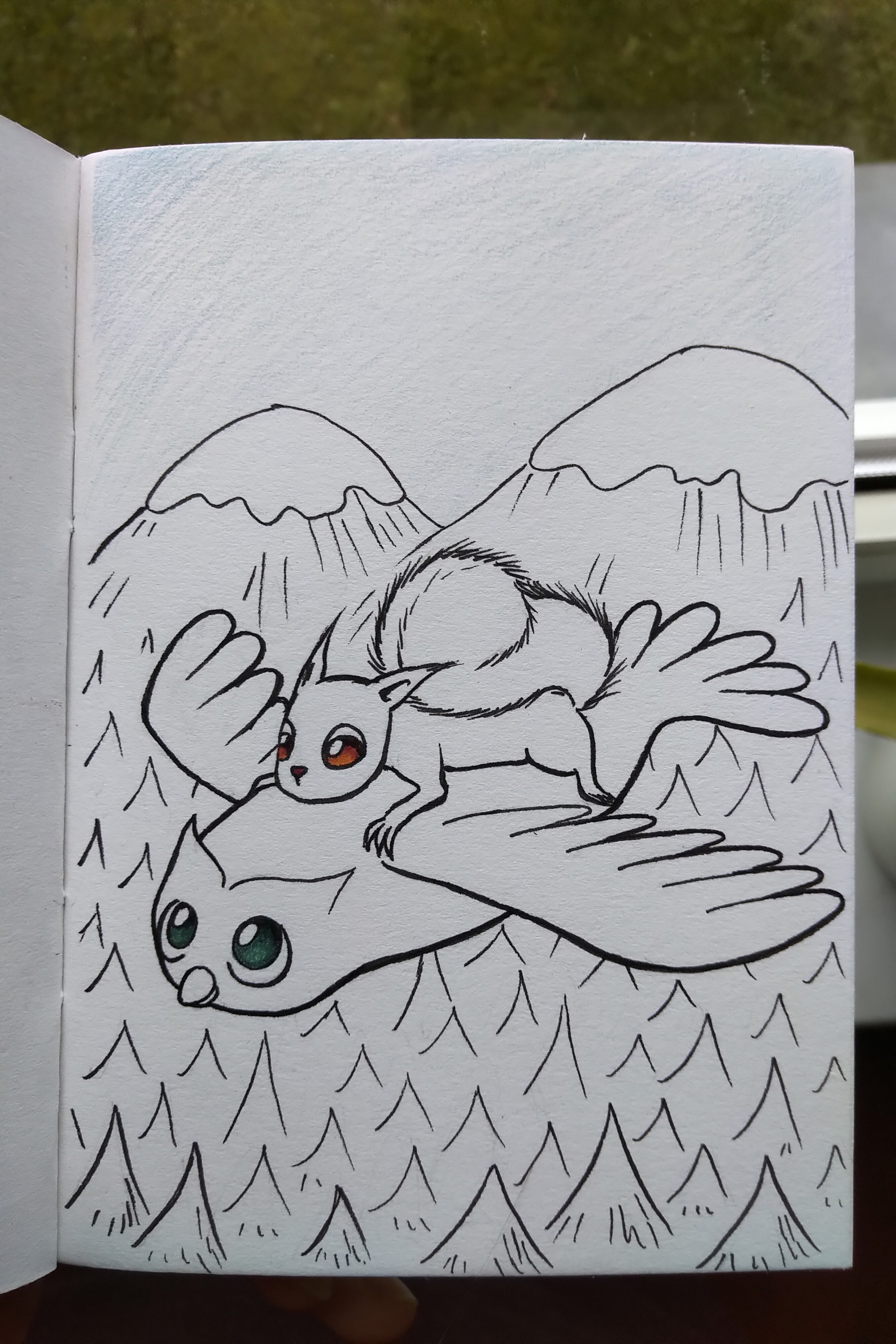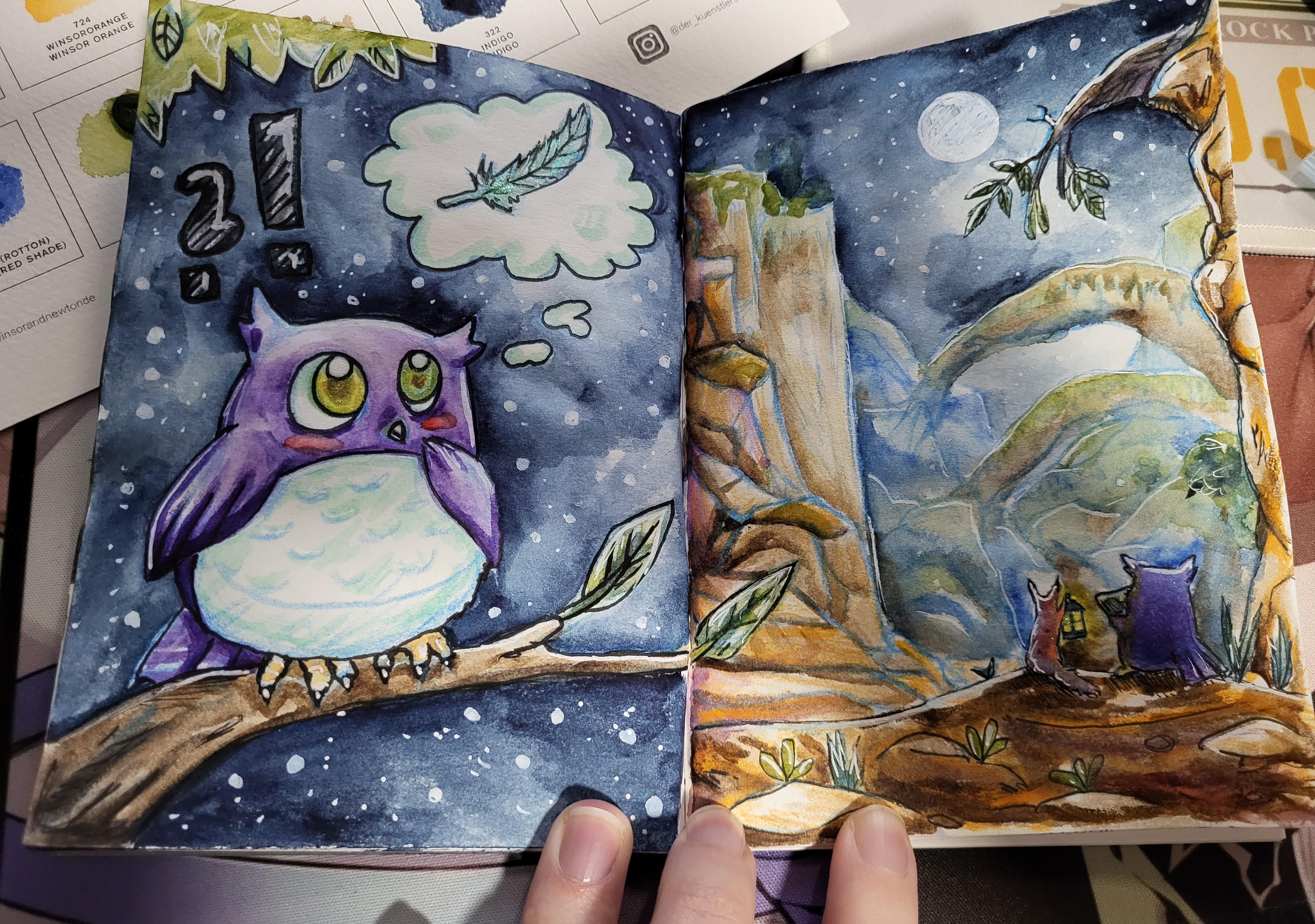 So, ich kam heute mal zum zeichnen und dachte ich zeige mal was ich bei den Prompts so gemacht habe :) Ich bin leider erstmal nur bis Tag 3 gekommen, aber ich glaube das passt ganz gut, da ich ja immer Doppelseiten machen.