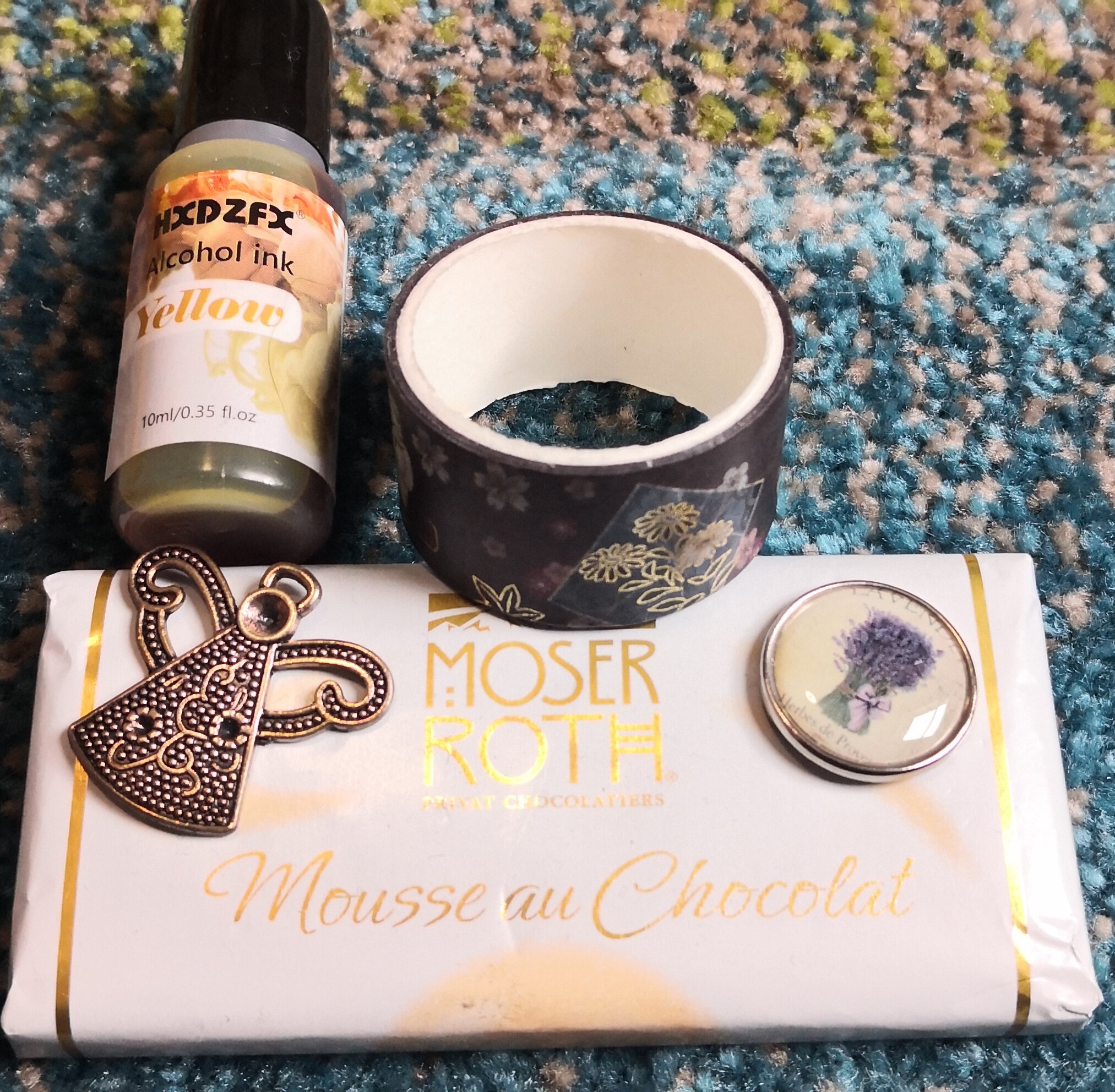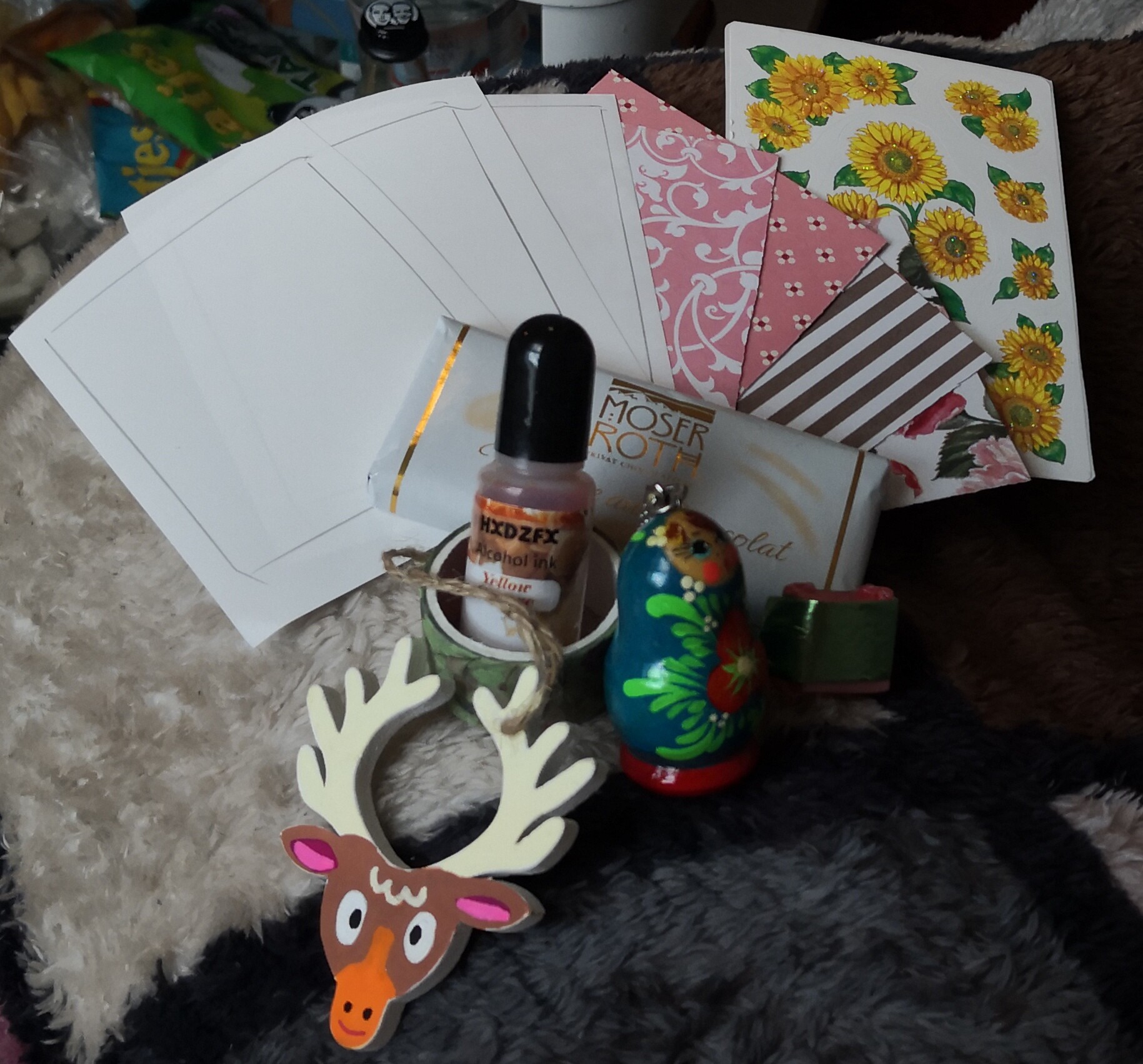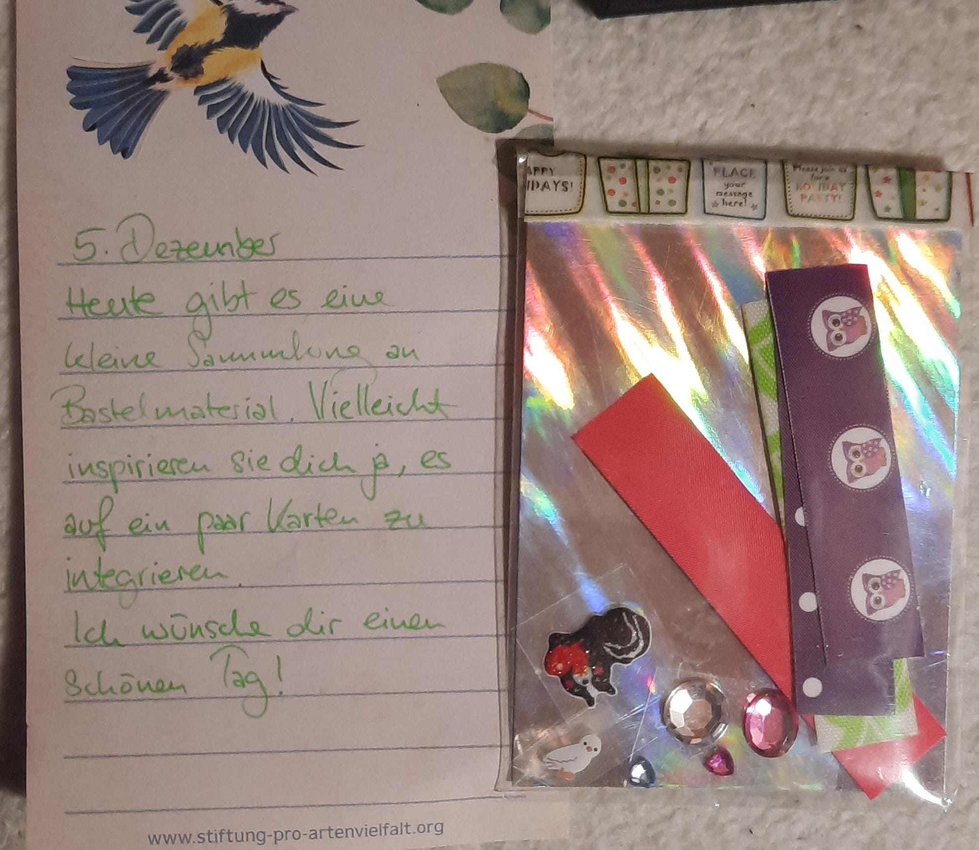 So mein nächstes Türchen hatte Deko Meterial in sich gehabt und etwas Süßes was es nicht mehr aufs Bild geschafft hat (war zu lecker